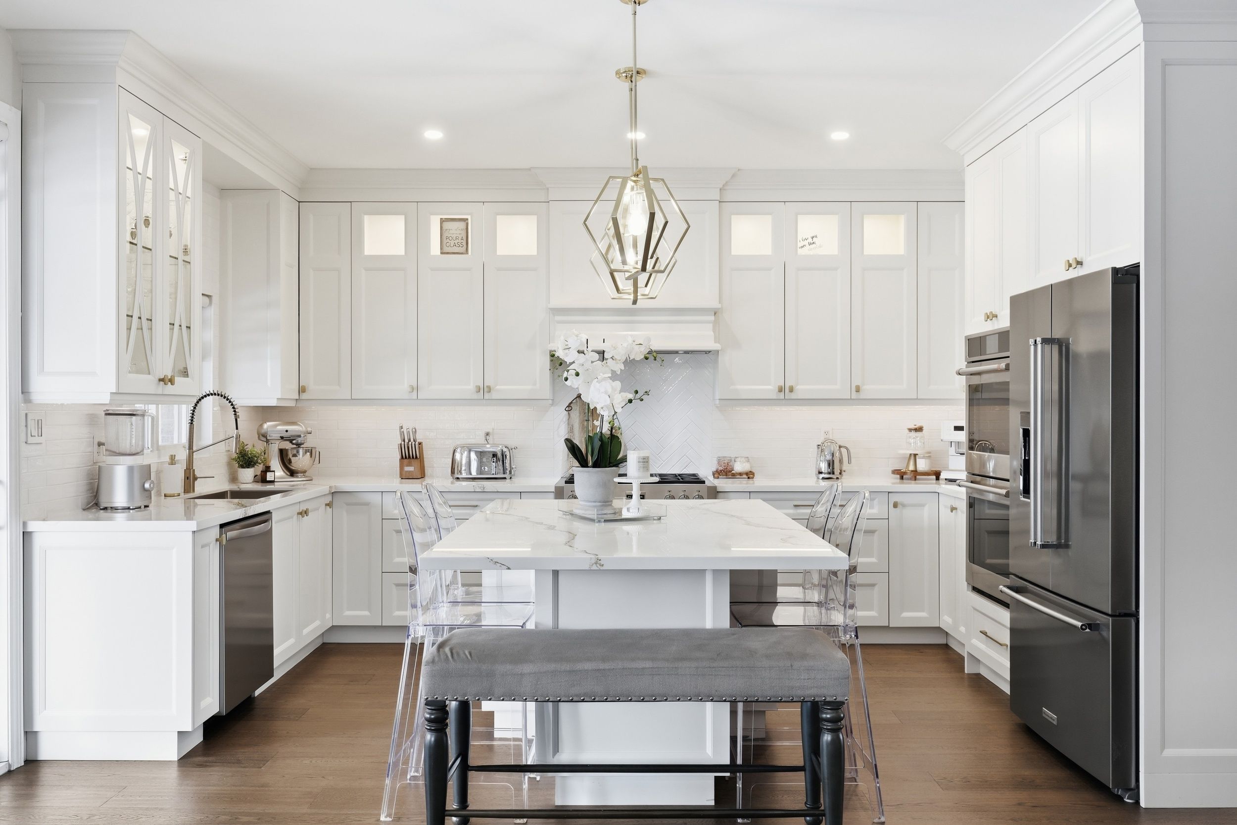 • Renovated kitchen with high-end appliances and a large island.