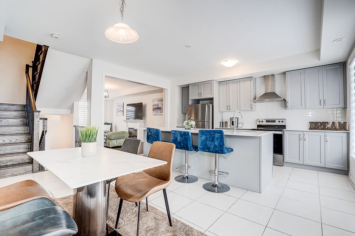Modern 3-storey freehold townhome at 19 morrison ave, only 2 years new! Features 3 beds, 3 baths, and a bright open-concept layout with a stylish kitchen boasting quartz counters, stainless steel appliances, and ample storage. The primary suite includes a 3pc ensuite, plus two versatile bedrooms for family or office use. Enjoy a large fenced backyard and a private driveway for 2 cars. Prime location near schools, parks, shopping, dining, and hwy 412. No maintenance fees!