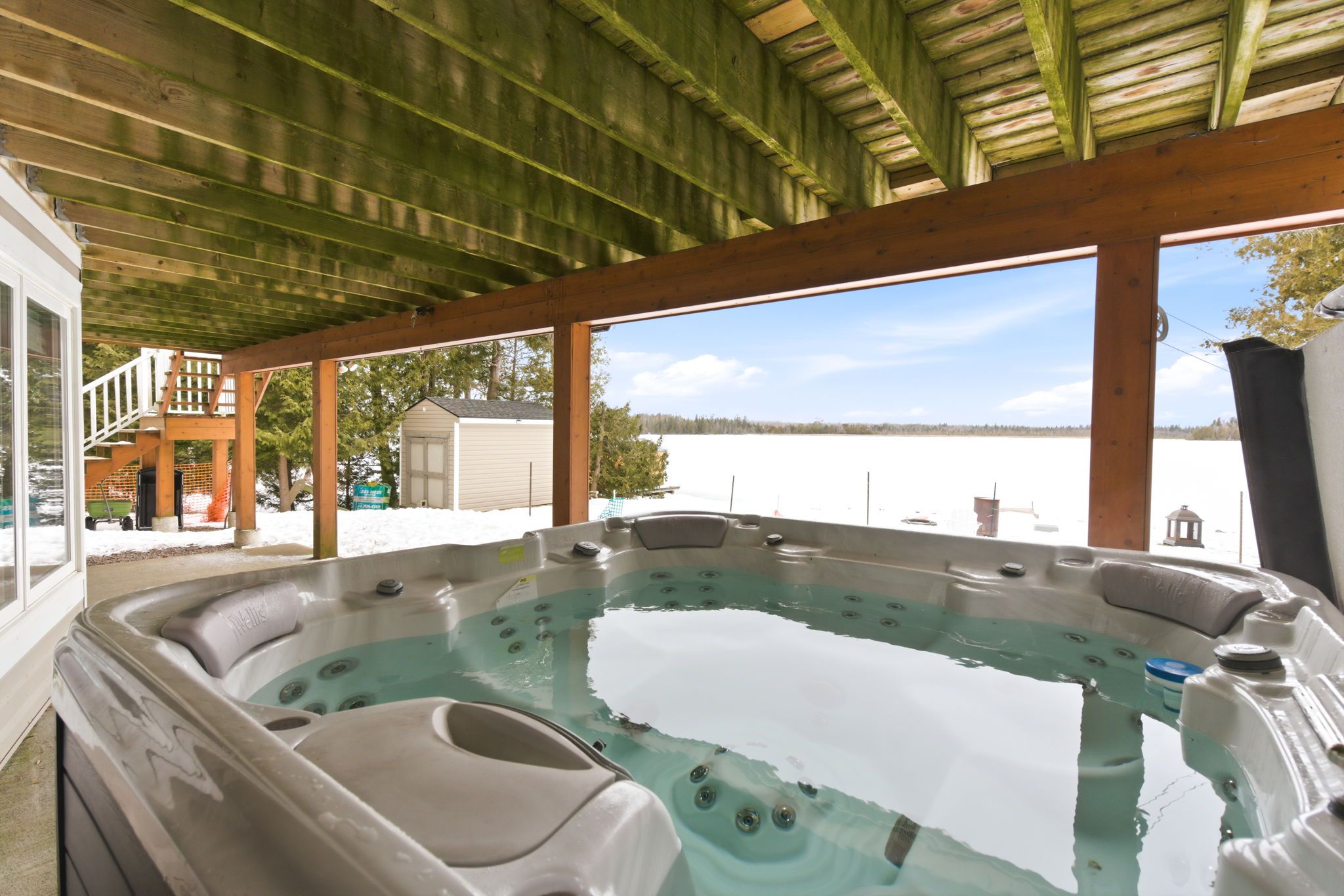 Welcome to 19 north taylor road, a custom-built waterfront retreat on mitchell lake! Just a short boat ride away, you'll find balsam lake via the trent-severn waterway. This stunning property offers 106 feet of shoreline, perfect for boating, fishing, and enjoying breathtaking sunsets. Inside, the open-concept layout features a gourmet kitchen with granite countertops, a center island, and stainless steel appliances. The living and dining areas flow seamlessly to a raised deck overlooking the lake-ideal for entertaining. The home boasts 3 spacious bedrooms and 3 bathrooms, including a primary suite with a custom shower. The fully finished lower level provides a large recreation room, walkout to the yard, workshop/craft space, and a convenient 2-piece bath. Outside, enjoy a covered front porch, detached double-car garage, an additional two-car parking pad, and beautifully landscaped grounds. Recent upgrades include a brand-new hot tub purchased in october 2024 and shoreline improvements with professionally placed stonework along the waterfront. Located just minutes from beaverton and lindsay, with easy access to atv and snowmobile trails, this property blends year-round comfort with cottage-style living.