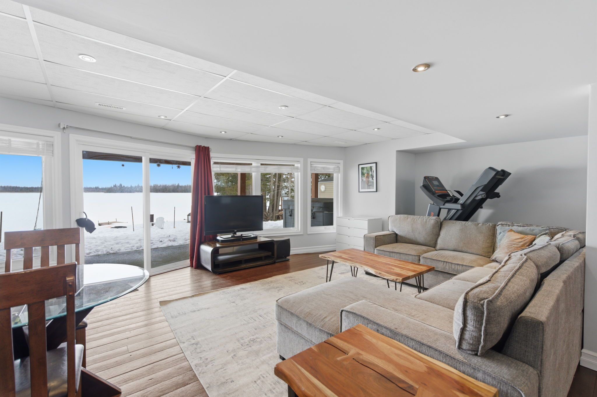 • Spacious living and dining areas lead to a raised deck with lake views.