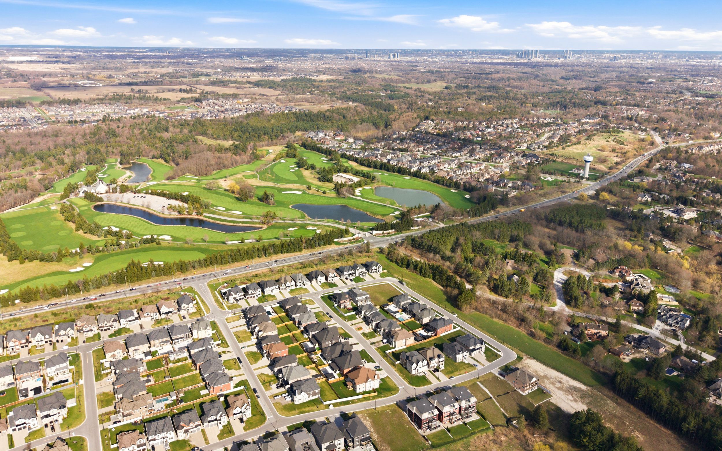 Welcome to 19 painted pony trail, an exceptional executive residence in the prestigious copperwood estates of kleinburg, ideally positioned directly across from the renowned copper creek golf club and just minutes to the charm of kleinburg village. This stunning home offers a refined living experience with 10-ft ceilings on the main floor and 9-ft ceilings on the second level and basement, creating a bright and airy atmosphere throughout. The gourmet kitchen is designed to impress, featuring premium cabinetry, a statement island, and a walk-in pantry, all set within a beautiful open-concept floor plan that flows effortlessly from space to space with no wasted areas, ideal for both everyday living and entertaining. A dedicated main floor office provides the perfect space for work or study, while the upper level boasts spacious bedrooms, all with walk-in closets, including a luxurious primary retreat with a spa-inspired ensuite. The exterior presents outstanding curb appeal with a sophisticated blend of stucco and stone, upgraded black windows, and a beautifully landscaped lot lined with mature cedar trees for added privacy. Enjoy outdoor living on the composite deck with glass railings, while the extra-long interlocked driveway and heated 3-car garage (2-car tandem) offers high ceilings ideal for car lifts and added functionality, along with direct access to the backyard. Located in one of kleinburg's most sought-after enclaves, this home delivers an elevated standard of luxury, comfort, and convenience.