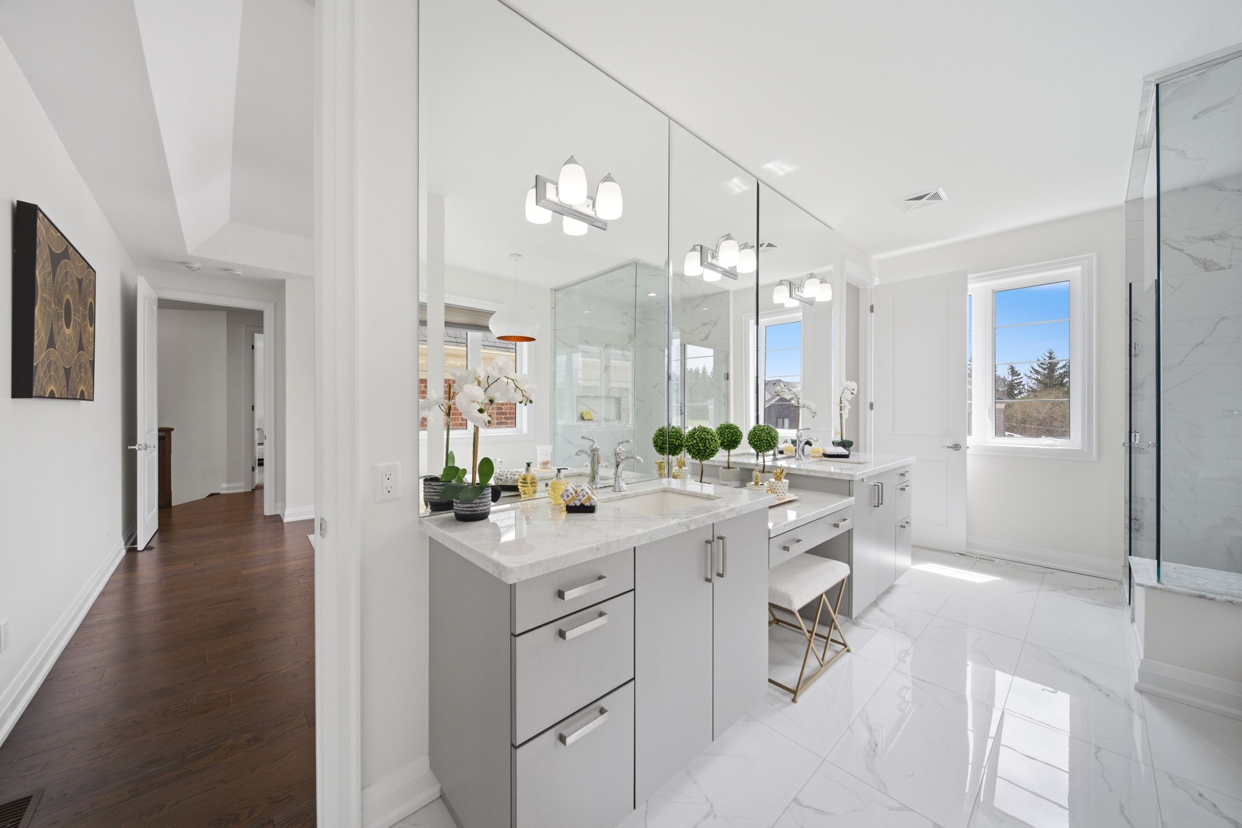 • Luxurious primary retreat features spa-inspired ensuite and spacious walk-in closets.