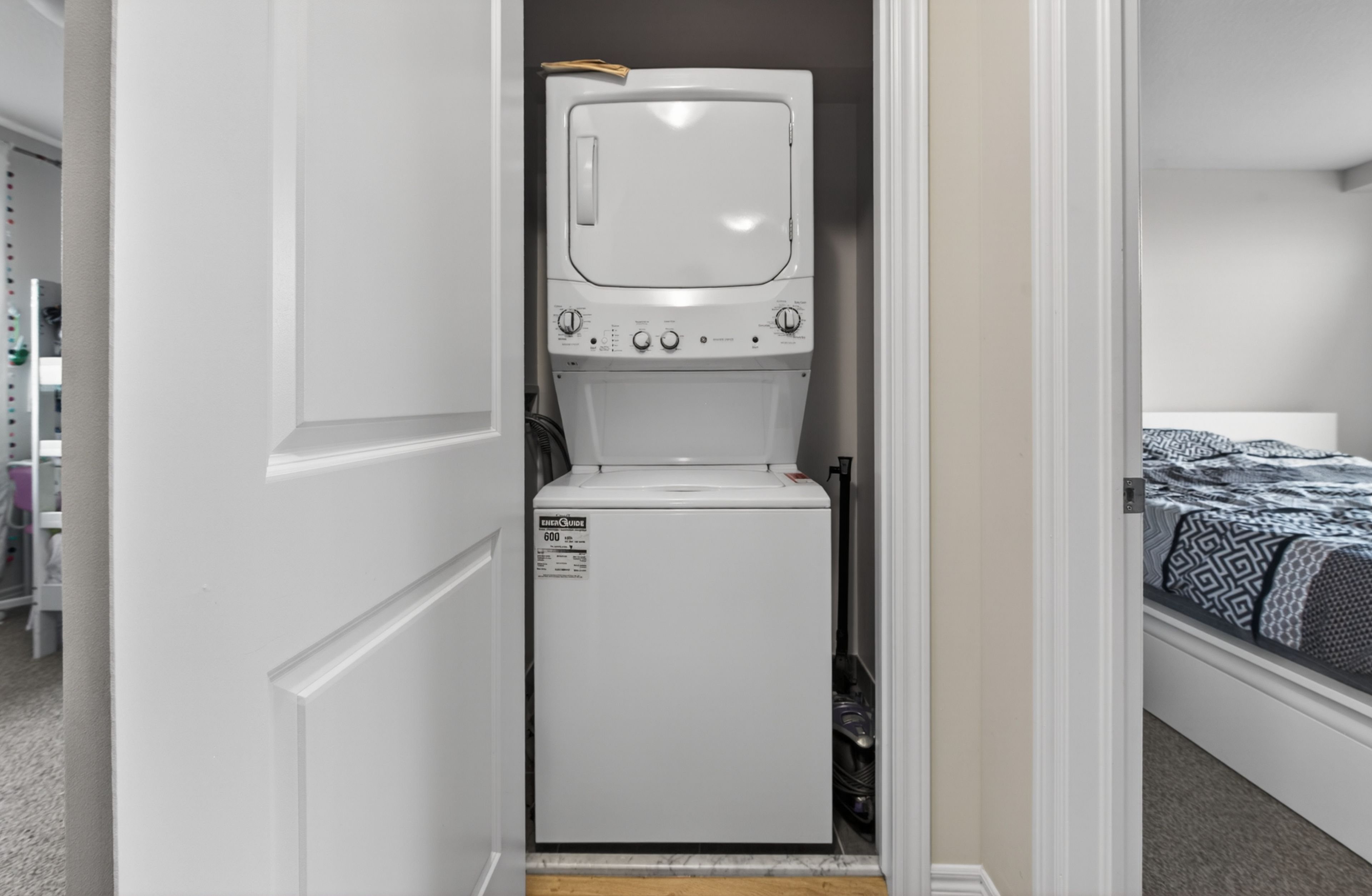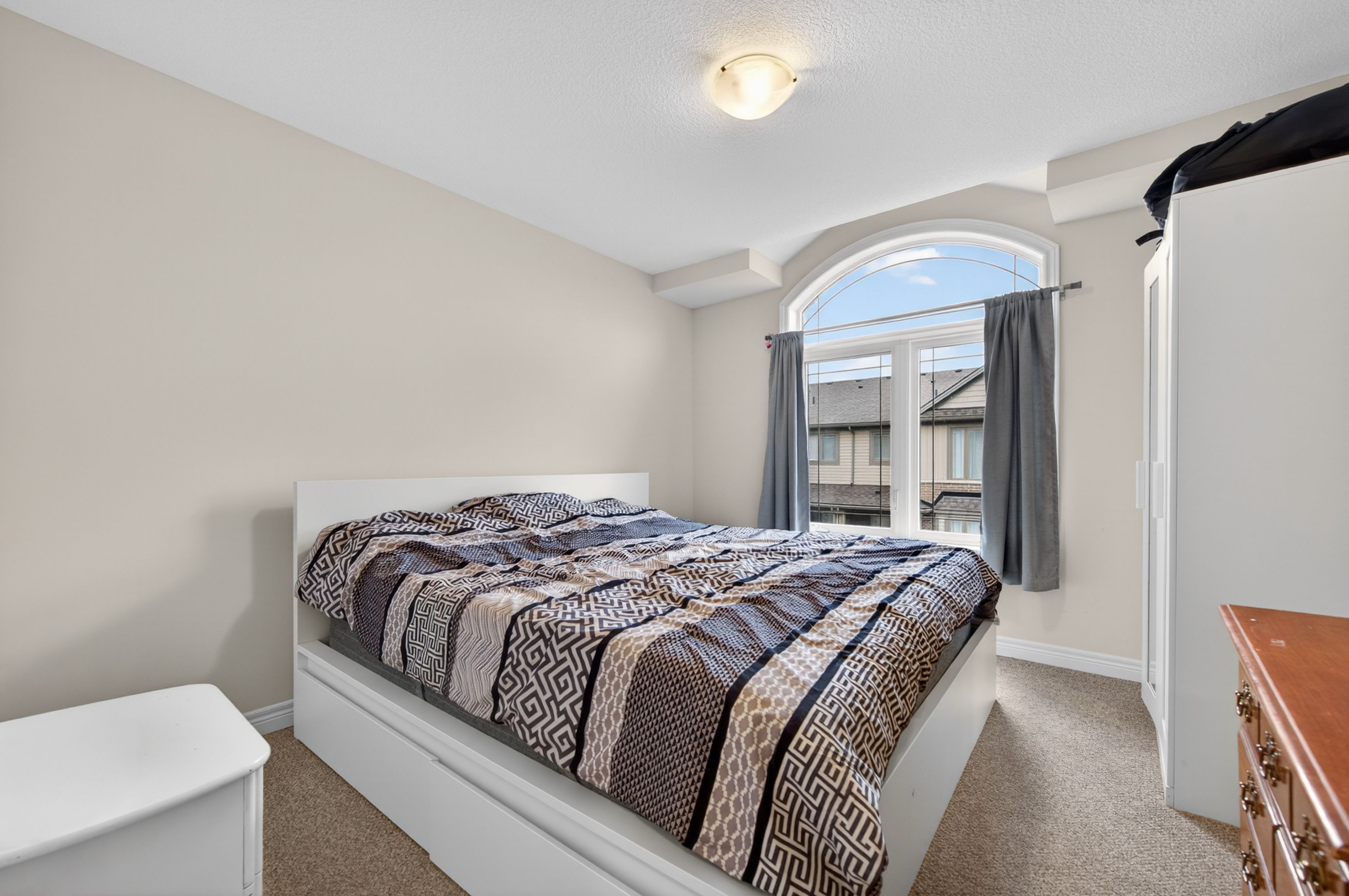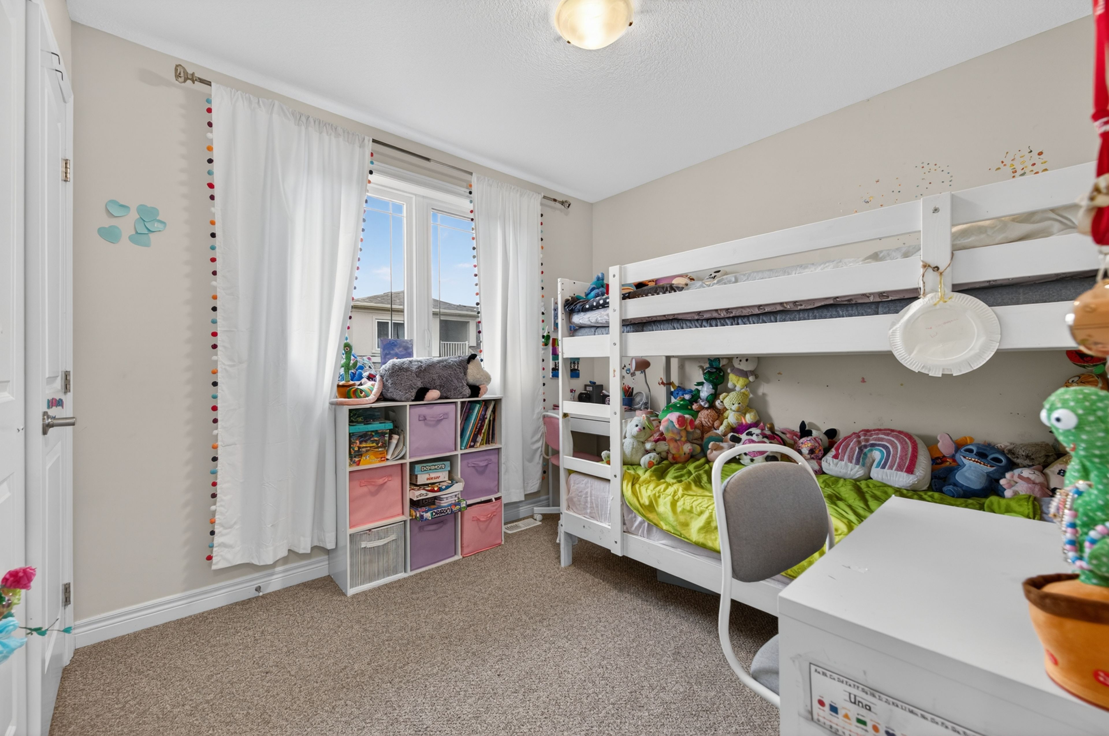 • Upstairs primary bedroom features a walk-in closet and ensuite bathroom.