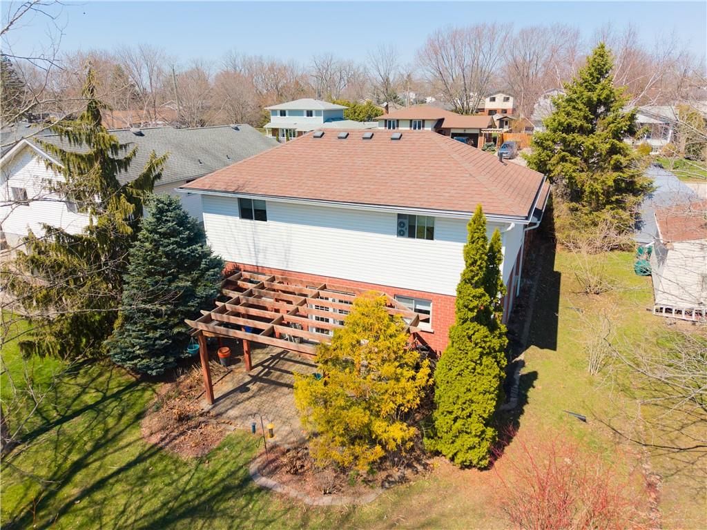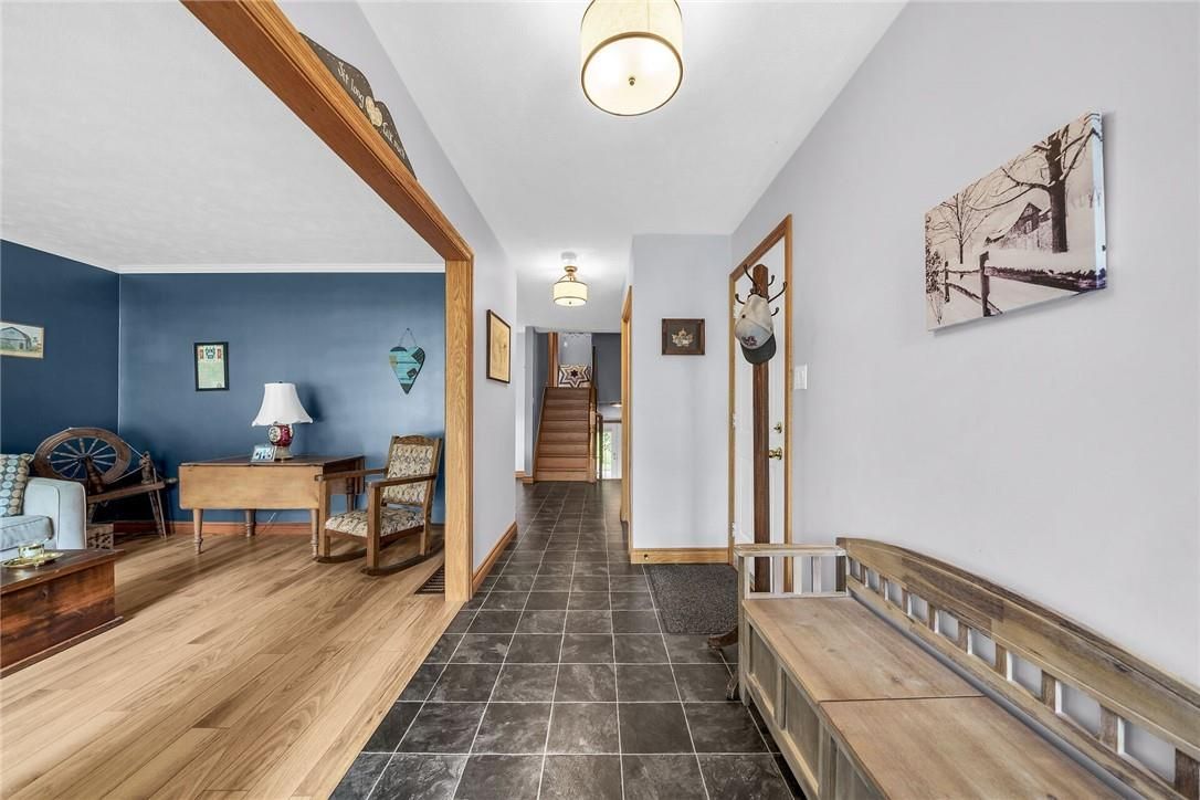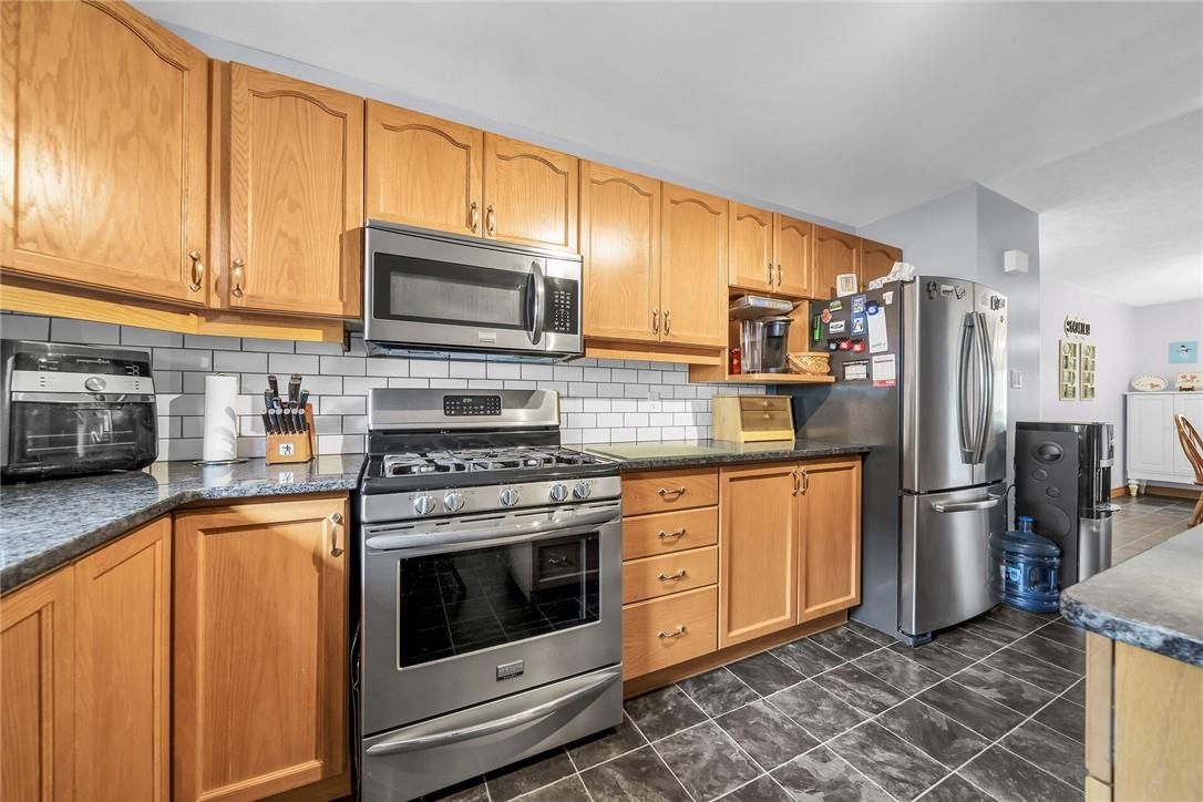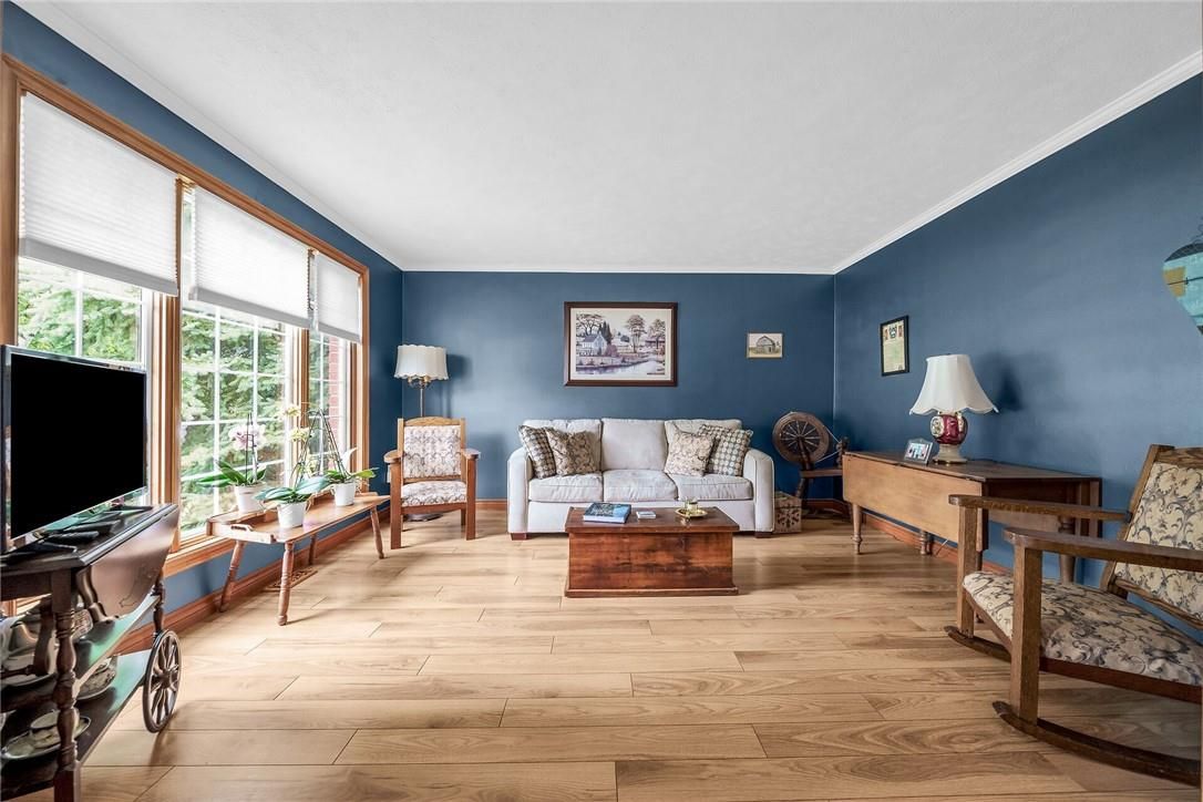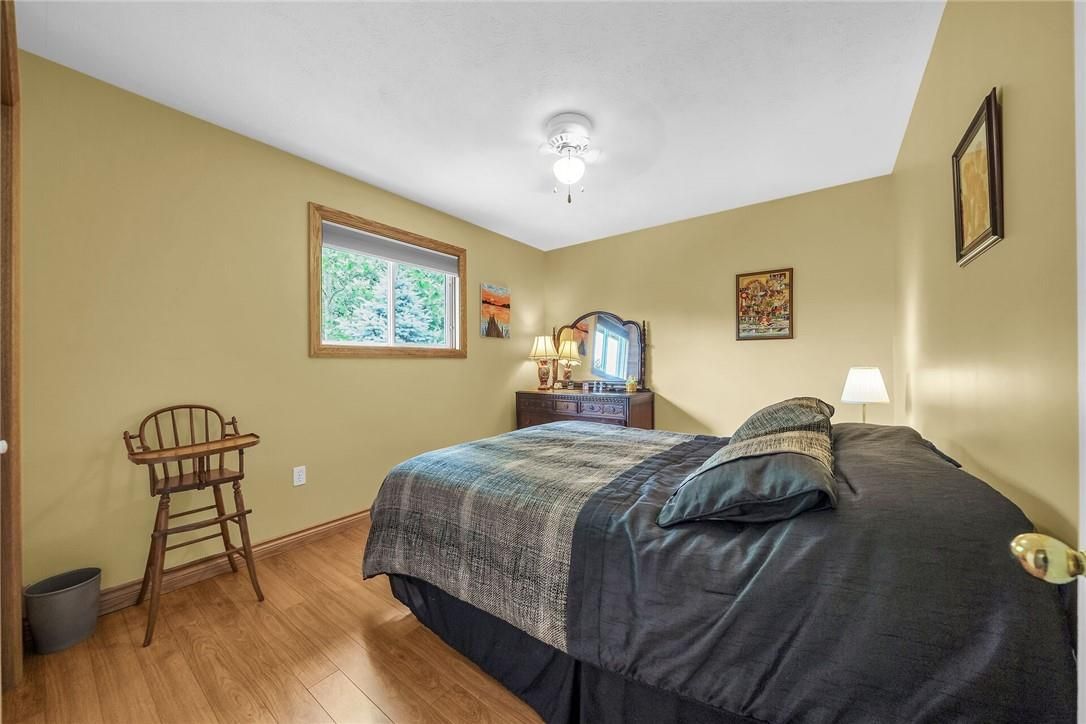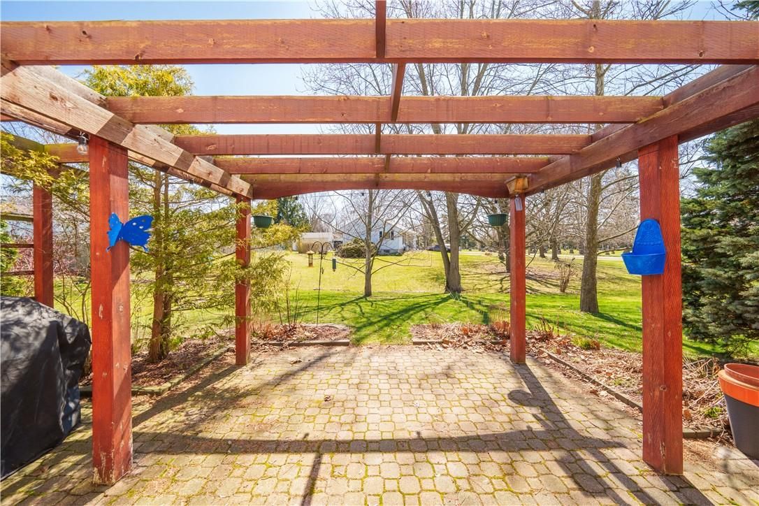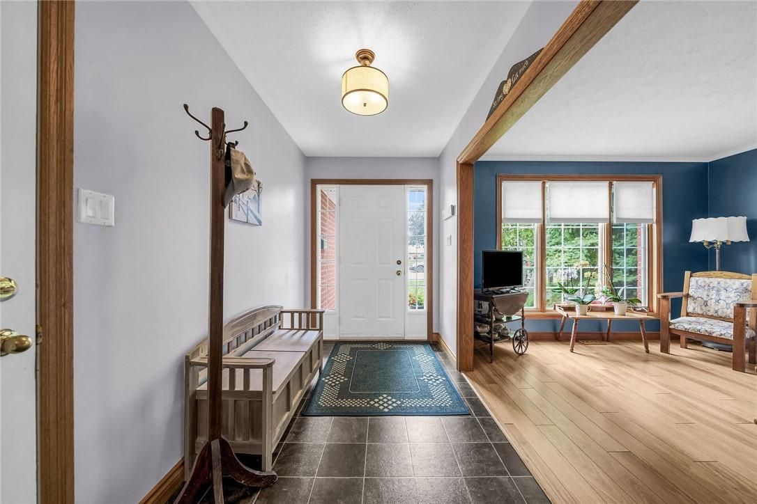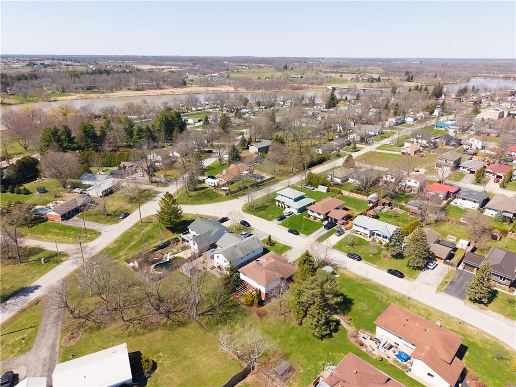 Experience small town ontario living in this well maintained, tastefully presented, carpet free 4 level back-split fronting on quiet mature, tree-lined street - located in popular neighborhood in cayuga's preferred south quadrant. Walking distance to schools, churches, newer arena/walking track complex, ball park, downtown shops/eateries, boat launch & beautiful parks dotting the grand river shoreline - 30 mins commute to hamilton, brantford & 403. Positioned proudly on 0. 18ac (59x132) landscaped treed lot is 1994 quality built brick/sided home incs 3 finished levels + unspoiled lowest floor. Welcoming x-wide foyer foyer introduces over 2,000sf of beautifully presented living area ftrs bright living room enjoying street facing picture window, updated oak kitchen sporting convenient island, granite countertops, tile backsplash, newer ss appliances & adjacent dining area. Oak stairs ascend to 3 bedroom upper level ftrs chicly designed 5pc bath-2021 boasting quartz top double sink vanity. Relax or entertain in inviting confines of mid-level family room enhanced w/ambience of n/g fireplace incs garden door walk-out to 12x12 paver stone patio enhanced w/stylish wood pergola - continues w/4th bedroom & tastefully remodelled 3pc bath-2018. Need more space - hi/dry lowest level is ready & waiting for personal finish - requiring minimal monies to renovate & increase living area - currently housing n/g furnace-2018 equipped w/new ac-2024, remaining mechanicals & laundry station. Premium low maintenance flooring compliment the interior's neutral décor w/distinct flair. Paved double driveway, stylish brick frontal façade, paver stone walk-way/front landing & new eaves/gutter guards in 2025 enhance street appeal. Discover "grand" living - cayuga style!