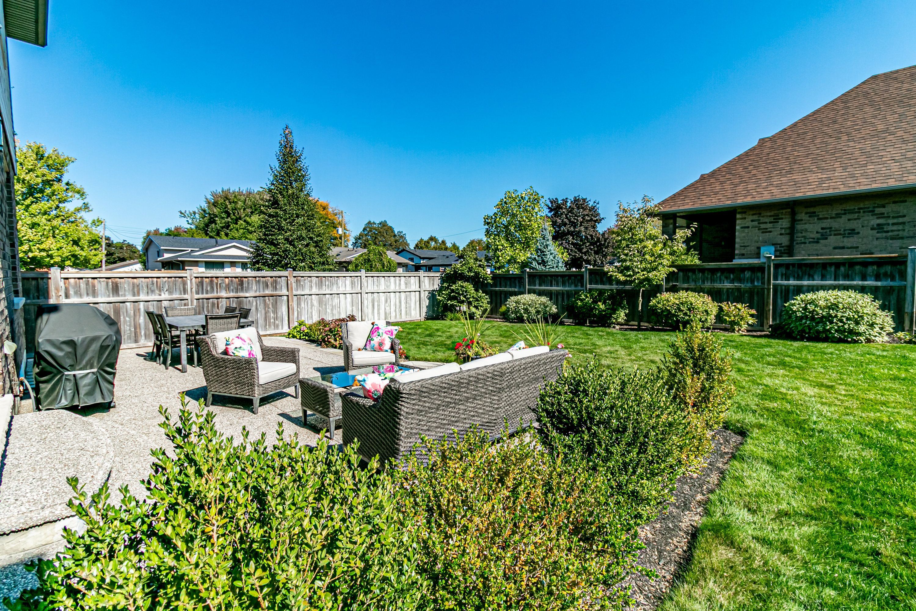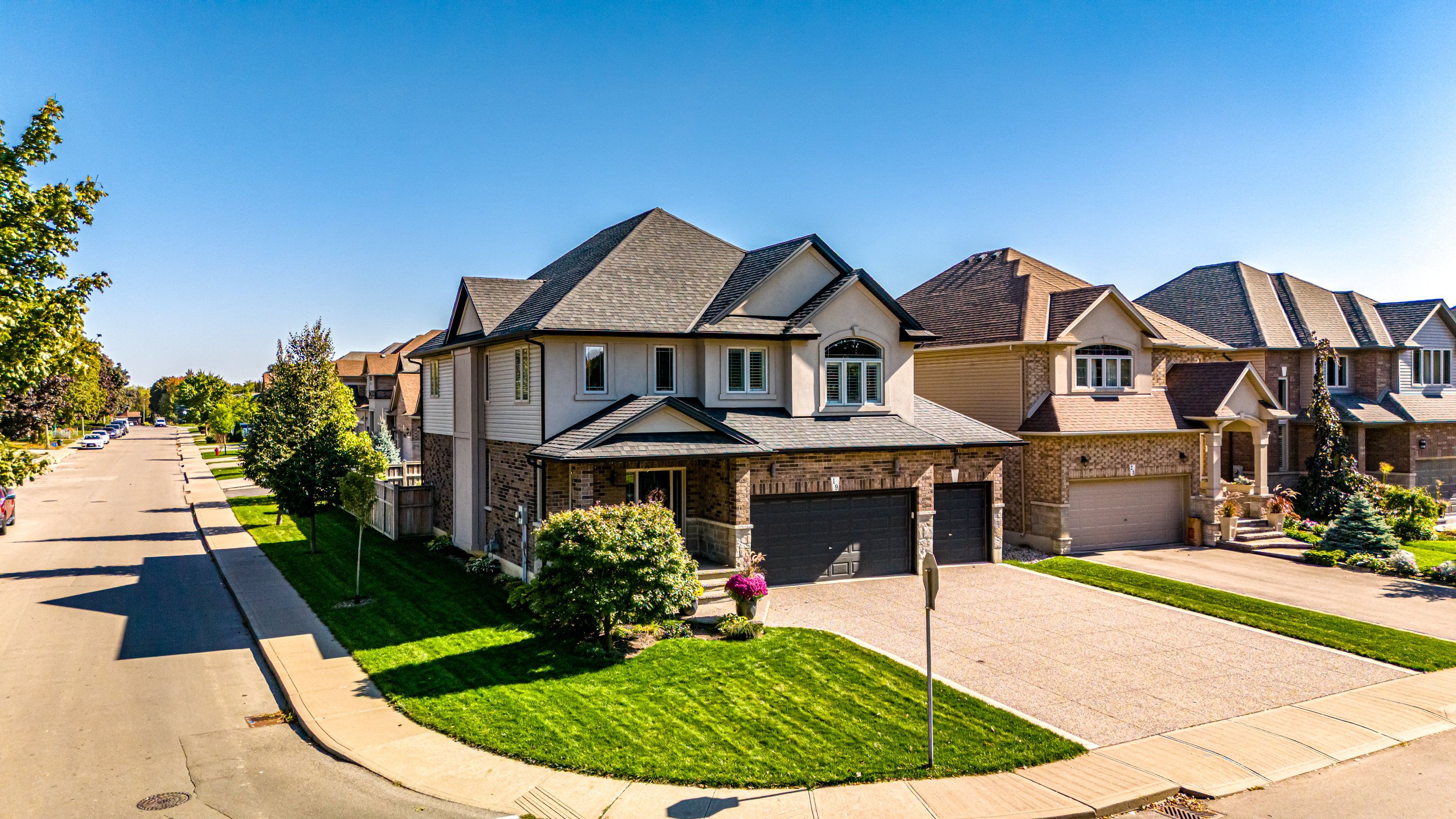 Welcome to this breathtaking galli custom-built 4+1 bedroom, 4-bathroom home offering a coveted corner lot in the sought-after gilbert neighbourhood on the hamilton mountain. Showcasing timeless elegance, and premium finishes, this home blends modern luxury with everyday comfort. A rare triple-car garage with roll-through access to the backyard, an exposed aggregate driveway and patio, and professionally landscaped grounds with multiple areas to relax and entertain create a standout exterior. Bathed in natural light from three sides, the home enjoys a bright, airy feel with views of surrounding greenery. Inside, a soaring two-storey loft foyer with a grand chandelier sets the tone. The open-concept main floor features a formal dining area and a sophisticated living room with a stone accent wall, electric fireplace, floating wood shelves, and a built-in media niche. The stunning custom kitchen is complete with stainless steel appliances, beveled grey subway tile backsplash, and a striking live-edge maple island. Upstairs, four spacious bedrooms offer comfort and functionality, most with walk-in closets and two with private ensuites. The primary retreat features a spa-like ensuite with an oversized glass shower and double vanity, while a separate full bath with a tub serves the remaining bedrooms. A second-floor laundry room, complemented by an additional lower-level laundry, adds convenience for busy or multigenerational households. The fully finished lower level is designed for entertaining, offering a spacious great room, custom media and home theatre setup, a built-in framed aquarium, an additional bedroom, and bathroom. Additional highlights include upgraded lighting throughout, a built-in speaker system, and a security system. Ideally located steps to parks and minutes from the lincoln m. Alexander parkway, qew, ancaster meadowlands, and top amenities, this turnkey home offers an elevated lifestyle in one of hamilton mountain's most desirable communities.