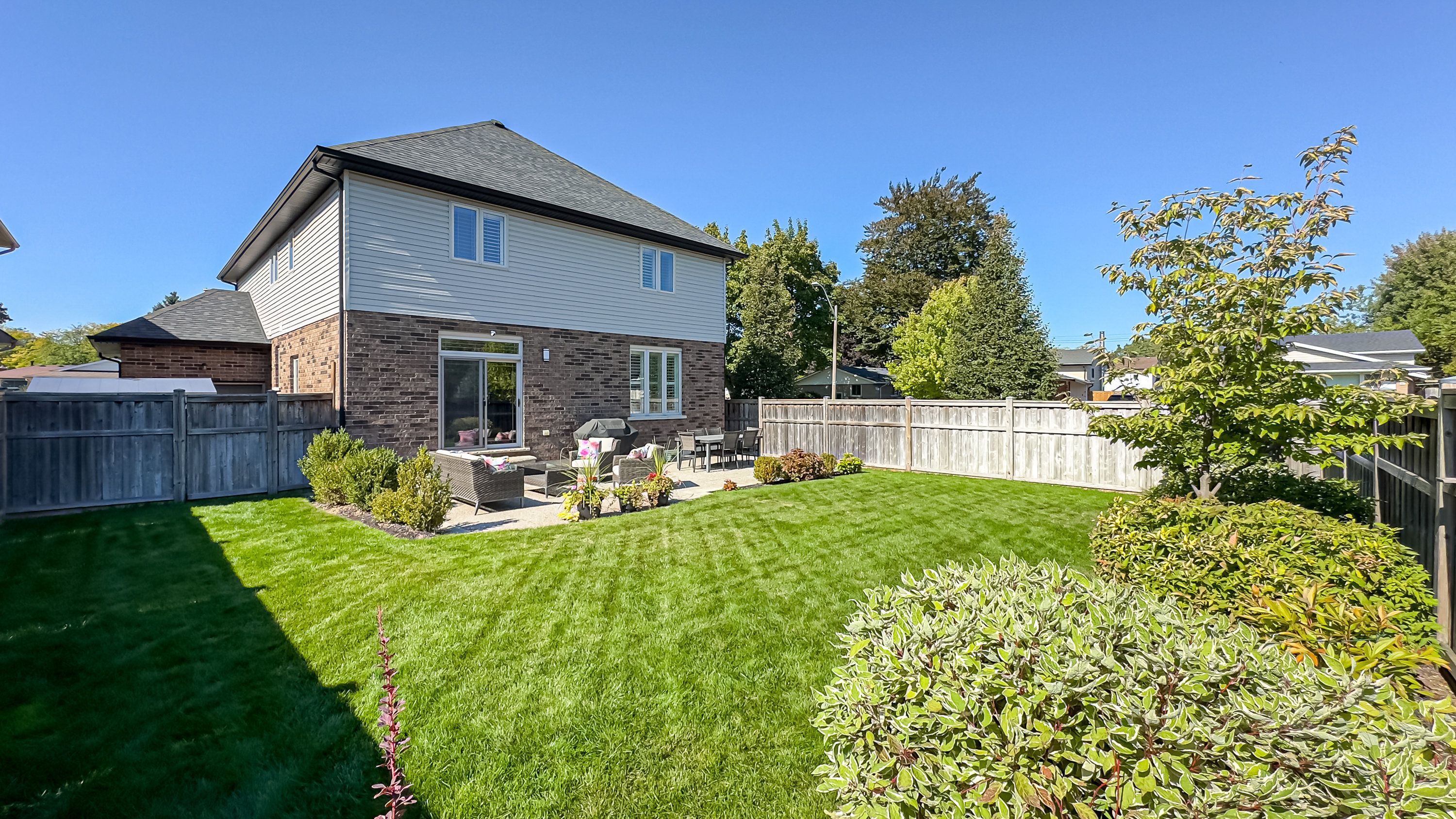 • Triple-car garage with backyard access and stunning landscaping outside.