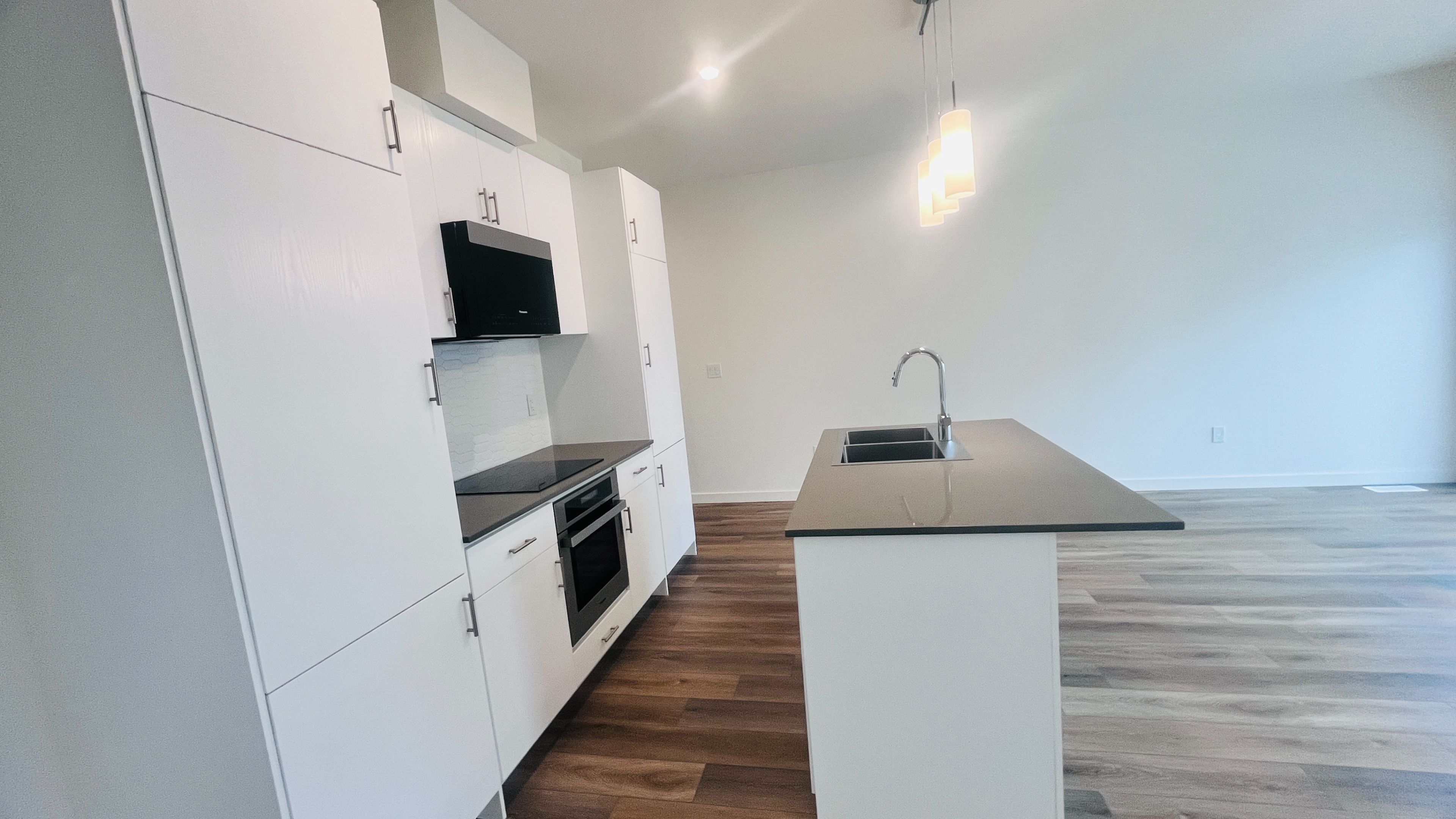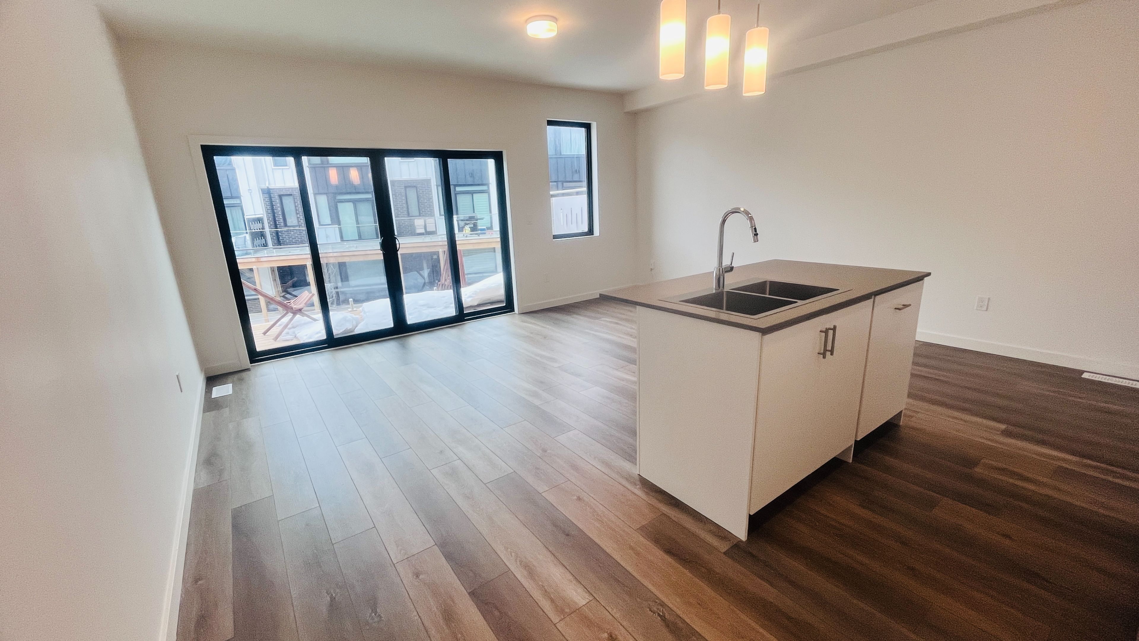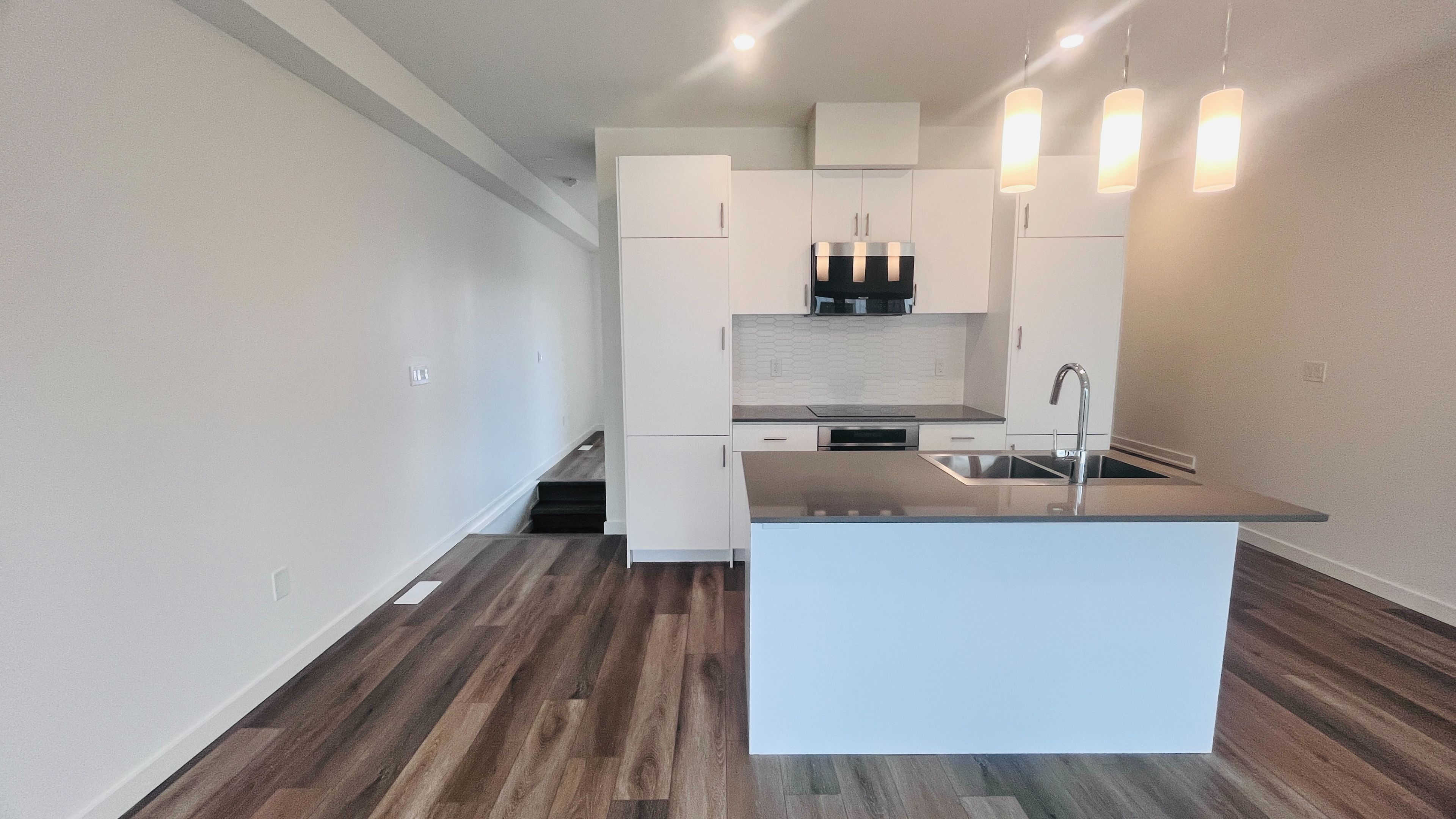 • Open-concept design with modern kitchen and spacious dining area.