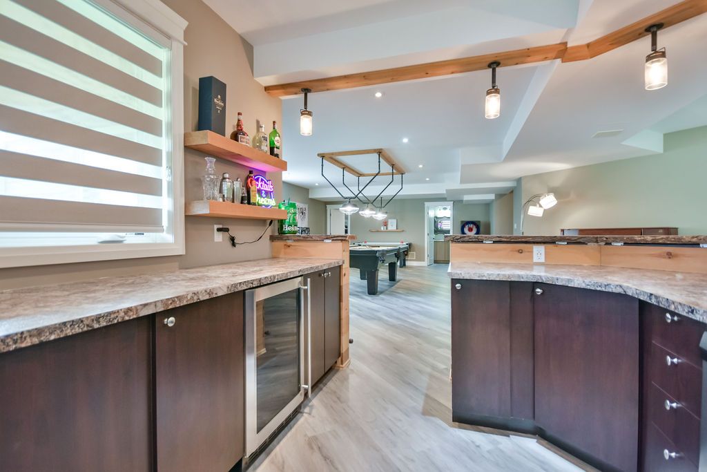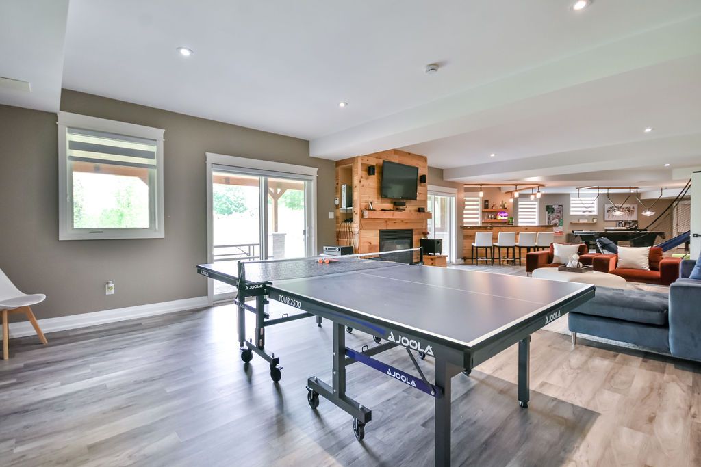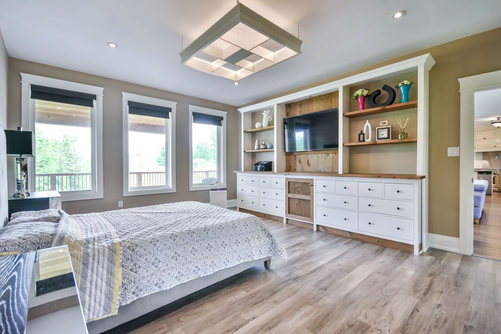 This extraordinary estate, set on 8. 6 acres, offers a thoughtfully designed layout that blends luxury, privacy, and functionality. Originally built as the builder's own home, it features a multi-generational living space with distinct yet connected areas, ideal for families who want both closeness and independence. The open-concept design flows seamlessly across the main floor, loft, and walk-out basement, creating an inviting atmosphere for both everyday living and grand entertaining. The expansive kitchen, connected effortlessly to the living and dining areas, is perfect for hosting large gatherings. The primary suite is a masterpiece, boasting built-in cabinets, a spacious walk-in closet, and a spa-inspired bathroom with dual vanities and a unique shower with two separate entrances. With five bedrooms plus a fitness room that can serve as a sixth bedroom home offers abundant space. Movie nights will never be the same thanks to your private theatre, making trips to a movie theatre a thing of the past! Step outside to the stunning covered deck, where you'll enjoy breathtaking views offering unmatched serenity. With over 6,500 square feet of finished interior space, this home is truly a rare find best appreciated in person to fully experience its exceptional layout and design. So much value in the luxury multigenerational family home on so much land! Measurements as per geo warehouse 350. 94 ft x 849. 28 ft x 305. 11 ft x 9. 82 ft x 9. 82 ft x 9. 82 ft x 9. 82 ft x 9. 82 ft x 9. 82 ft x 9. 82 ft x 145. 59 ft x 695. 97 ft x 929. 12 ft
