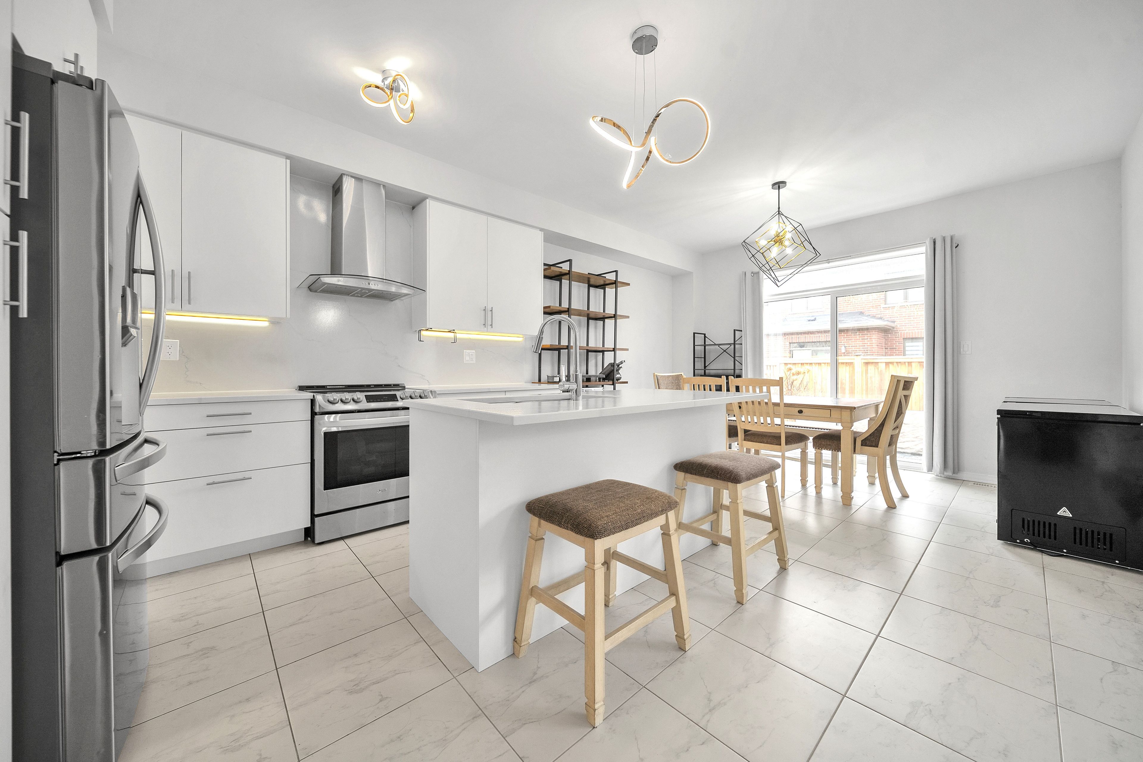 • Gourmet kitchen features quartz countertops and high-end appliances.