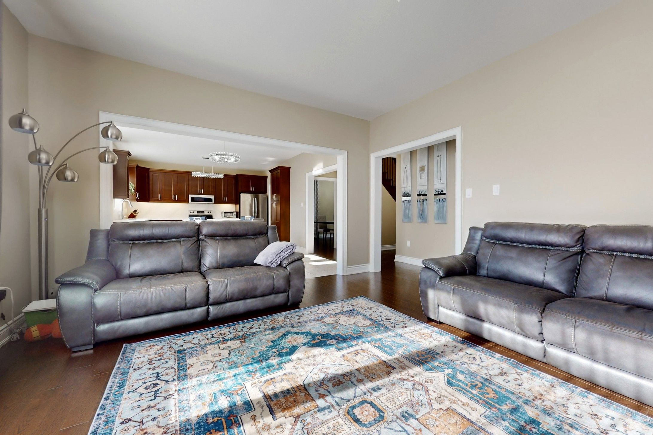 • Family-sized kitchen upgraded with modern appliances and quartz countertops.