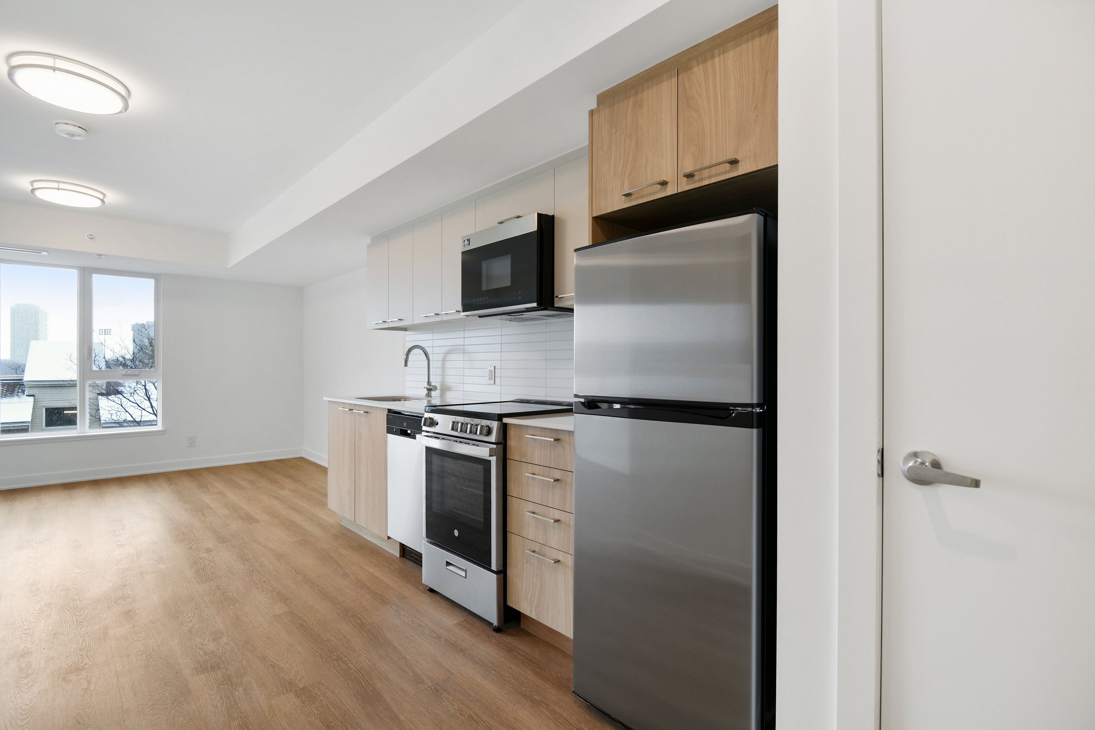 Welcome to 19 robinson #203, a bright and inviting studio suite designed for modern living. A generous entryway leads to a 3-piece bathroom, offering both comfort and convenience. The sleeping area is well-proportioned and features ample closet space for easy organization. The contemporary kitchen is equipped with brand-new stainless steel appliances, making it ideal for everyday cooking and entertaining. Expansive windows fill the unit with natural light, highlighting the thoughtfully designed interior. In-suite laundry adds to the overall ease and functionality of the space. Residents also enjoy access to a shared coworking and lounge area, with the option for gym facilities in the neighbouring 36 building, as well as above-ground parking. This is a fantastic opportunity to live in a stylish, well-appointed space-don't miss your chance to call it home.