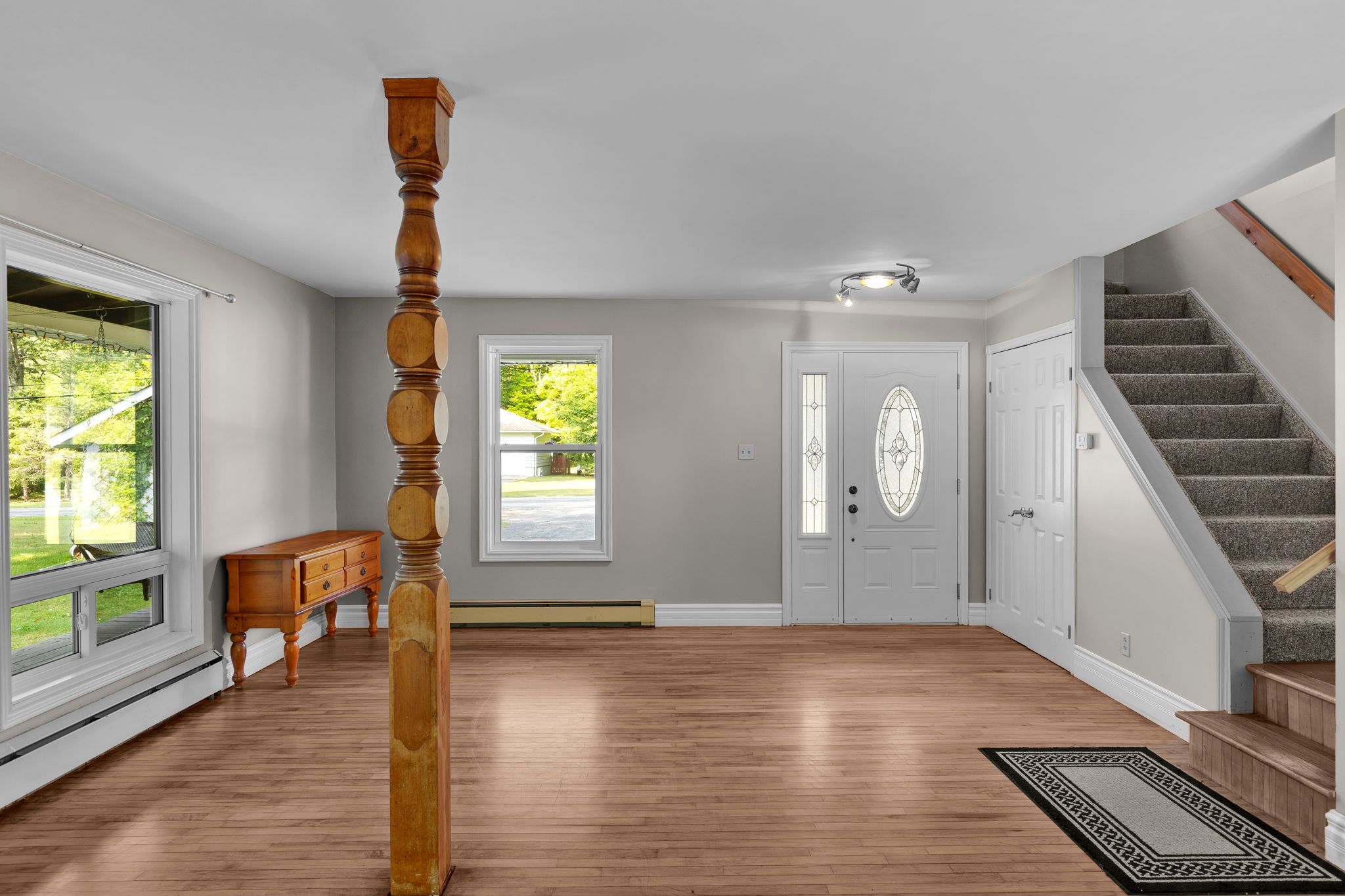 Welcome to 19 sandy plains, where small-town charm meets easy family living. Set on 1. 4 beautifully landscaped acres in the heart of humphrey village, this 3-bedroom home with a spacious den (easily a 4th bedroom) offers room for everyone to spread out and grow. A charming wrap-around porch welcomes you home, perfect for morning coffee, afternoon reading, or evening sunsets overlooking the yard. Inside, you'll find a beautiful custom kitchen designed with quality finishes and plenty of storage, opening to bright and comfortable living spaces ideal for family life and entertaining. The large den offers flexibility as a home office, guest suite, or playroom. The lower level is ready for your vision with great ceiling height and layout; it's ideal for a future rec room, gym, or additional living area. Outside, enjoy 1. 4 acres of manicured lawns, mature trees, and peaceful privacy, all just a short walk to humphrey school and community amenities. A single-car garage completes the picture. Lovingly maintained and full of character, 19 sandy plains is the kind of home that feels just right the moment you arrive.