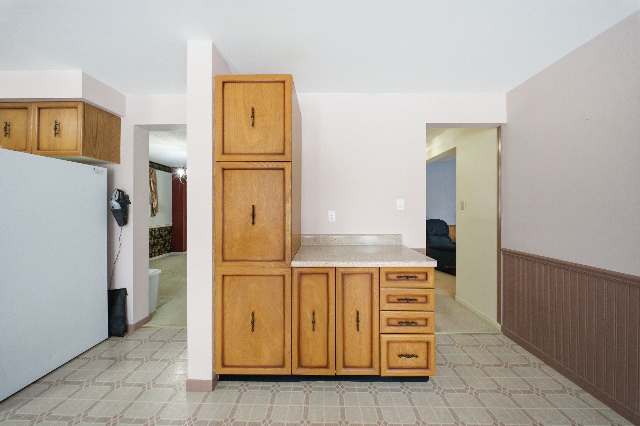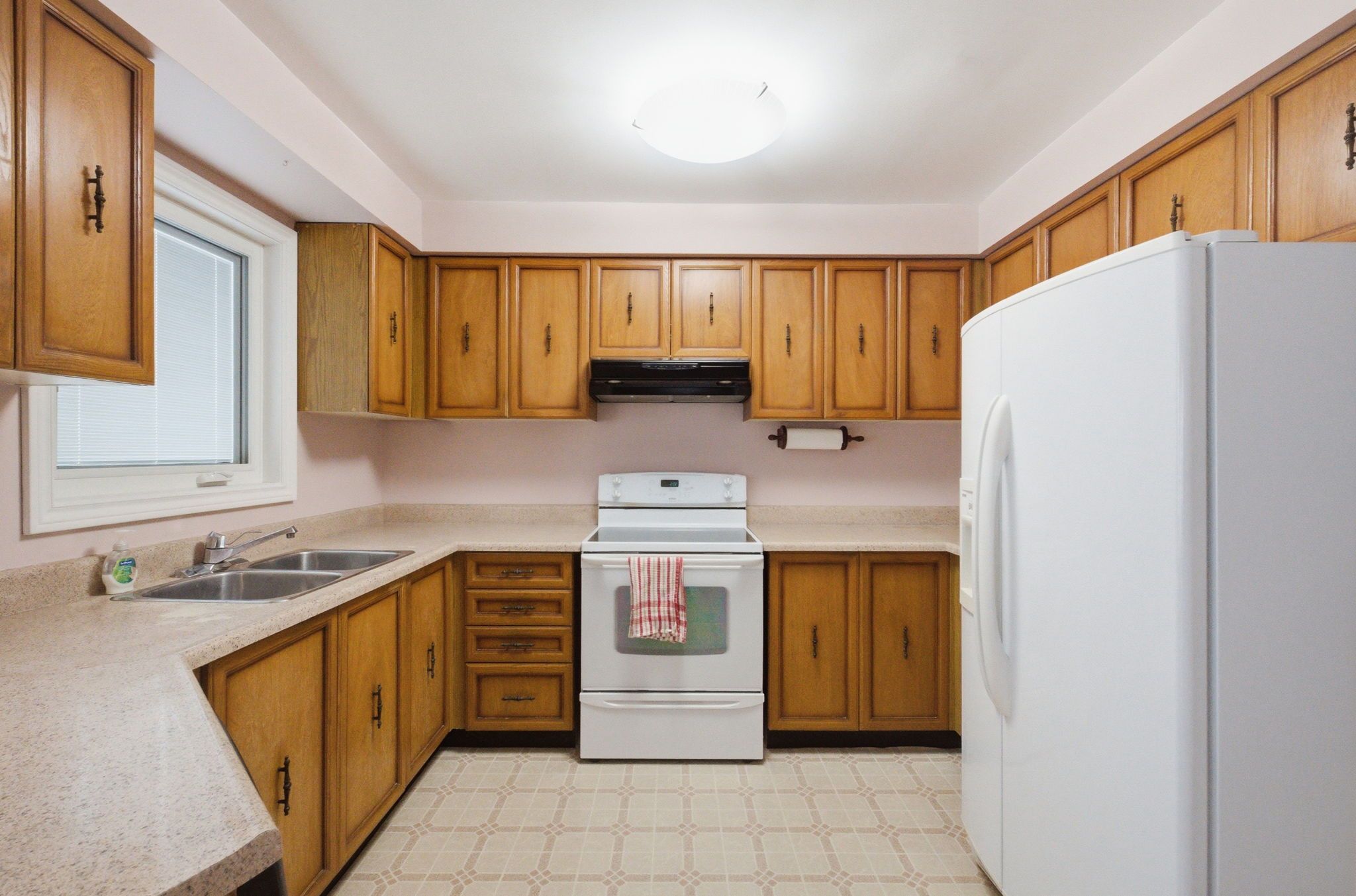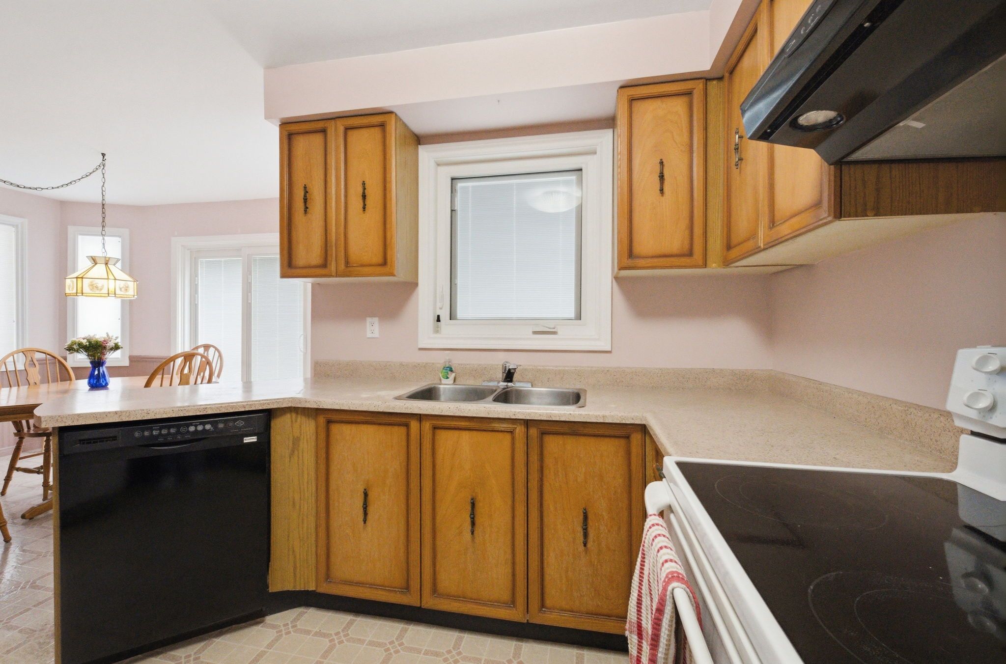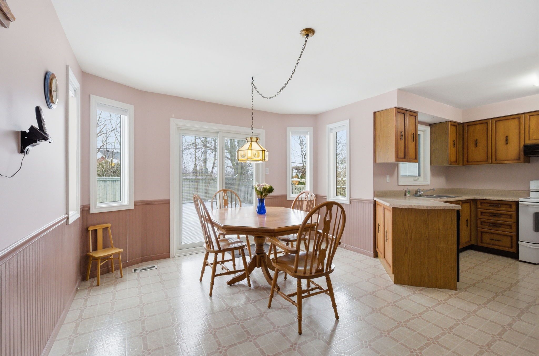 • Kitchen features solid wood cabinets and breakfast area.