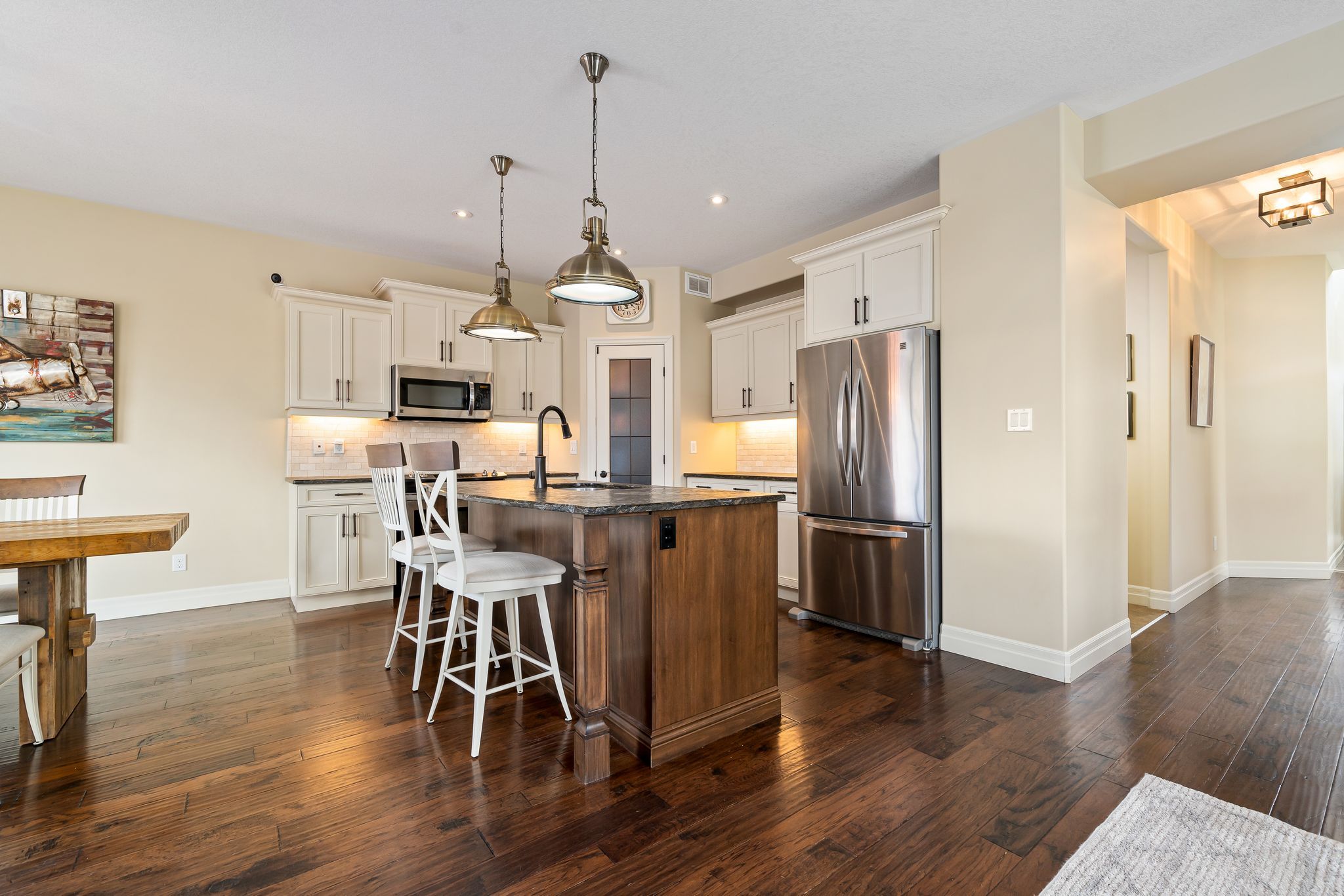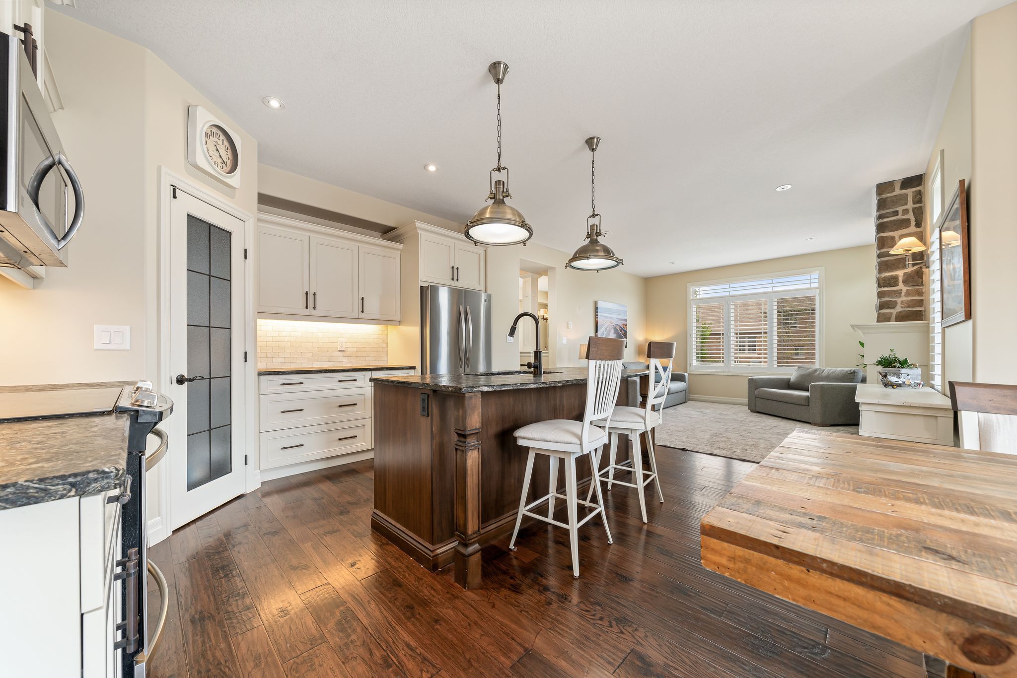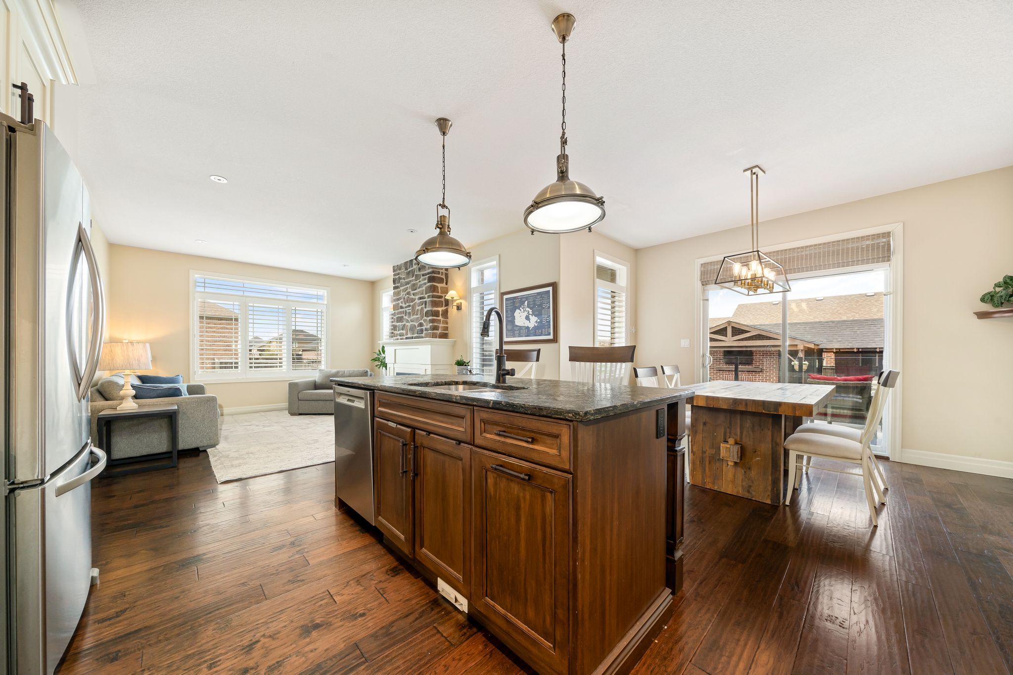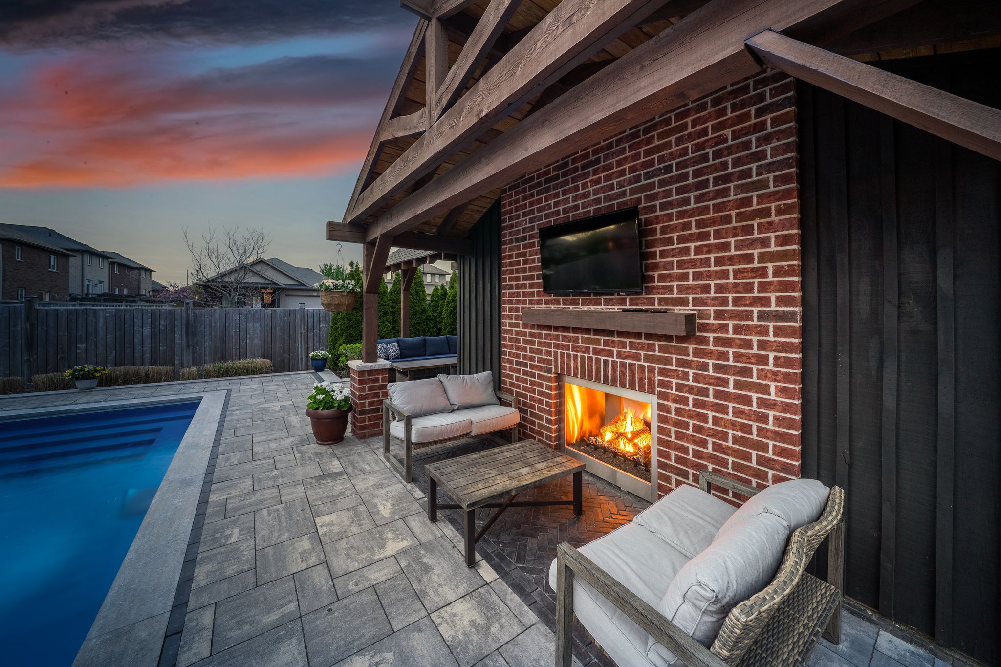 This beautifully appointed 2-storey home offers 4+1 bedrooms, 4 bathrooms, and a perfect blend of luxury, comfort and practicality in one of belleville's most desirable neighbouhoods. The gourmet kitchen offers leathered granite counters, stainless steel appliances, walk-in pantry, and breakfast bar. The great room includes a gas fireplace and walkout to a fully landscaped backyard oasis. The main floor has a well-appointed mudroom. Finished basement with family room, office with herringbone laminate flooring, gas fireplace, an additional bedroom and a full bath offer plenty of flexible living space. The primary suite features a large ensuite with oversized shower, and both upstairs bathrooms include beautiful granite countertops. Outside, enjoy a 16x40 ft heated fiber glass pool with new heater, luminar streams, and coverstar automatic safety cover (serviced annually) plus a winter cover. Composite decking with two covered seating areas (one with gas fireplace and tv hookup), and outdoor kitchen with granite bar, sink, and premium gas bbq complete the package. The pool house includes a 2-piece bath, utility room, and was stained and painted in 2023. Additional features include a fully insulated garage with high ceilings, interlock path to back door, double fencing for privacy and professionally landscaped yard that's simple to maintain. At night, the majestic exterior light transforms the home into a stunning oasis.