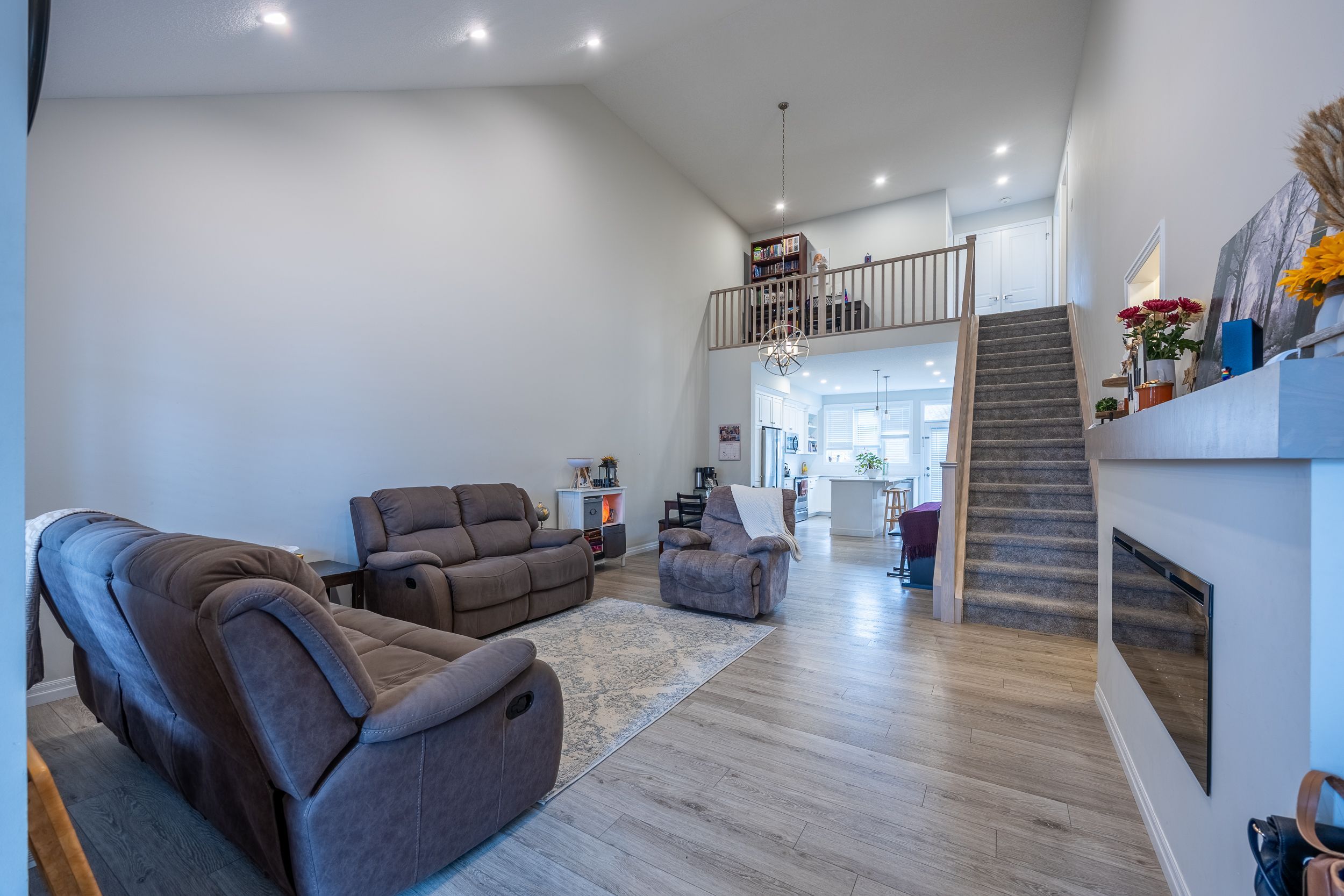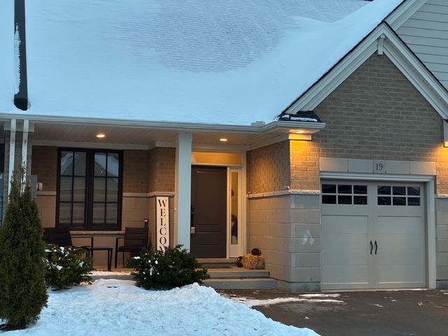 Welcome to 19 sierra st., tillsonburg. No fees!! 4 bedrooms! 4 bathrooms! This stylish and spacious bungaloft is a freehold townhome that is ideally located near westfield public school. Step inside to an inviting open-concept main floor highlighted by a soaring vaulted ceiling and bright living area complete with a cozy, modern, electric fireplace. The dining room flows seamlessly into the kitchen featuring hard-surface countertops, a large island, ceramic tile backsplash, and ample cabinetry, perfect for entertaining or family gatherings. Walk out the back door to the deck, ideal for bbq's or relaxing outdoors. Back inside on the main floor is the primary bedroom complete with a full ensuite and a walk-in closet. Also, on the main level is a powder room, laundry and access to the single car garage. The impressive and versatile loft overlooks the living room and dining room. This space could be used as an office or reading nook accompanied by two spacious bedrooms and a full bathroom. The finished basement expands your living space with a generous family room, an additional bedroom, a full bathroom and a large storage/utility area. Additional upgrades include luxury vinyl plank flooring, comfort-height toilets, and an asphalt driveway. With its thoughtful layout, stylish finishes, and fantastic family-friendly location, this home truly has it all; comfort, convenience, and charm.