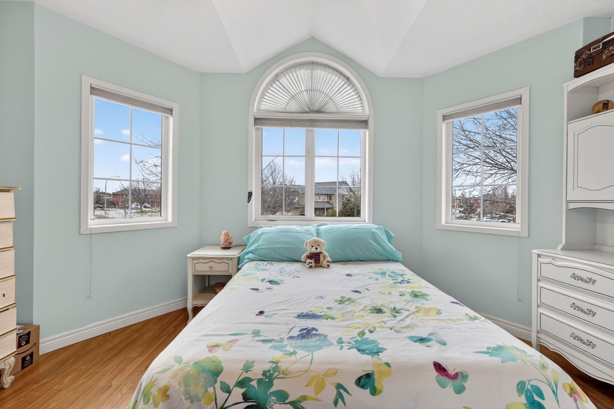 • Spacious pie-shaped lot with privacy and no rear neighbors.
