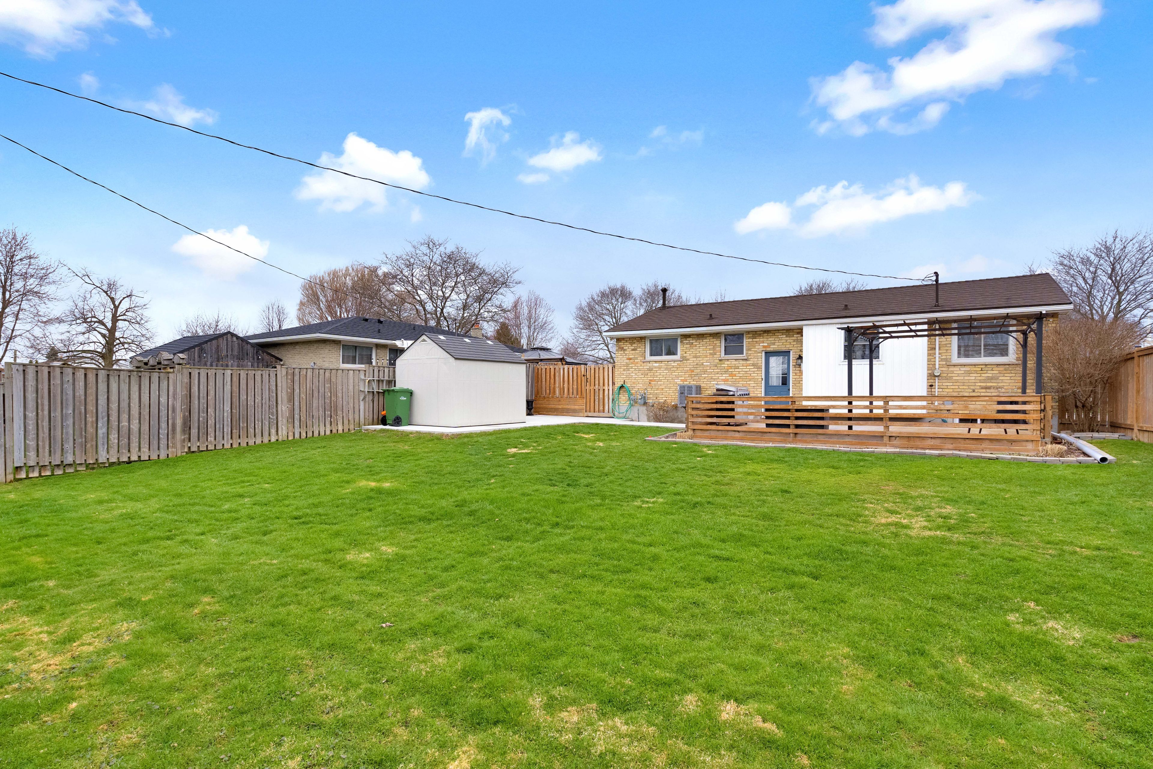 Welcome to 19 sparta street, st. Thomas! This meticulously maintained ranch-style bungalow is the kind of home where every detail has been carefully considered to give a stylish, modern and warm feel. Inside, you're greeted by a beautiful front sitting room filled with natural light from large windows. The layout flows into a dedicated dining room and a sleek, updated kitchen with quartz countertops, modern cabinetry, and stylish finishes. The three main-floor bedrooms are each colour-drenched in rich, dark tones that create a calming, restful atmosphere. The main floor is completed by a fully updated 4pc bathroom. The finished lower level expands the living area with a spacious family room, a private office, and a convenient 2pc bathroom. Step outside from the kitchen to a generous backyard featuring a large deck and newly poured concrete patio. The front yard is equally impressive, showcasing meticulously maintained landscaping and strong curb appeal. This home has been extensively updated over the years, including a renovated kitchen, updated main floor bathroom, finished basement, steel roof with lifetime warranty, newer a/c, modern interior doors, updated fixtures throughout, and extensive exterior improvements including driveway, fencing, deck, landscaping, and recent concrete work with a new shed. At 19 sparta street, pride of ownership is unmistakable, offering a stylish, move-in-ready home in a well-established neighbourhood of st. Thomas. Homes this well cared for rarely come to market. Schedule your private showing today and experience firsthand the quality, comfort, and attention to detail that make this home truly special. Don't miss out - make 19 sparta street, your new home today!