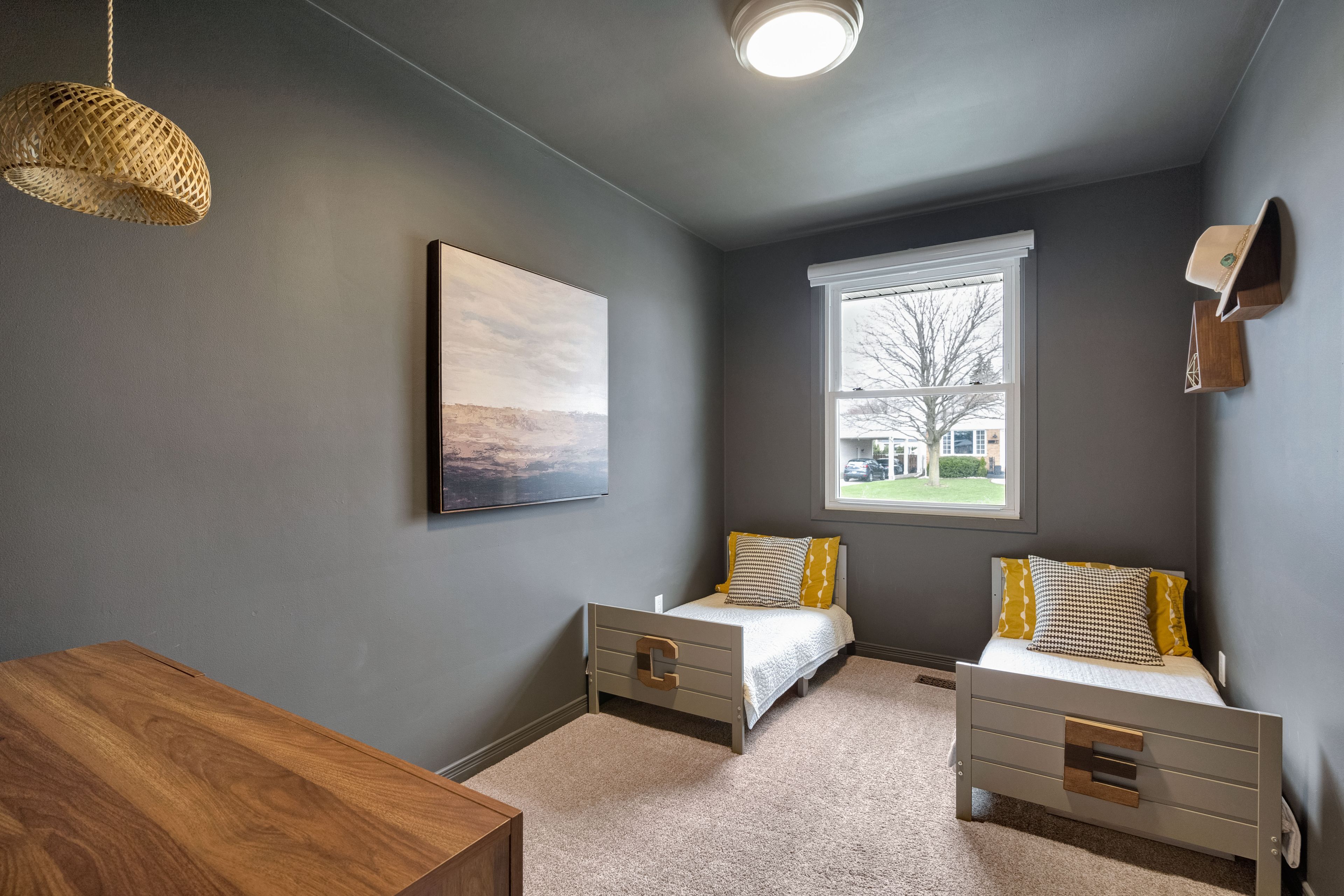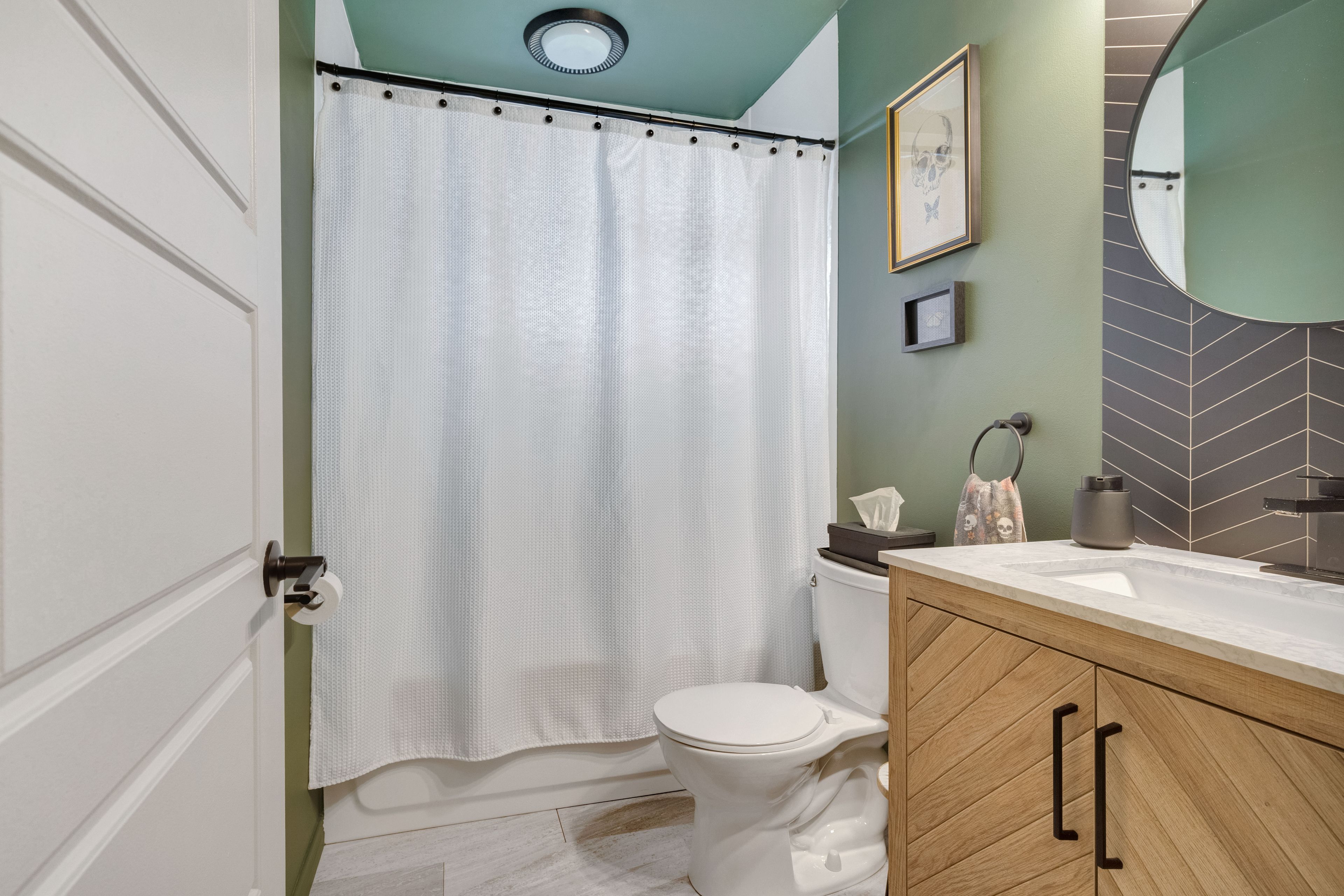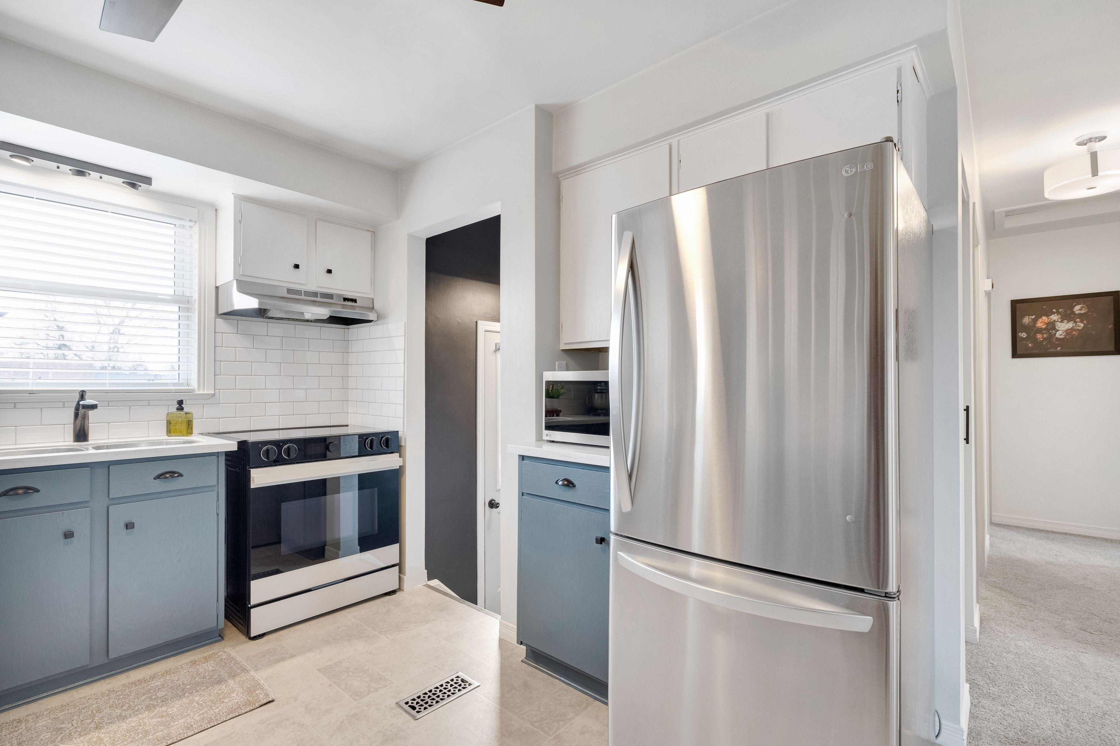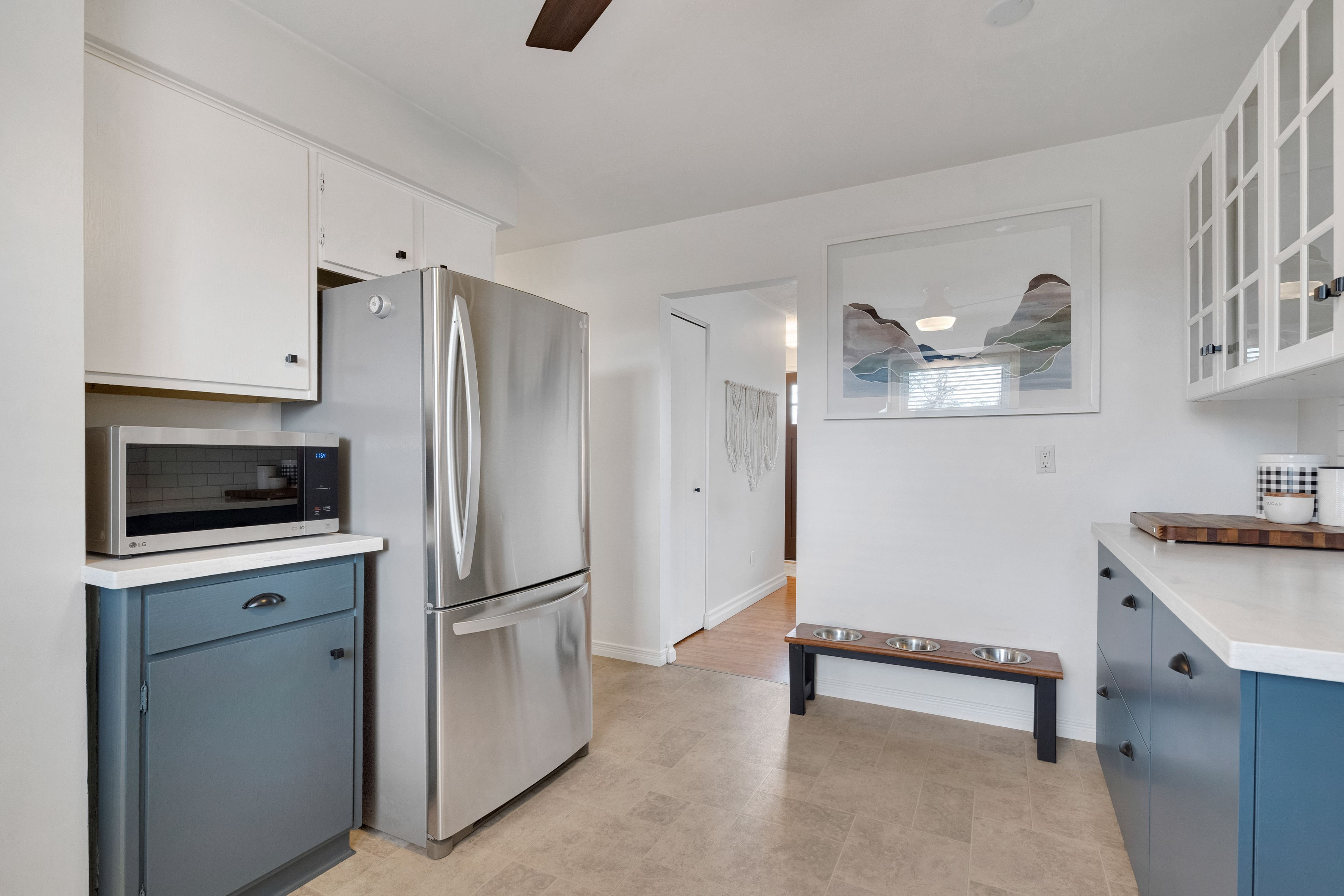 • Updated kitchen with quartz countertops and modern cabinetry.