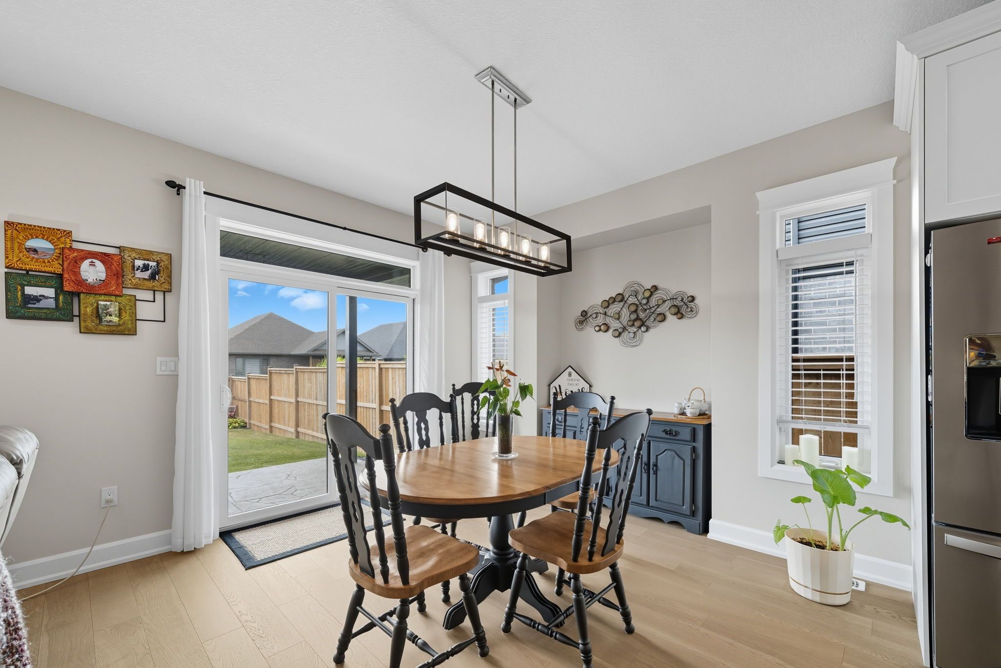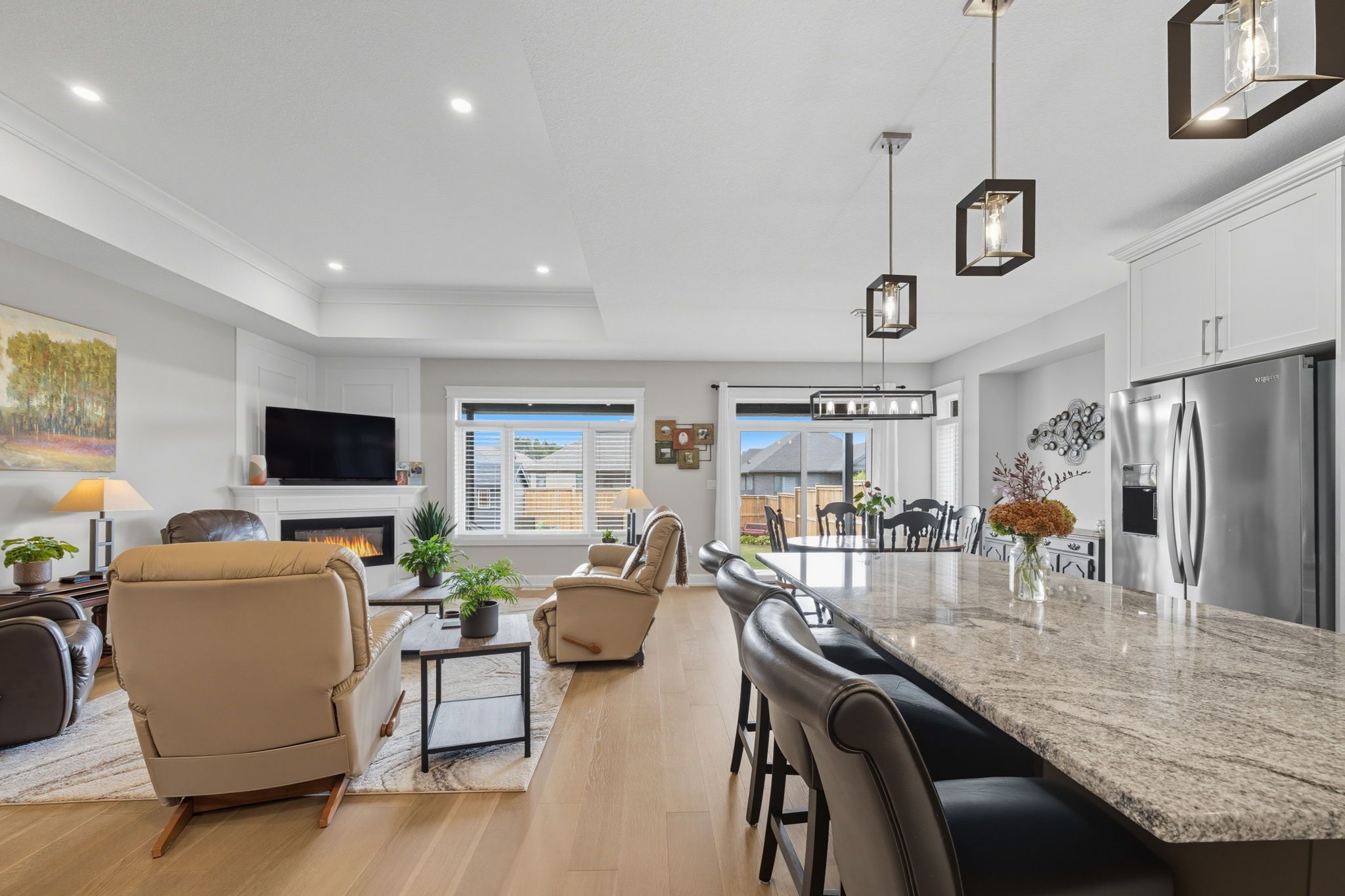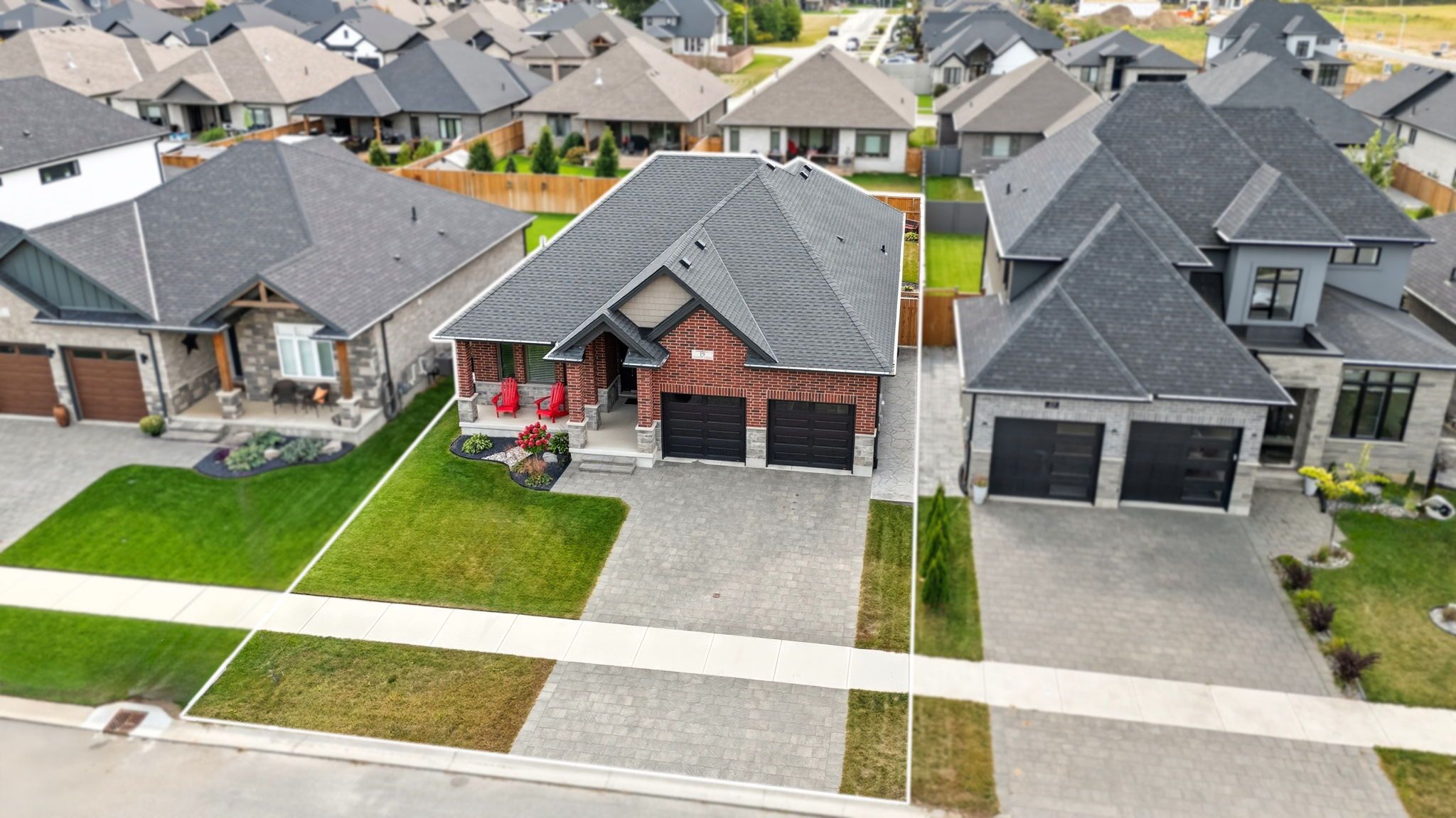 Welcome to prestigious south grove meadows 19 statham street, a stunning dwyer-built all-brick home tucked away on a quiet inside street with minimal traffic, just minutes from caradoc sands golf club. Sitting on a generous 130 ft lot, this 2+2 bedroom, 3 full bath property showcases thoughtful upgrades, timeless finishes, and a warm open-concept design. Step inside to find a bright, airy main floor with added windows for natural light, a cozy living room fireplace, and a gourmet kitchen featuring granite countertops, stainless steel appliances, a large island, walk-in corner pantry, and sleek black sink. The primary suite offers a walk-in closet and private ensuite, while the second main-floor bedroom is ideal for guests or a home office. The fully finished lower level includes 2 additional bedrooms (one with walk-in closet), a full bathroom with heated floors, a spacious family room with a gas fireplace, and soundproofing upgrades for ultimate comfort. Outside, enjoy a 7ft fenced backyard, stamped poured concrete patio, extended covered porch, perfect for entertaining or relaxing in your private retreat. The homes exterior is designed for low maintenance with aluminum-wrapped posts, stone skirt with brick accents, and upgraded black garage doors. Additional features include: double car garage, central vac, cat-6 wiring in every room, window coverings (levolor blinds upstairs, blackout blinds downstairs), quartz countertops in all upstairs baths, noise insulation upgrades between levels. On demand tankless water heater. This move-in ready home is close to schools, parks, shopping, dining, and recreational facilities making it an exceptional choice for modern living in strathroy.