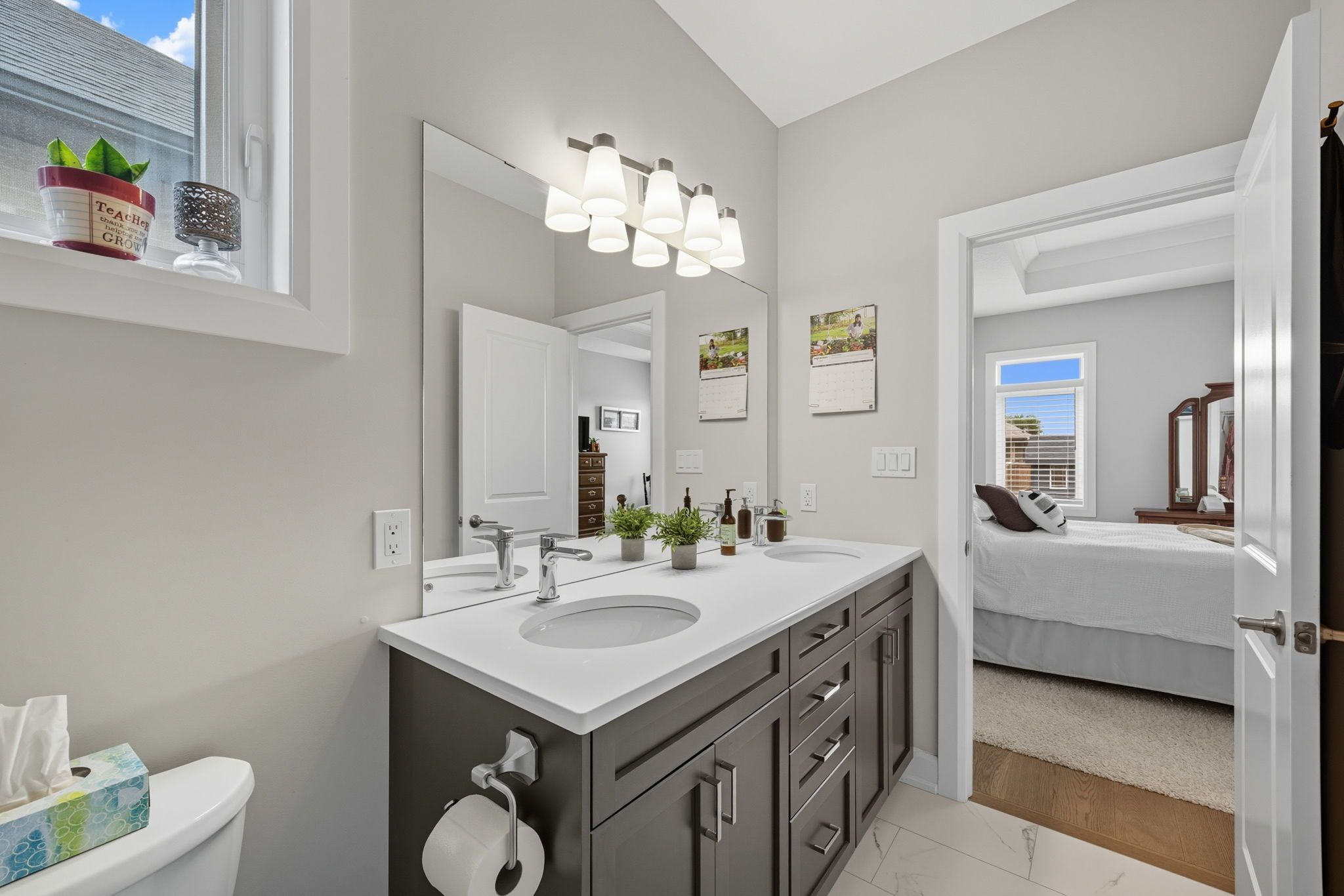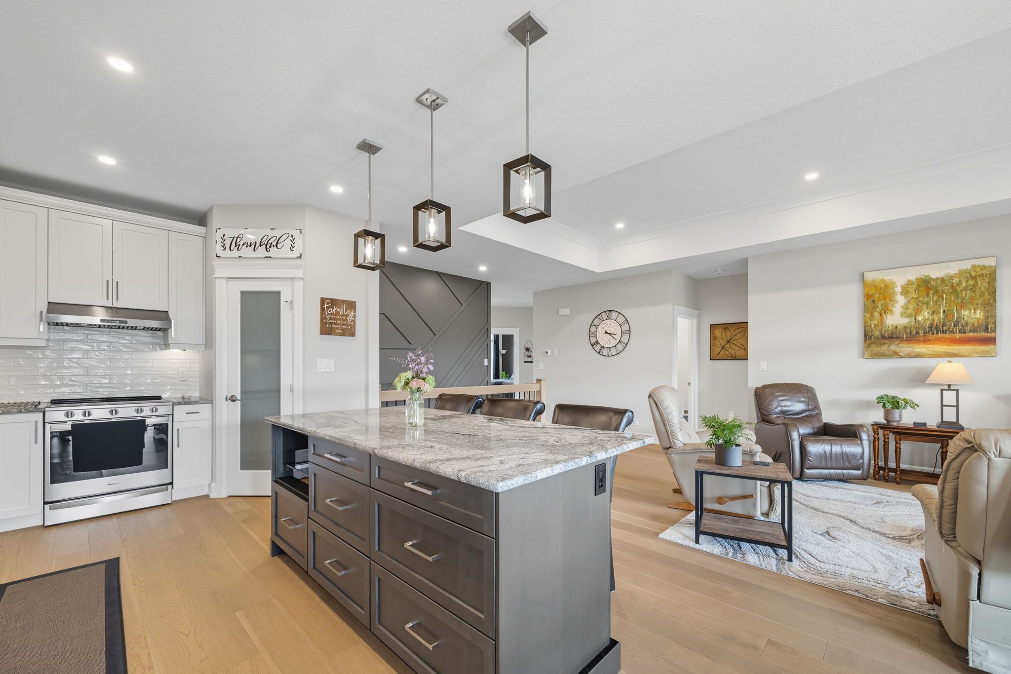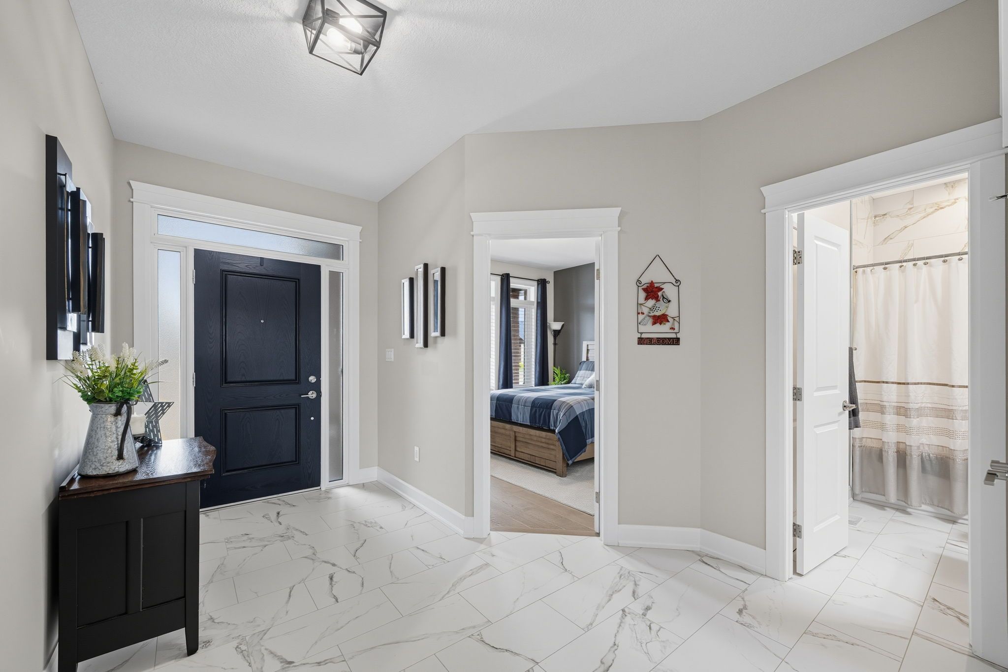 Welcome to prestigious south grove meadows 19 statham street, a stunning dwyer-built all-brick home tucked away on a quiet inside street with minimal traffic, just minutes from caradoc sands golf club. Sitting on a generous 130 ft lot, this 2+2 bedroom, 3 full bath property showcases thoughtful upgrades, timeless finishes, and a warm open-concept design. Step inside to find a bright, airy main floor with added windows for natural light, a cozy living room fireplace, and a gourmet kitchen featuring granite countertops, stainless steel appliances, a large island, walk-in corner pantry, and sleek black sink. The primary suite offers a walk-in closet and private ensuite, while the second main-floor bedroom is ideal for guests or a home office. The fully finished lower level includes 2 additional bedrooms (one with walk-in closet), a full bathroom with heated floors, a spacious family room with a gas fireplace, and soundproofing upgrades for ultimate comfort. Outside, enjoy a 7ft fenced backyard, stamped poured concrete patio, extended covered porch, perfect for entertaining or relaxing in your private retreat. The homes exterior is designed for low maintenance with aluminum-wrapped posts, stone skirt with brick accents, and upgraded black garage doors. Additional features include: double car garage, central vac, cat-6 wiring in every room, window coverings (levolor blinds upstairs, blackout blinds downstairs), quartz countertops in all upstairs baths, noise insulation upgrades between levels. On demand tankless water heater. This move-in ready home is close to schools, parks, shopping, dining, and recreational facilities making it an exceptional choice for modern living in strathroy.