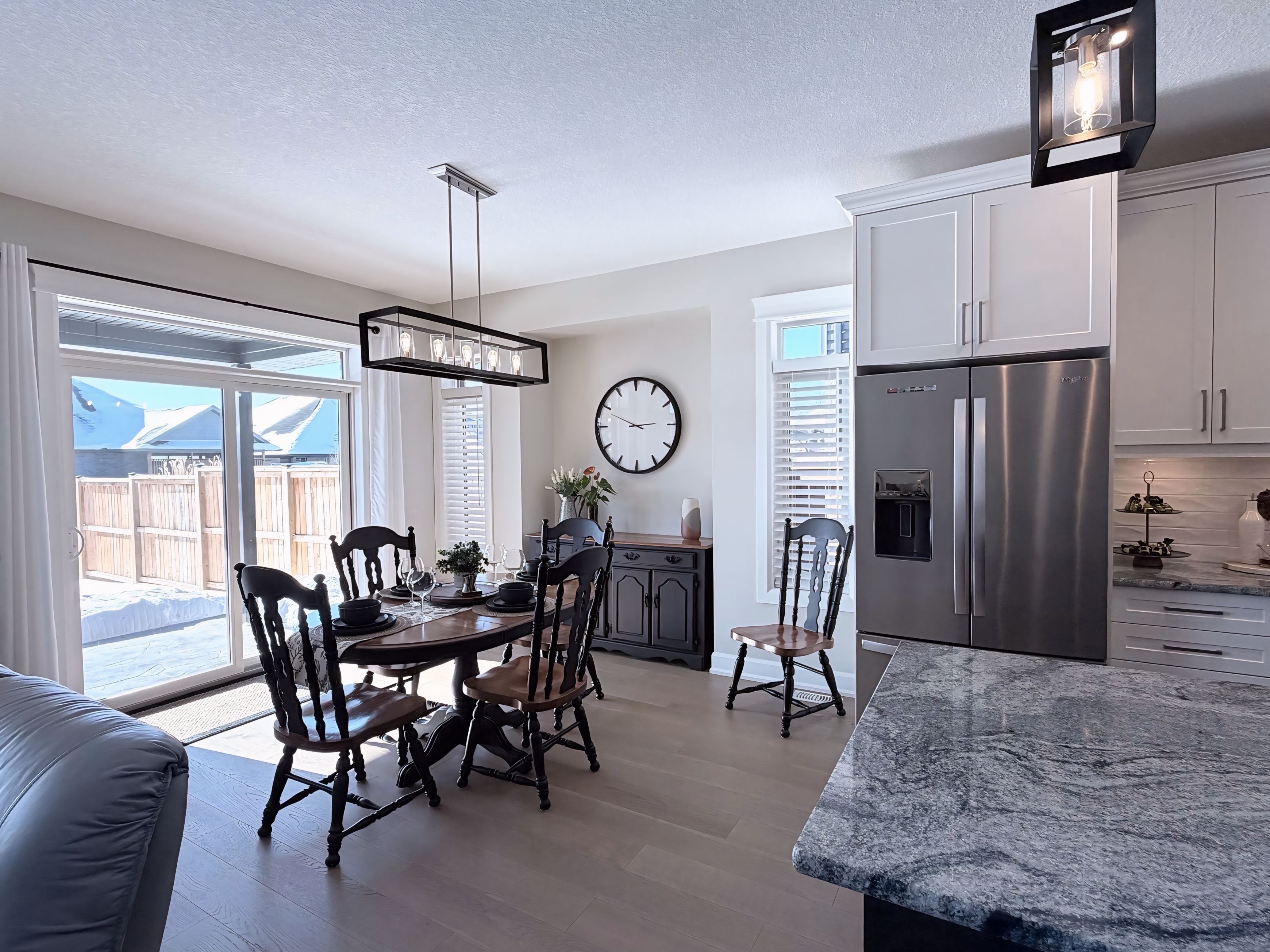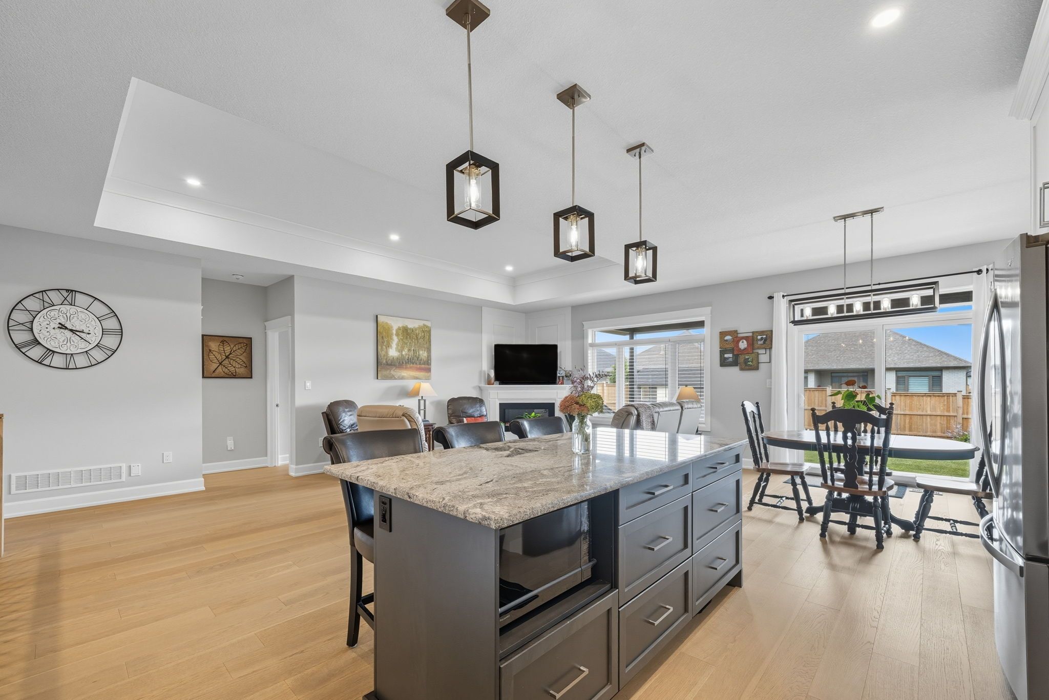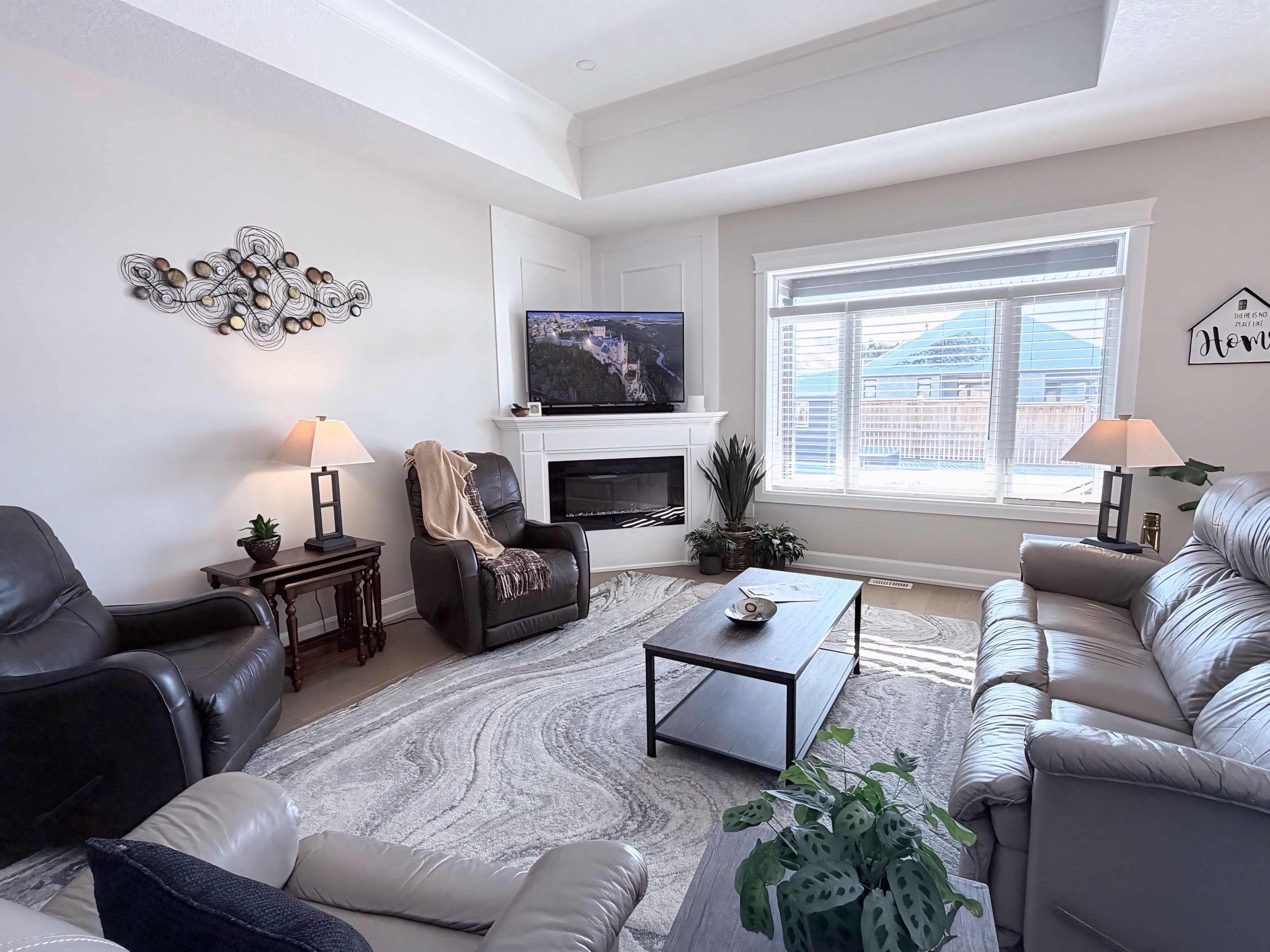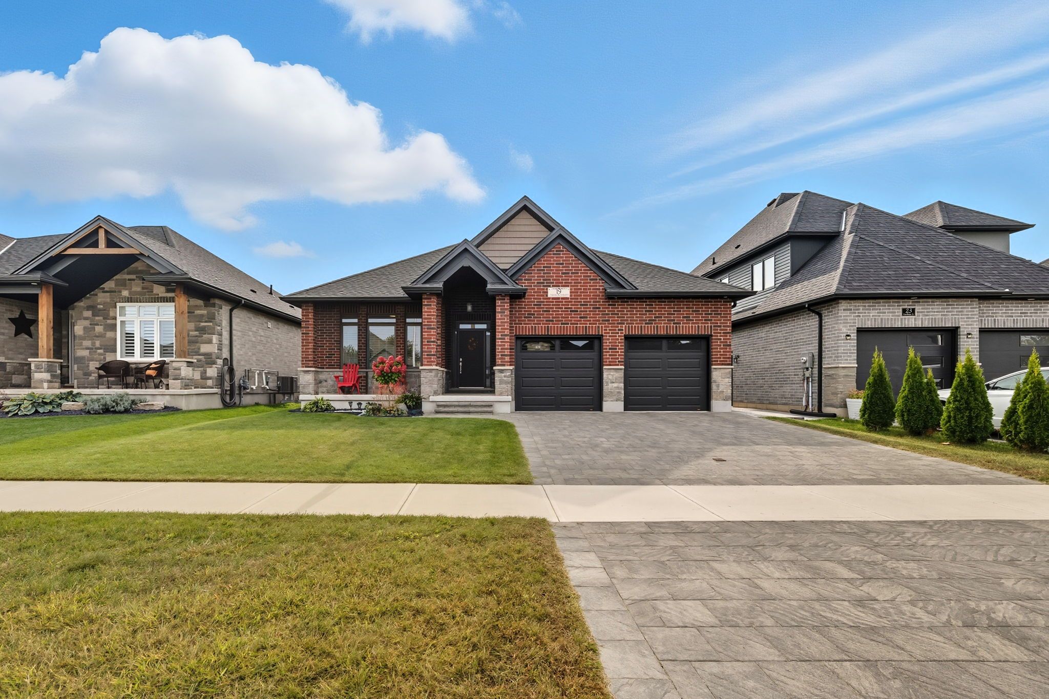 Welcome to prestigious south grove meadows 19 statham street, a stunning dwyer-built all-brick home tucked away on a quiet inside street with minimal traffic, just minutes from caradoc sands golf club. Sitting on a generous 130 ft lot, this 2+2 bedroom, 3 full bath property showcases thoughtful upgrades, timeless finishes, and a warm open-concept design. Pull up to your new home and right into the 20ft x 24ft two car garage with built in shelving for all of your extra storage items. Inside, you'll find a bright, airy main floor with added windows for natural light, a cozy living room fireplace, and a gourmet kitchen featuring granite countertops, stainless steel appliances, a large island, walk-in corner pantry, and sleek black sink. The primary suite offers a walk-in closet and private ensuite, while the second main-floor bedroom is ideal for guests or a home office. The fully finished lower level includes 2 additional bedrooms (one with walk-in closet), a full bathroom with heated floors, a spacious family room with a gas fireplace, and soundproofing upgrades for ultimate comfort. Outside, enjoy a 7ft fenced backyard, stamped poured concrete patio 29ft by 12ft, extended covered porch 26ft by 12ft, perfect for entertaining or relaxing in your private retreat. Additional storage in a beautiful 9ft x 12ft shed with loft. The homes exterior is designed for low maintenance with aluminum-wrapped posts, stone skirt with brick accents, and upgraded black garage doors. Additional features include: double car garage, central vac, cat-6 wiring in every room, window coverings (levolor blinds upstairs, blackout blinds downstairs), quartz countertops in all upstairs baths, noise insulation upgrades between levels. On demand tankless water heater. This move-in ready home is close to schools, parks, shopping, dining, golf and recreational facilities making it an exceptional choice for modern comfortable living in strathroy.