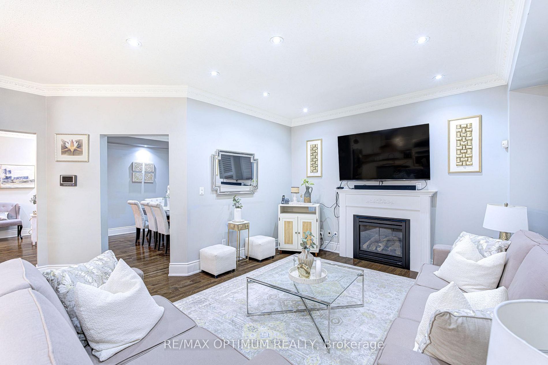 • Bright open-concept main floor features hardwood flooring and a gas fireplace.
