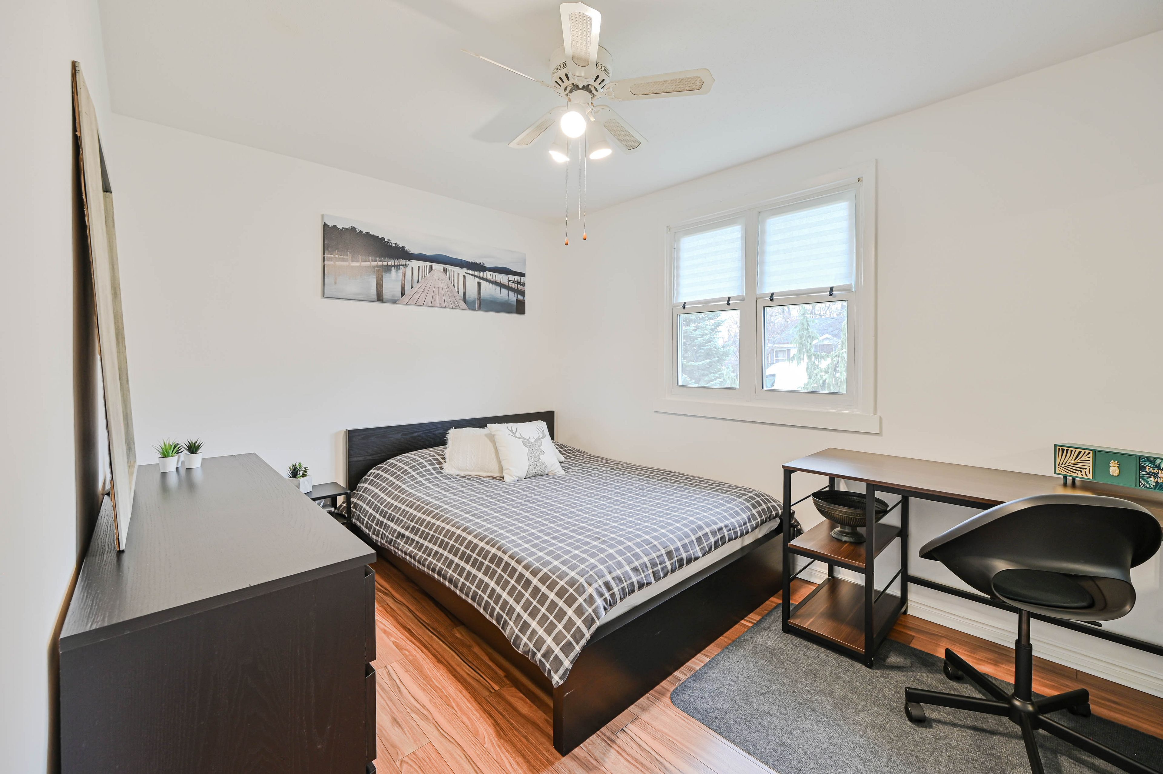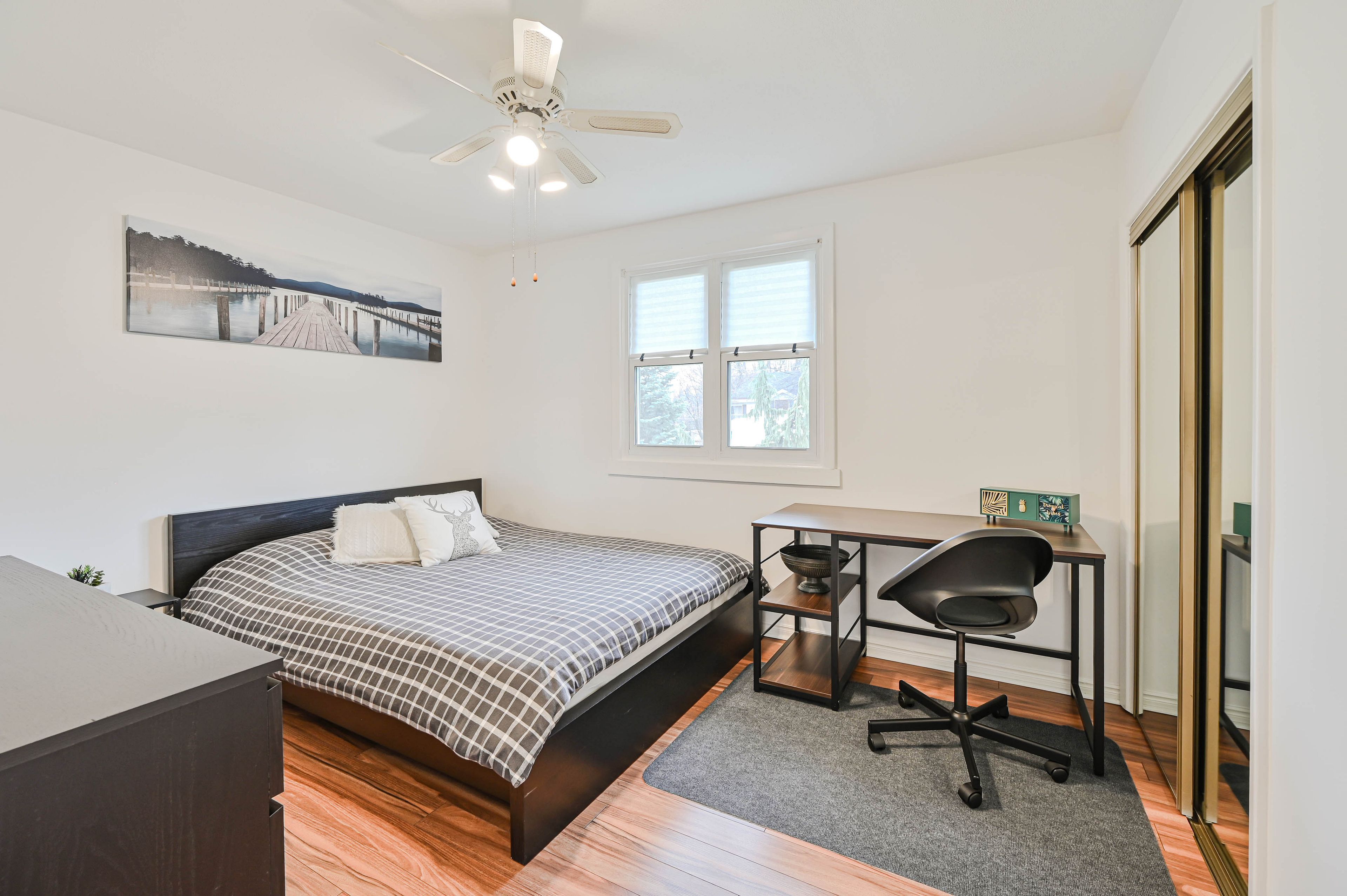 Tucked away on a quiet cul-de-sac, this delightful home features a bright, well-designed layout ideal for today's lifestyle. Offering 2 bedrooms + sunroom, and 2 full bathrooms, it provides both comfort and versatility. The kitchen offers abundant cabinet and counter space and opens directly to a spacious, fully fenced backyard-perfect for entertaining or unwinding. The open-concept living room is warm and welcoming, showcasing ample natural light, crown moulding, and durable flooring. Major upgrades done throughout the property: new modern washroom, new natural gas heating system with a new high-end lennox furnace, new hvac including heat pump and hvac in sunroom and much more.... , new paint of entire property, new lg laundry pair, new . Basement offers a rec room (can be used as another bedroom), and office room, a large laundry room, and a big storage space for all seasons. Set on an expansive 68 ft x 132 ft lot, the property includes a generous backyard, deck, an oversized detached garage with a brand new split-system hvac with excellent workshop potential, and parking for up to 7 vehicles. A wonderful opportunity to enjoy a roomy, convenient, and family-friendly setting.... An excellent property and location .... A must see!!