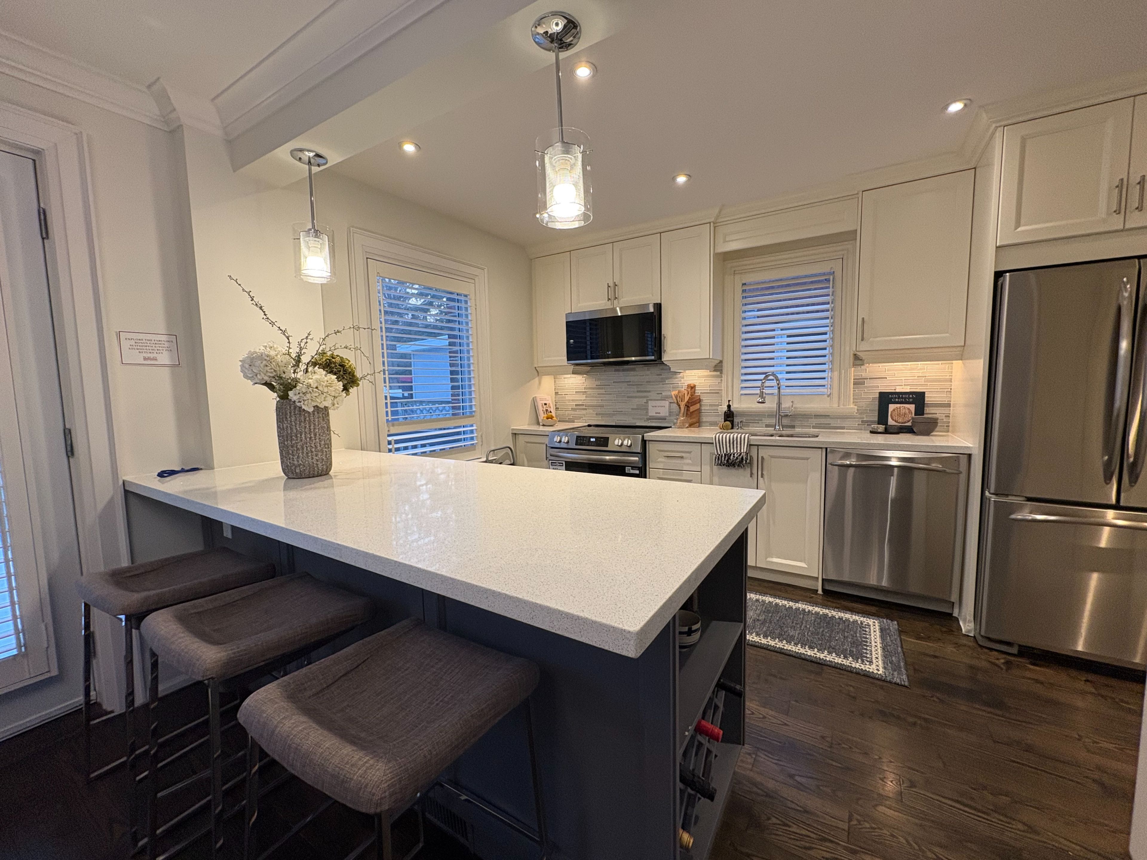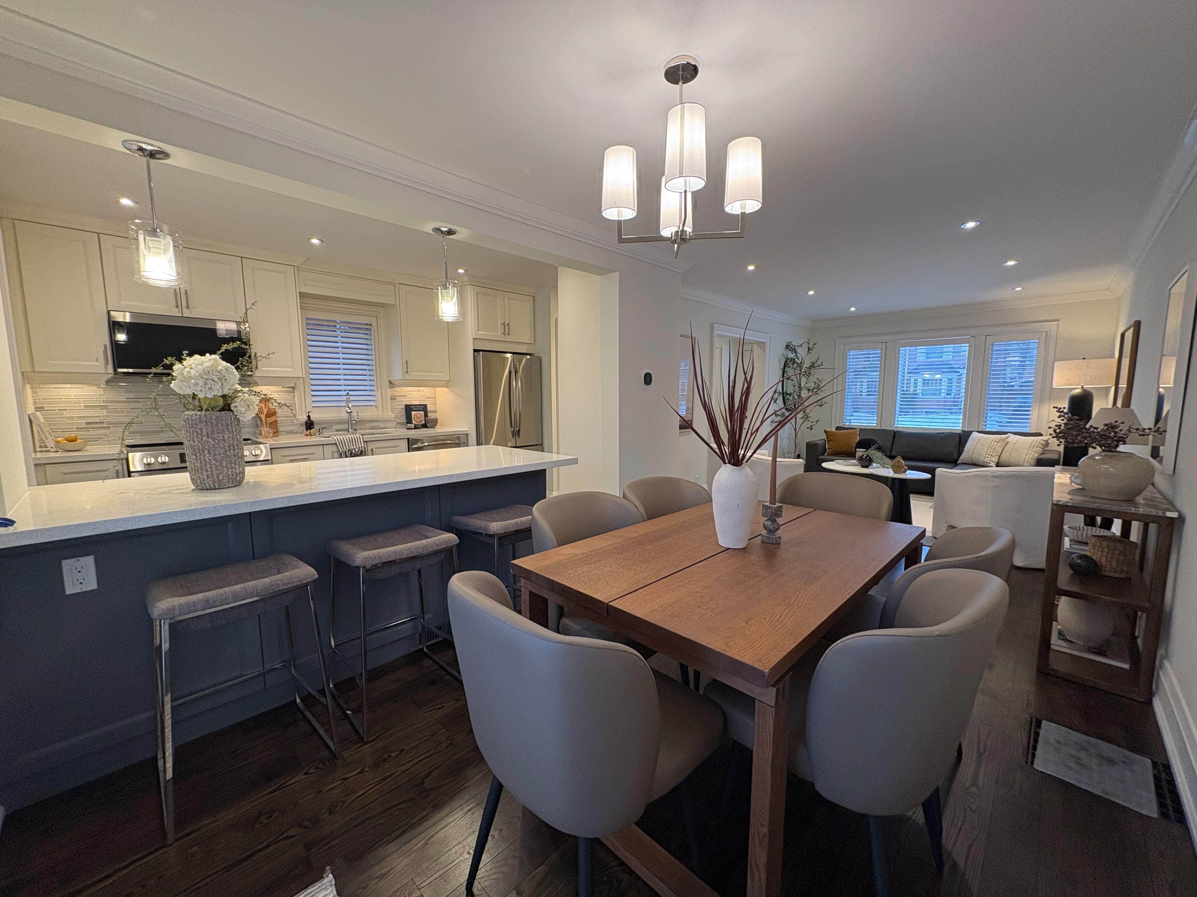 Come discover this beautifully renovated semi detached home nestled on a rare and spacious 28. 69 by 160 foot south lot that bathes the home in natural sunlight and highlights a generous mutual driveway(like private) offering convenience and maneuverability for families and guests with hassle free and dedicated parking for 2 cars right at your doorstep! Thursfield crescent is an enviable quiet and family friendly location minutes to the newly opened lrt. The main floor living and dining rooms feature an open plan showcasing gleaming hardwood floors, california shutters, potlights, crown moulding, freshly painted with french doors walking out to the expansive rear gardens and deck ideal for that morning coffee or evening bbq. Children, dogs and gardeners alike will adore the extensive green space and fully fenced yard. Chefs, families and entertainers can enjoy the stunning kitchen offering a breakfast island, granite counters, stainless appliances, bright picture window and plenty of storage. Head upstairs to 3 generous bedrooms featuring superior storage and closet space including wall to wall primary custom bedroom cabinetry, hardwood flooring, picture windows with california shutters and a luxurious renovated 4 piece bathroom with heated flooring. Need more space???? The fully finished lower level with 3 piece bath and separate side entrance offers the opportunity for further recreation and play. Separate laundry, storage and utility rooms add to the enjoyment. Need an office or a yoga studio?? Come discover this newly built 200 sf separate garden suite with windows, electricity and heating. This gem of a property is located in a highly sought after community with excellent schools, trails, parks, lrt, shops and dining options combining modern living with ample outdoor space . Dont miss this opportunity to call this bright and spacious house your new home! A+ home inspection available. **full media/floorplan/matterport to come feb 19th** open sat/sun 2-4 pm