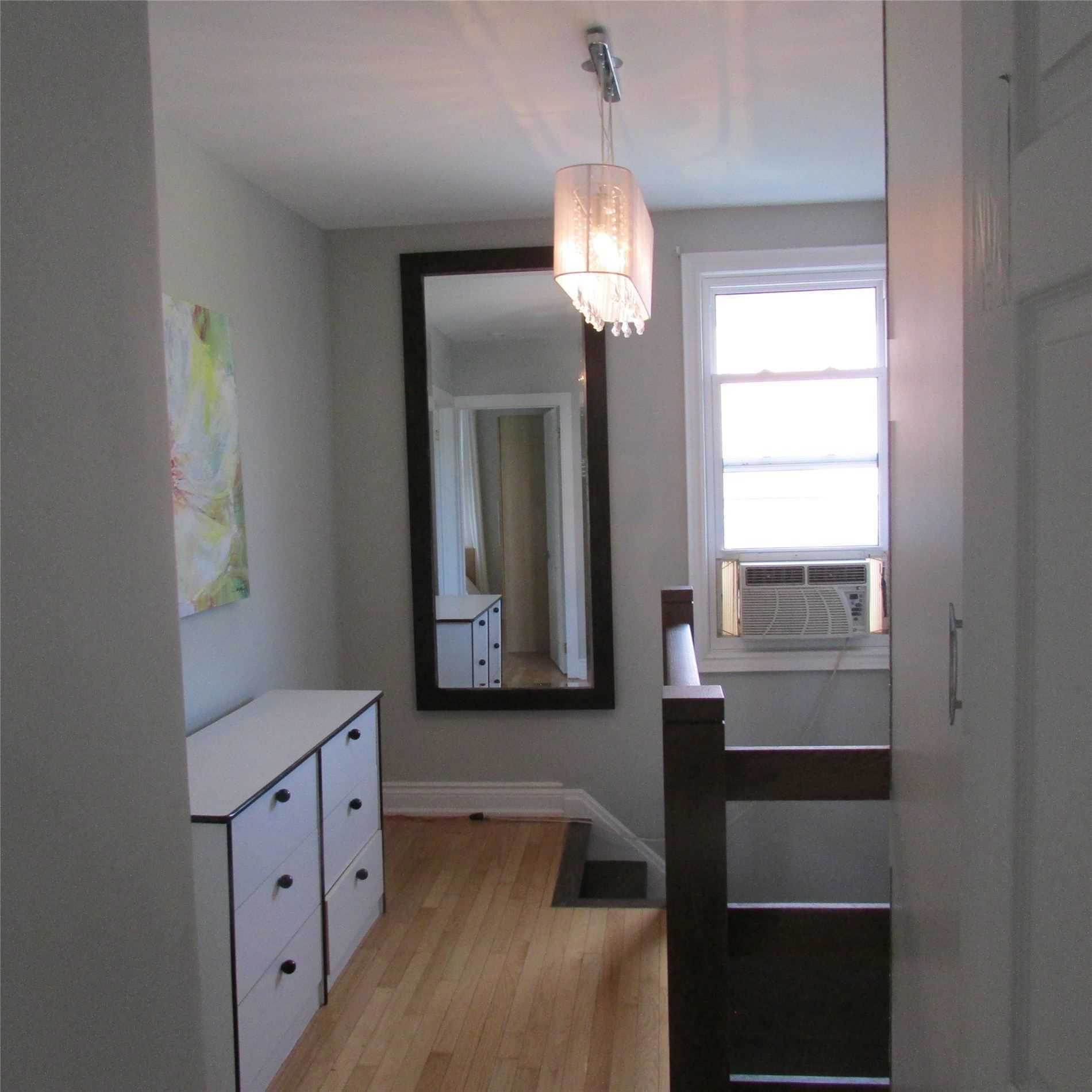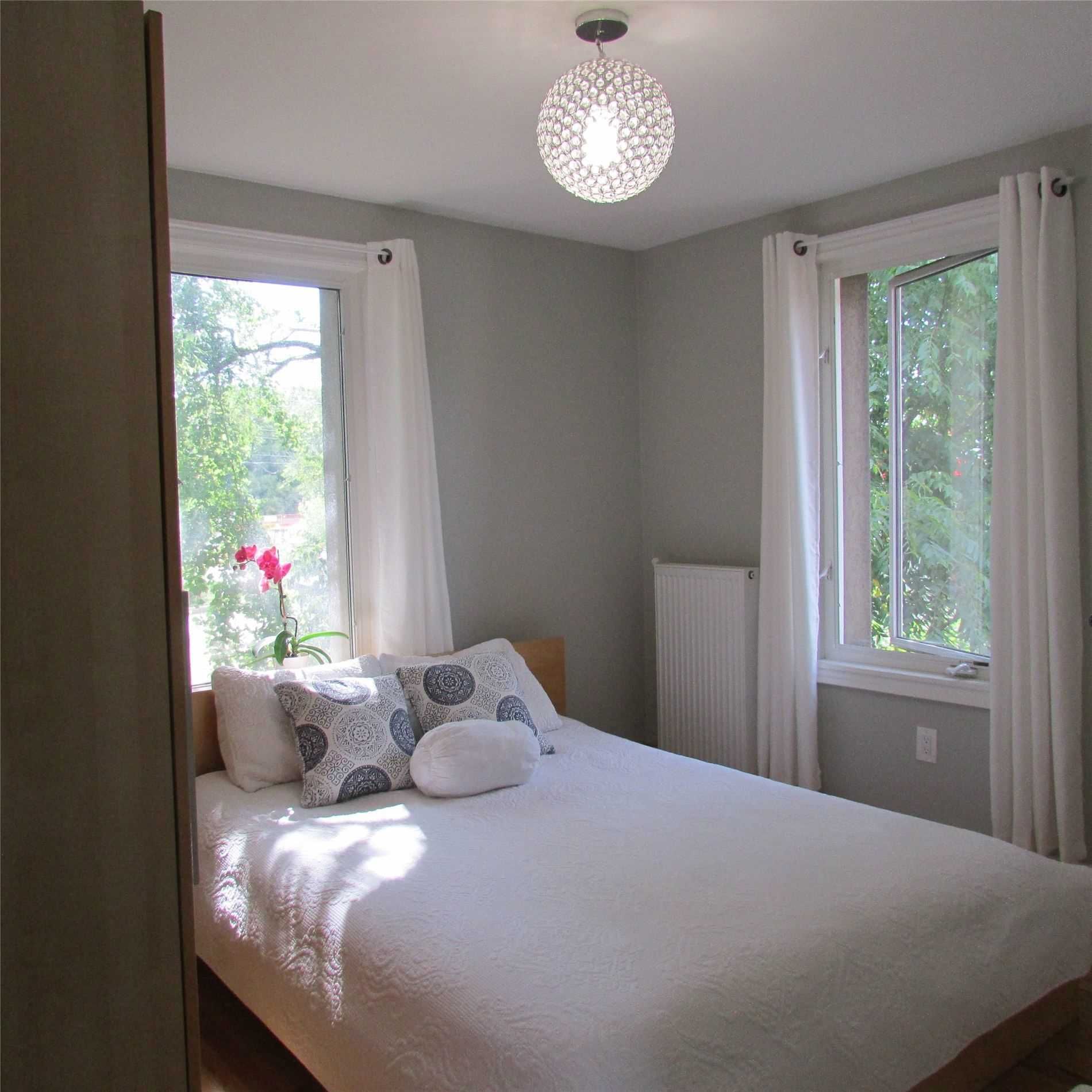 Very bright 2-bedroom semi in duplex, at the back of the house, kitchen and living/dining on main; 2 bedrooms upstairs on 2nd floor; in mississauga's desirable mineola/ port credit area; walking distance to go train, buses, lake, restaurants, bars, parks; 2 tandem parking spots; hardwood floors. Shared laundry with basement tenant at sep. Entrance at rear of the building.