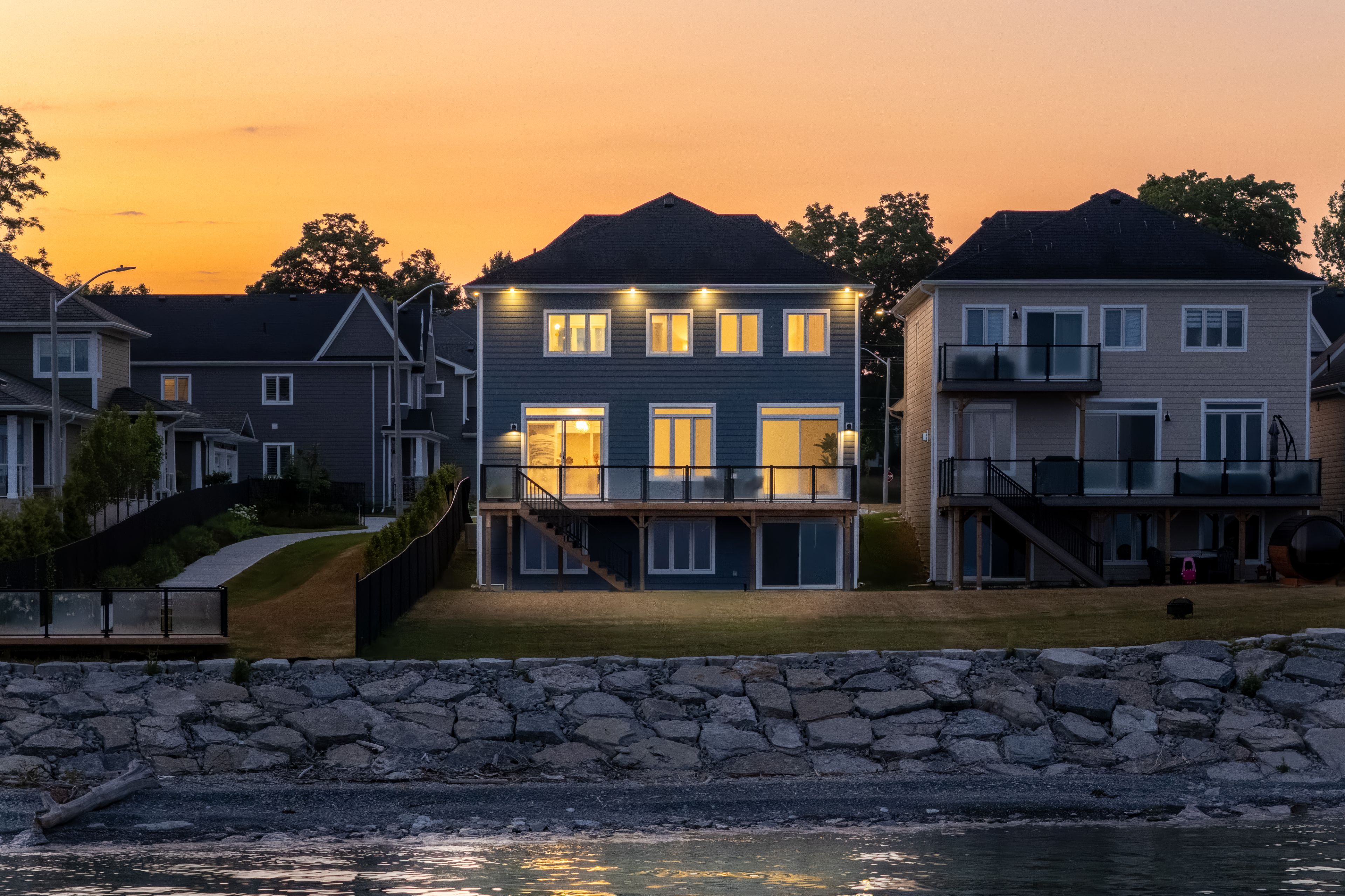• Spacious contemporary waterfront home with modern finishes and high ceilings.