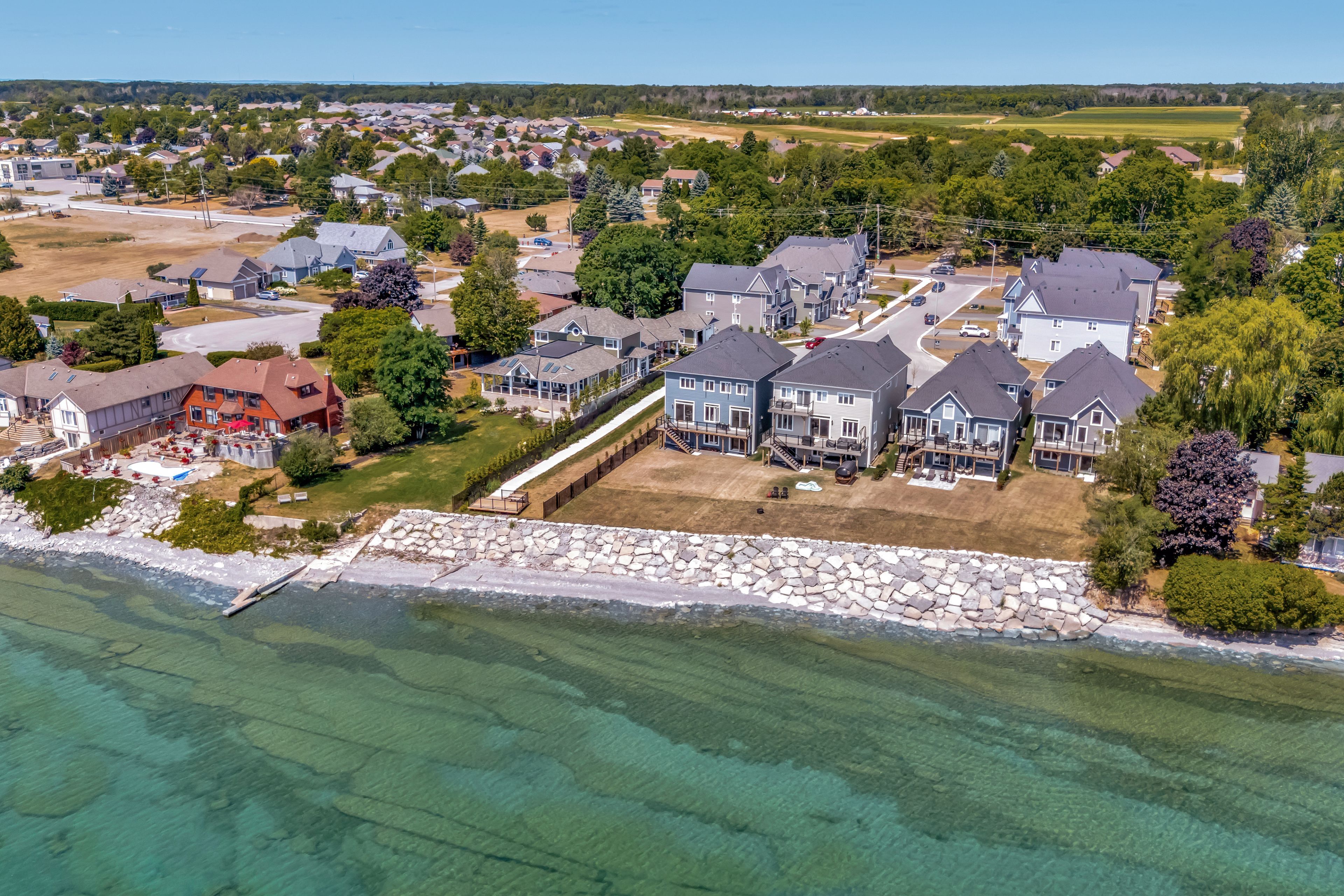Welcome to this beautiful piece of paradise on the water. Perfect location in the heart of wellington with city services. Spectacular expansive views of lake ontario and the popular sandbanks dunes. Offering contemporary hampton- style waterfront home. Newly constructed, currently under tarion warranty, 3260 sqft. 10-foot ceilings on main, 9-foot ceilings on the upper level, and 8-foot interior doors. Shaker kitchen, soft closed drawers, undercounter lights, grand sized centre island with quartz counters, butlers pantry with wet bar and walk in pantry for ample storage. Lovely 8-inch white oak engineered flooring throughout. Upgrades include staircase, tall baseboards and trim, interior and exterior pot lights and a cozy gas fireplace. The home features 4 generous sized bedrooms all with access to private or semiprivate ensuite. The master bath is not to be overlooked, featuring double vanity, walk in shower and a stunning bateau style freestanding tub. Bathrooms all come equipped with moen and toto plumbing fixtures and large counter to ceiling mirrors. The unfinished walkout basement leaves room for your imagination. Large windows flooding the home with natural light. 200 amp service and more. With this prime location you will have easy access to all the charm wellington has to offer. Including wineries, breweries, eateries, a 9-hole golf course, shops, the popular millennium trail, and of course wellington beach! Prince edward county is waiting for you to call home.
