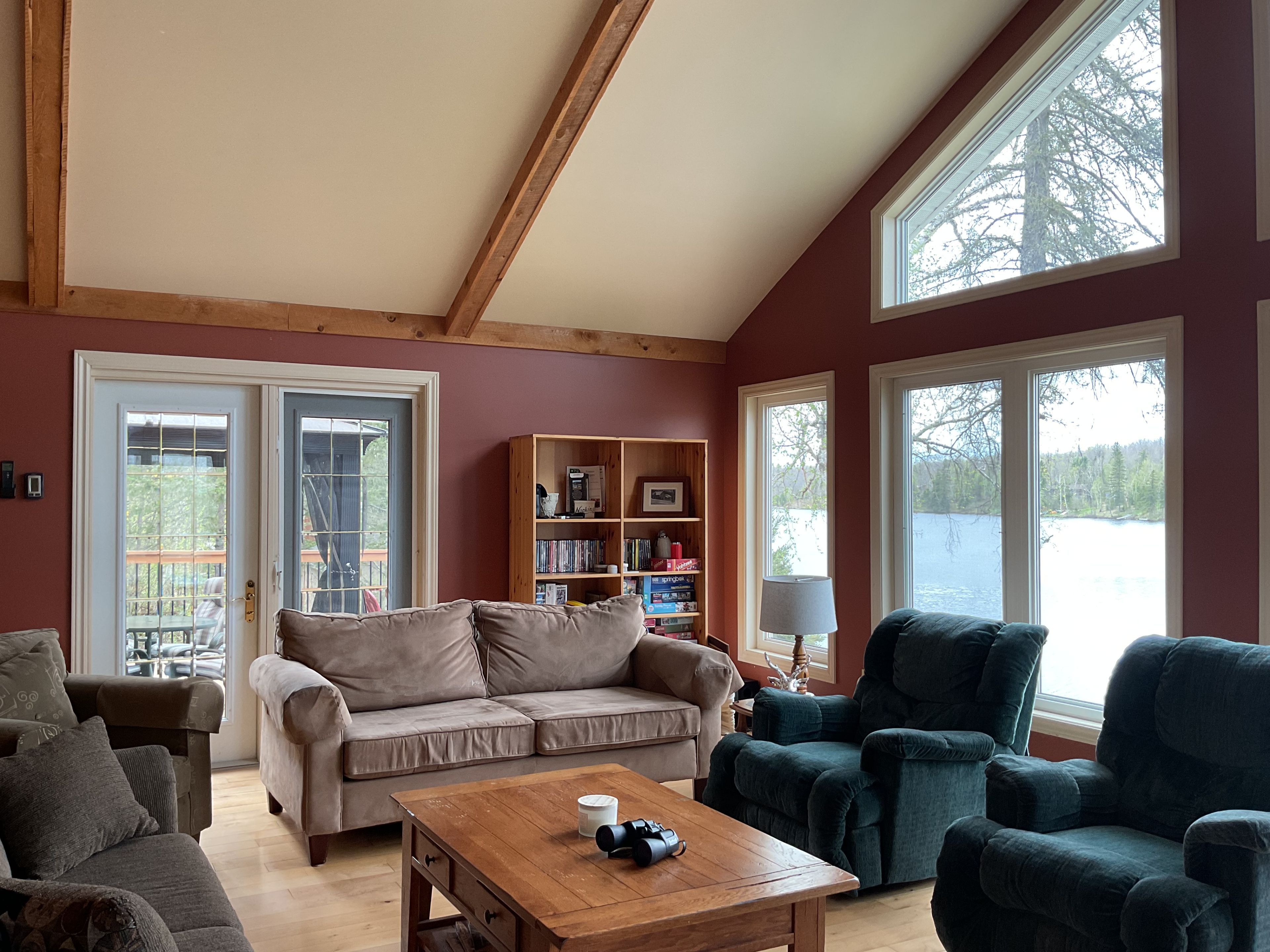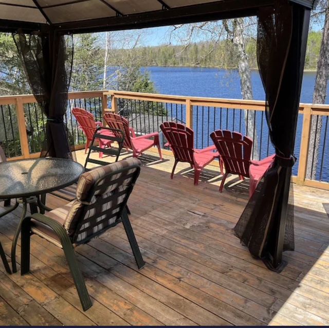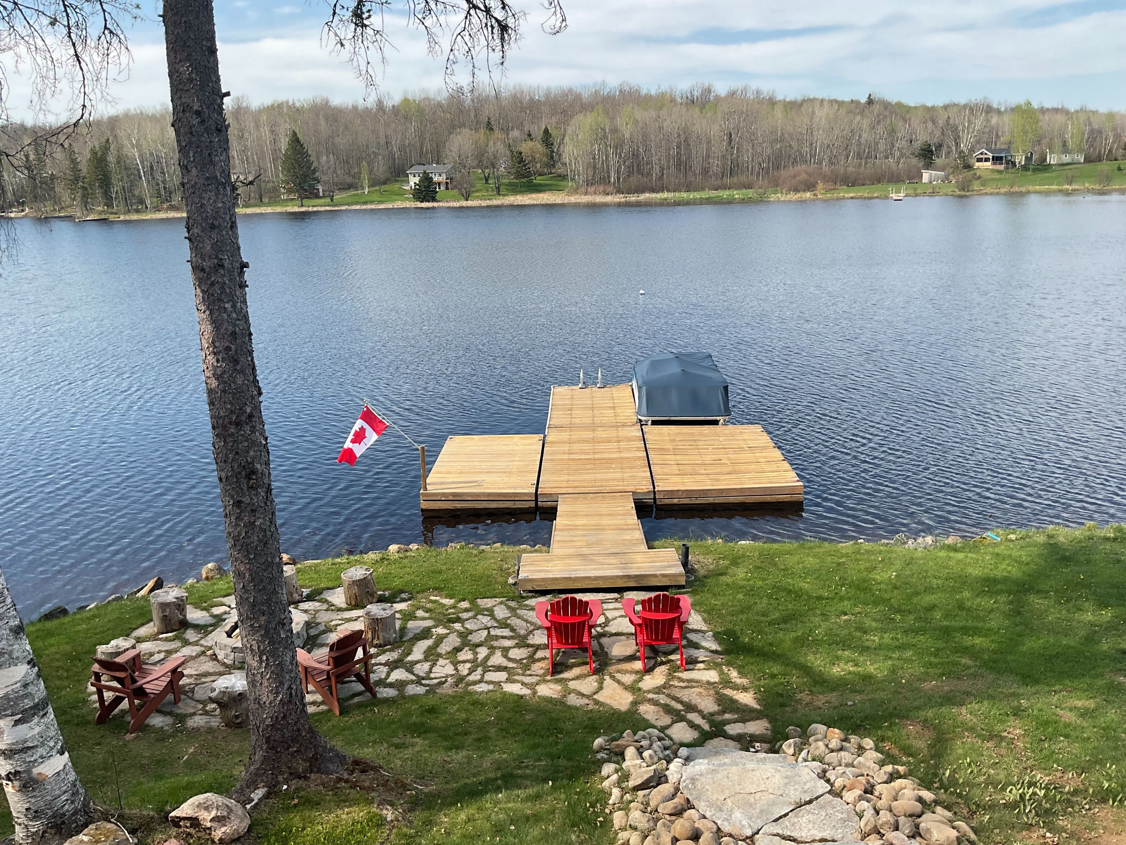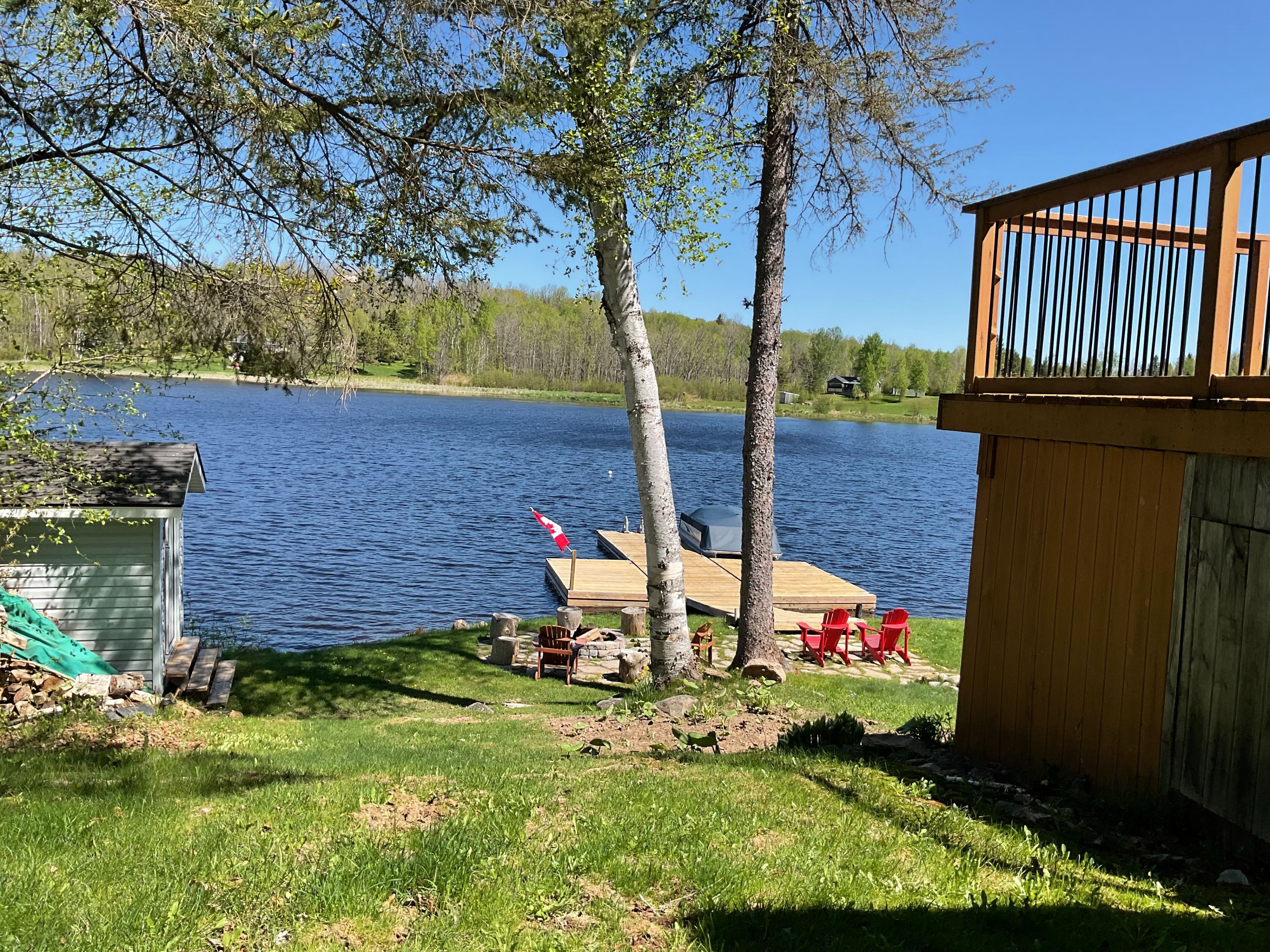 Welcome to your dream getaway on the shores of beautiful jacks lake! Nestled on over 3 acres in an unorganized township, this waterfront home is ready for your enjoyment. Step inside to a bright, open-concept layout featuring a spacious kitchen with a large island, ideal for cooking and entertaining. The living room boasts cathedral ceilings and stunning lake views, with french doors that open onto a large deck with a gazebo perfect for grilling or hosting guests. Just off the kitchen, another deck leads to a sunk-in hot tub- an inviting space for relaxing under the open sky. The lower-level walk-out is currently used as the main bedroom. This suite includes a convenient 2-piece bath and patio doors leading to a private deck. It's an excellent retreat for parents or guests, offering immediate access to the outdoors, whether for a night swim or sipping your morning coffee. An oversized garage offers plenty of space for storage or hobbies, and above it you'll find additional living space with a bedroom, a 3-piece bathroom, kitchen, and sitting area ideal for guests, rental income, or extended family. Other features include a covered boat storage structure, a wood shed with hydro, a large dock, a lakeside fire pit and storage shed for quick access to your favorite water toys. Some furniture and furnishings are included. Whether you're looking for a peaceful family cottage, a rental opportunity, or a full-time residence, this move-in ready gem offers it all.