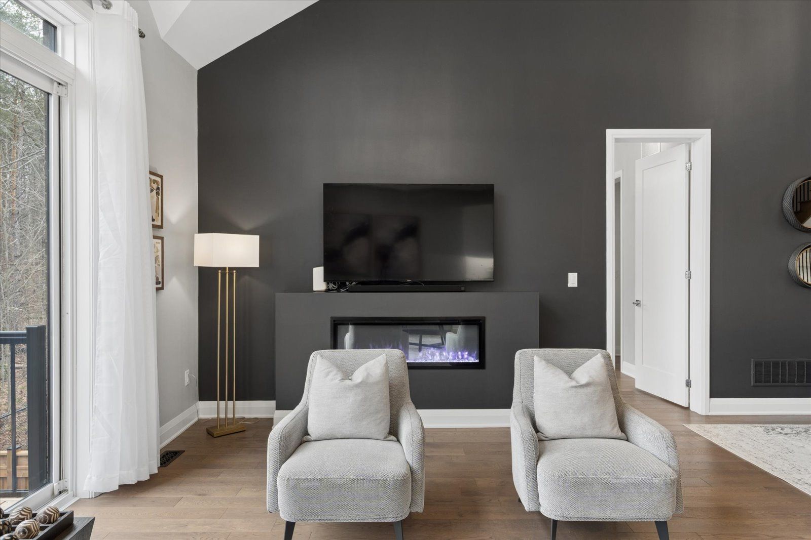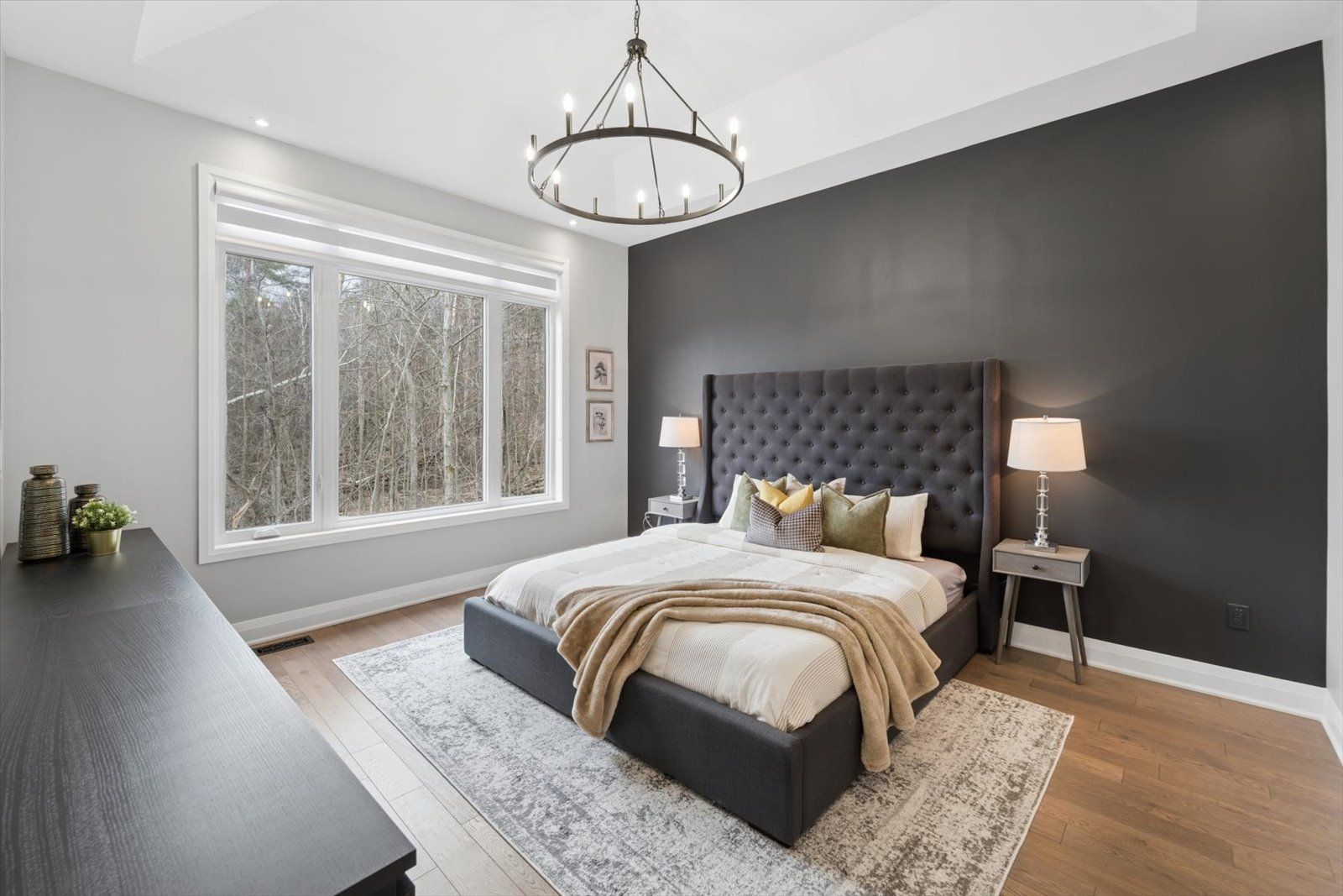 Experience the epitome of modern living in this exquisite 4-bedroom, 4-bathroom home, designed with an open-concept layout and impressive high ceilings that create a bright and airy ambiance. The gourmet kitchen, featuring luxurious quartz countertops, flows effortlessly to a walkout balcony, perfect for entertaining guests. The main-level master suite, with its stunning hardwood floors, offers both comfort and sophistication, while the walkout basement leads to a serene ravine lot, enhancing the home's natural beauty. Complete with a 2-car garage and situated in a desirable uxbridge location, this nearly new residence is adorned with elegant light fixtures and fresh paint, making it a true sanctuary for contemporary living.
