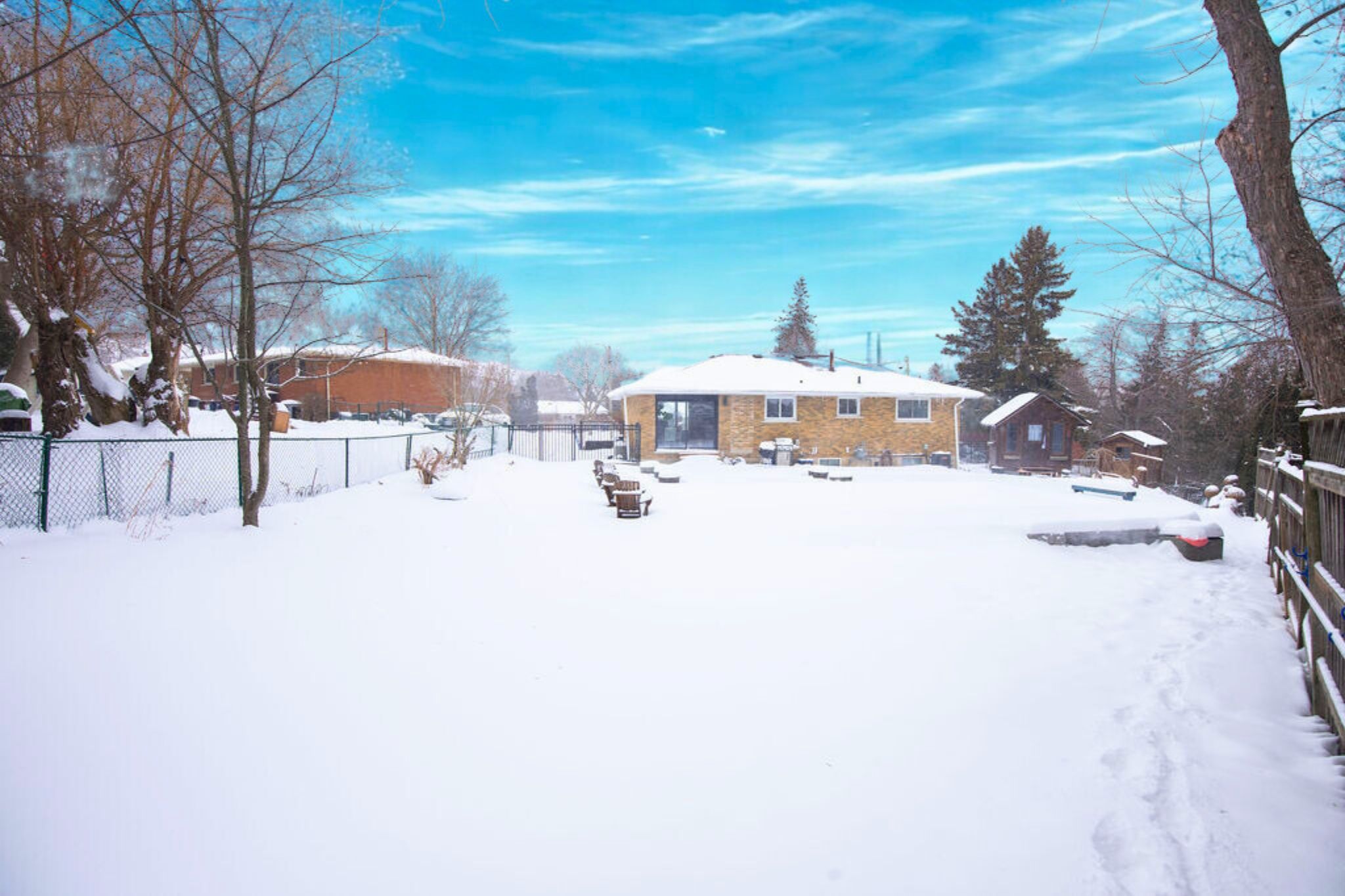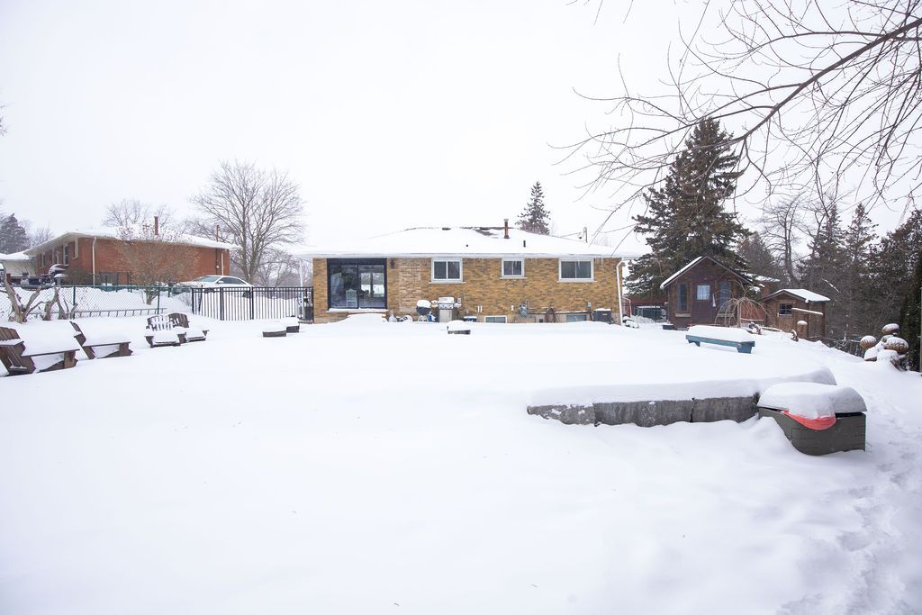 Welcome to 19 wallace place, this 3+1 bedroom home sits on a quiet court and has been extensively renovated to combine style, comfort, and functionality. The interior features bright, open-concept living with vaulted ceilings, updated vinyl flooring, and a custom kitchen with 2022 appliances. Large patio doors lead to a fully fenced and private backyard with a saltwater inground pool. The lower level includes a spacious recreation room, fourth bedroom, bathroom, and mudroom/laundry area with a separate entrance and a garage door featuring a built-in pedestrian door, offering potential for an in-law suite. Additional structures on the property include a bunkie and a shed, which could be converted for additional use. The property features strong curb appeal, ample parking, and a convenient location close to parks, schools, shopping, and the grand river.