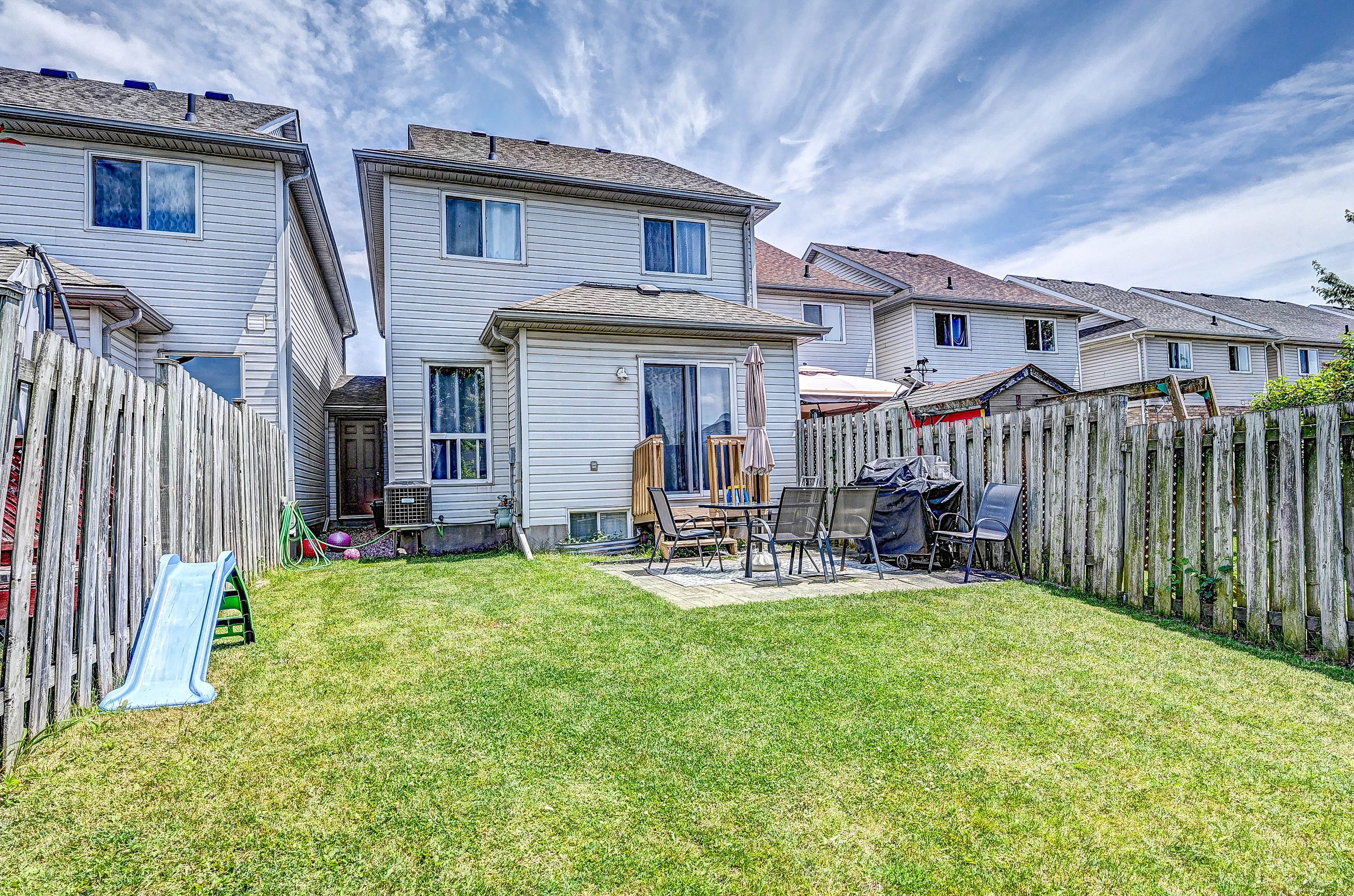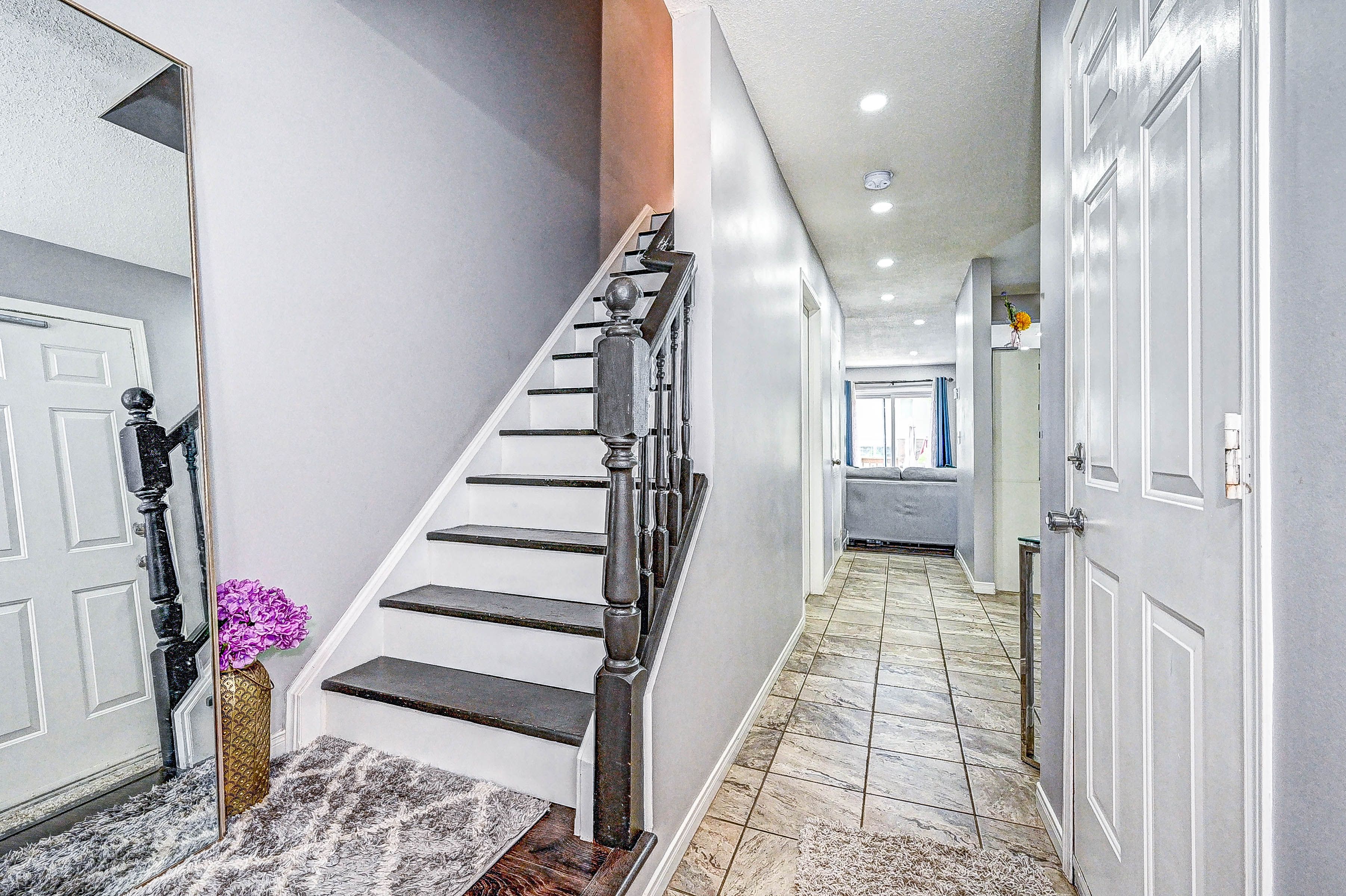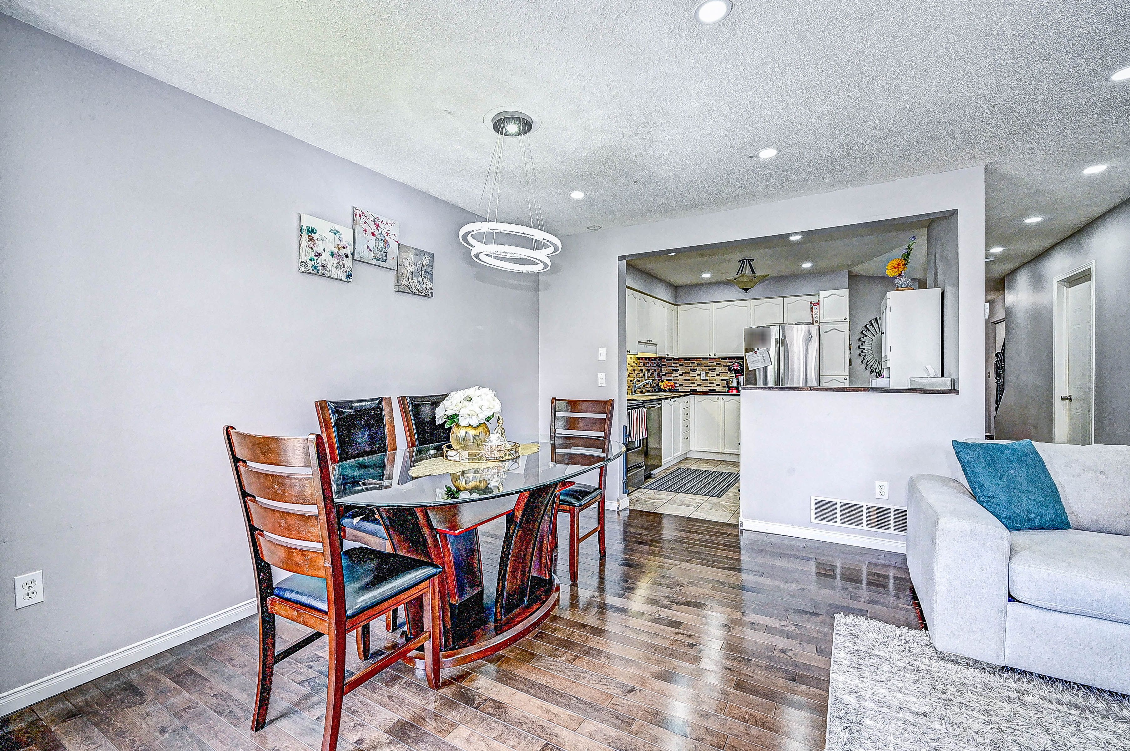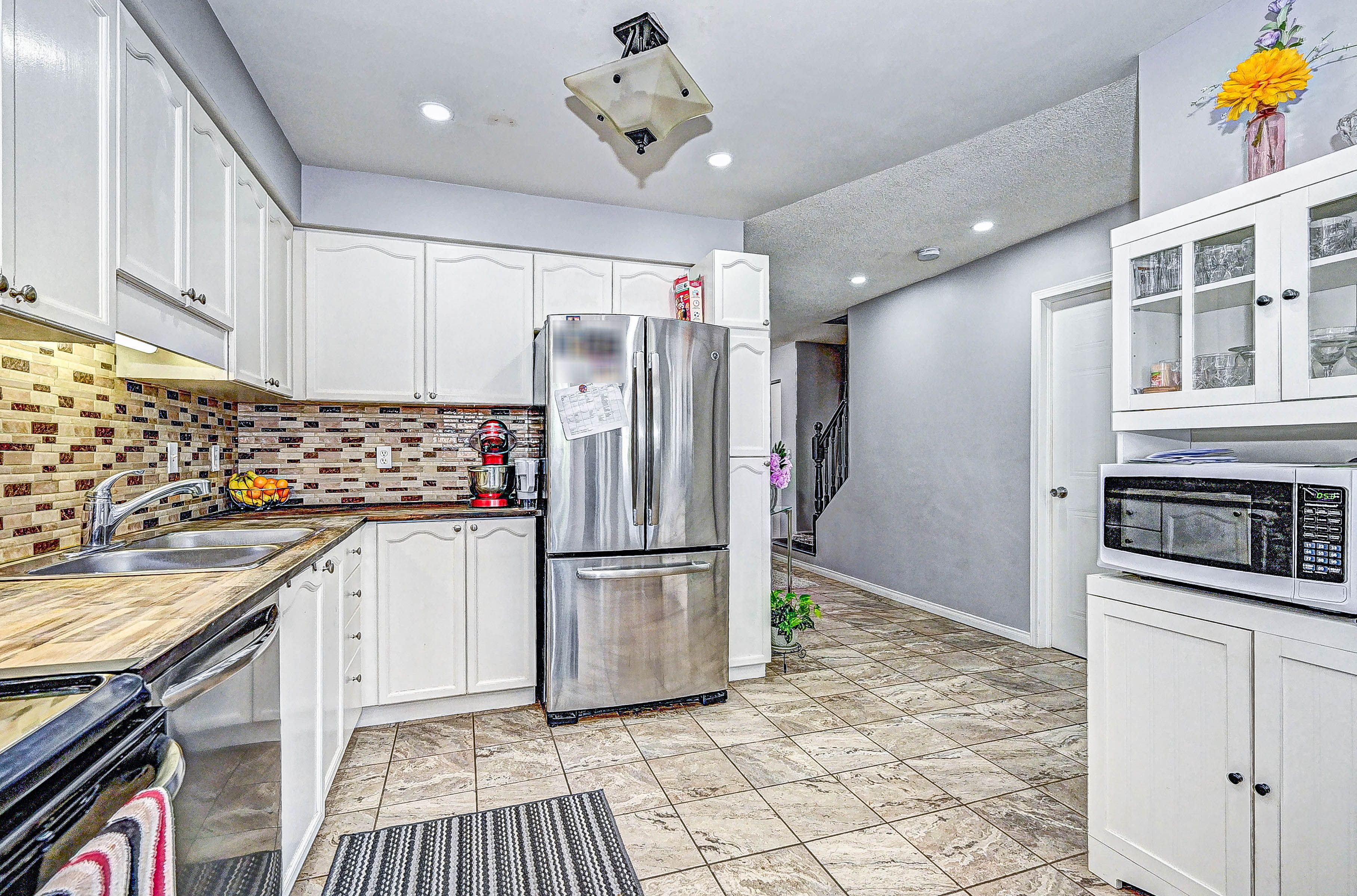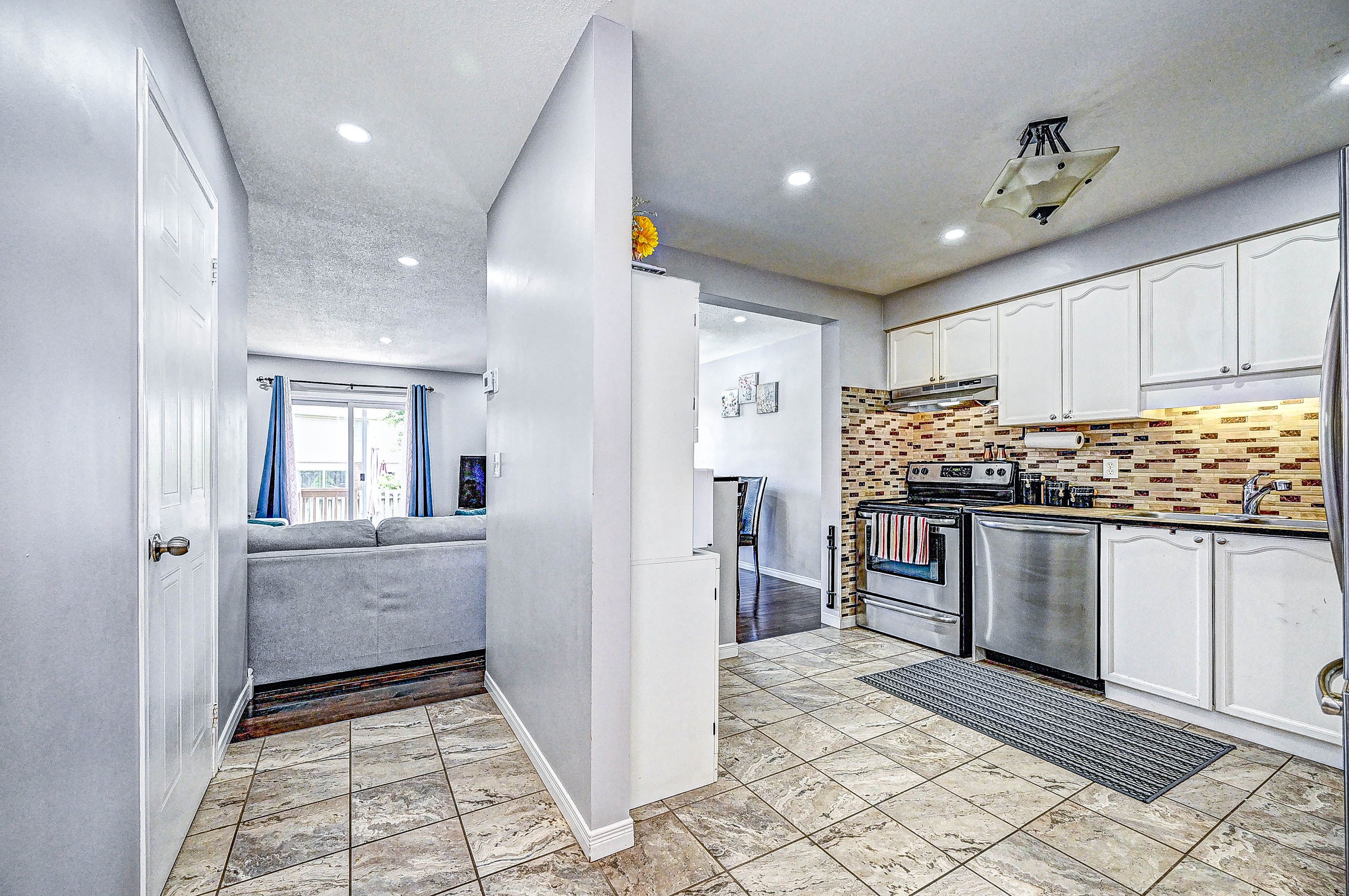 This move-in ready 3-bedroom freehold townhouse is situated in a highly sought-after neighborhood, offering both comfort and convenience for todays modern lifestyle. From the moment you step inside, you'll appreciate the home's well-maintained condition, featuring updated vinyl flooring throughout the second floor and basement. The spacious primary bedroom comes complete with his-and-hers closets, providing ample storage space and a cozy retreat for relaxation. The open-concept main floor boasts a blend of hardwood and ceramic flooring, offering a stylish and functional layout perfect for family living and entertaining. The modern kitchen is a standout, with updated countertops, sinks, faucets, and stainless steel appliances, ensuring a sleek and efficient cooking experience. Enjoy meals in the adjoining dining area or relax in the bright living space, where natural light pours in through large windows. Step outside into the fully fenced backyard, a perfect oasis for enjoying the outdoors in complete privacy. The convenient garage offers access both to the interior of the home and directly to the yard, making it easy to bring in groceries or gardening supplies. The driveway comfortably fits two smaller vehicles, offering plenty of parking options for residents and guests alike. This home has been thoughtfully maintained and is ready for you to move in and make it your own. With its ideal location close to schools, parks, shopping, and commuter routes, this townhouse offers the perfect combination of convenience and comfort. Don't miss the opportunity to make this your new home.