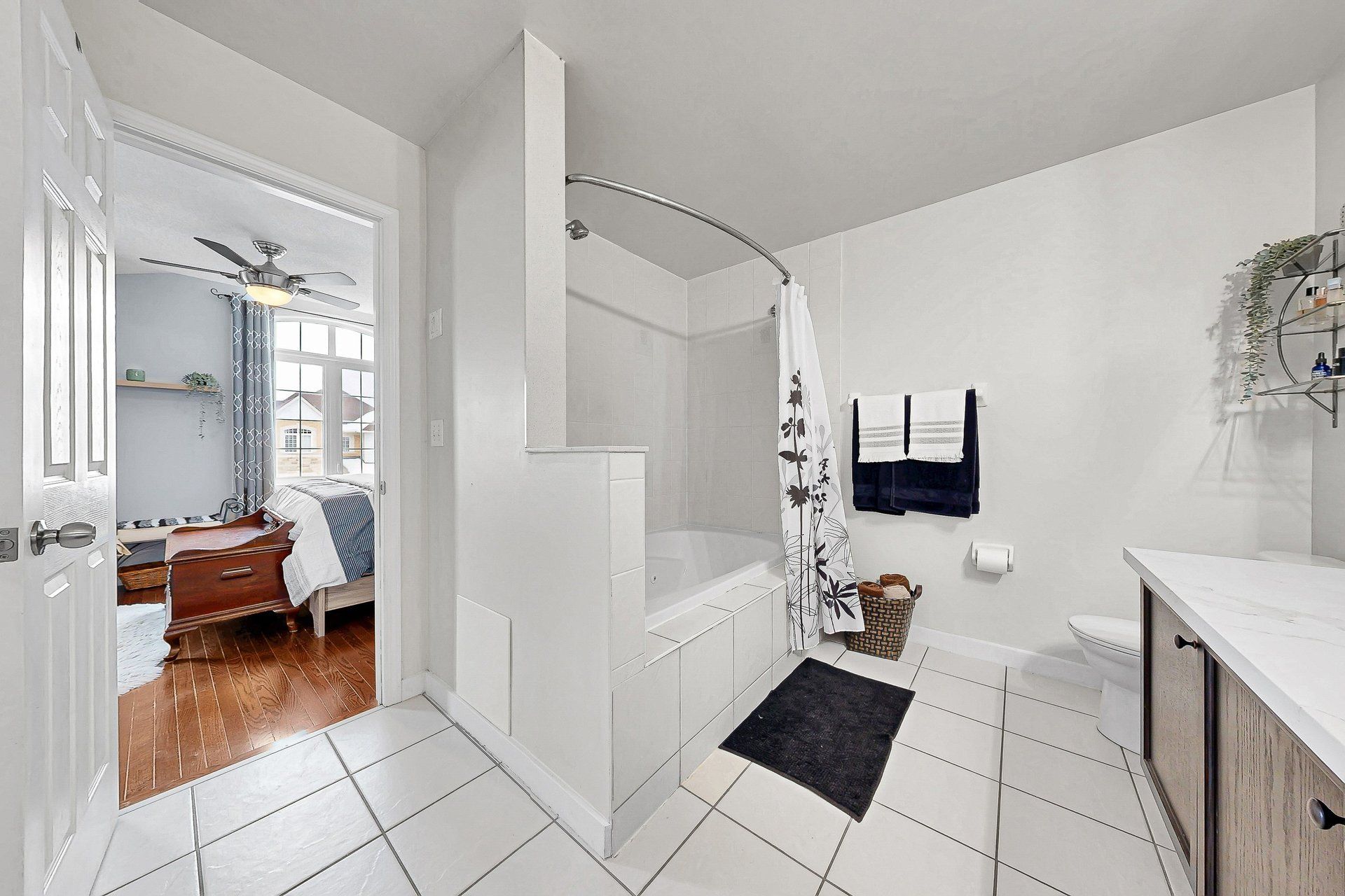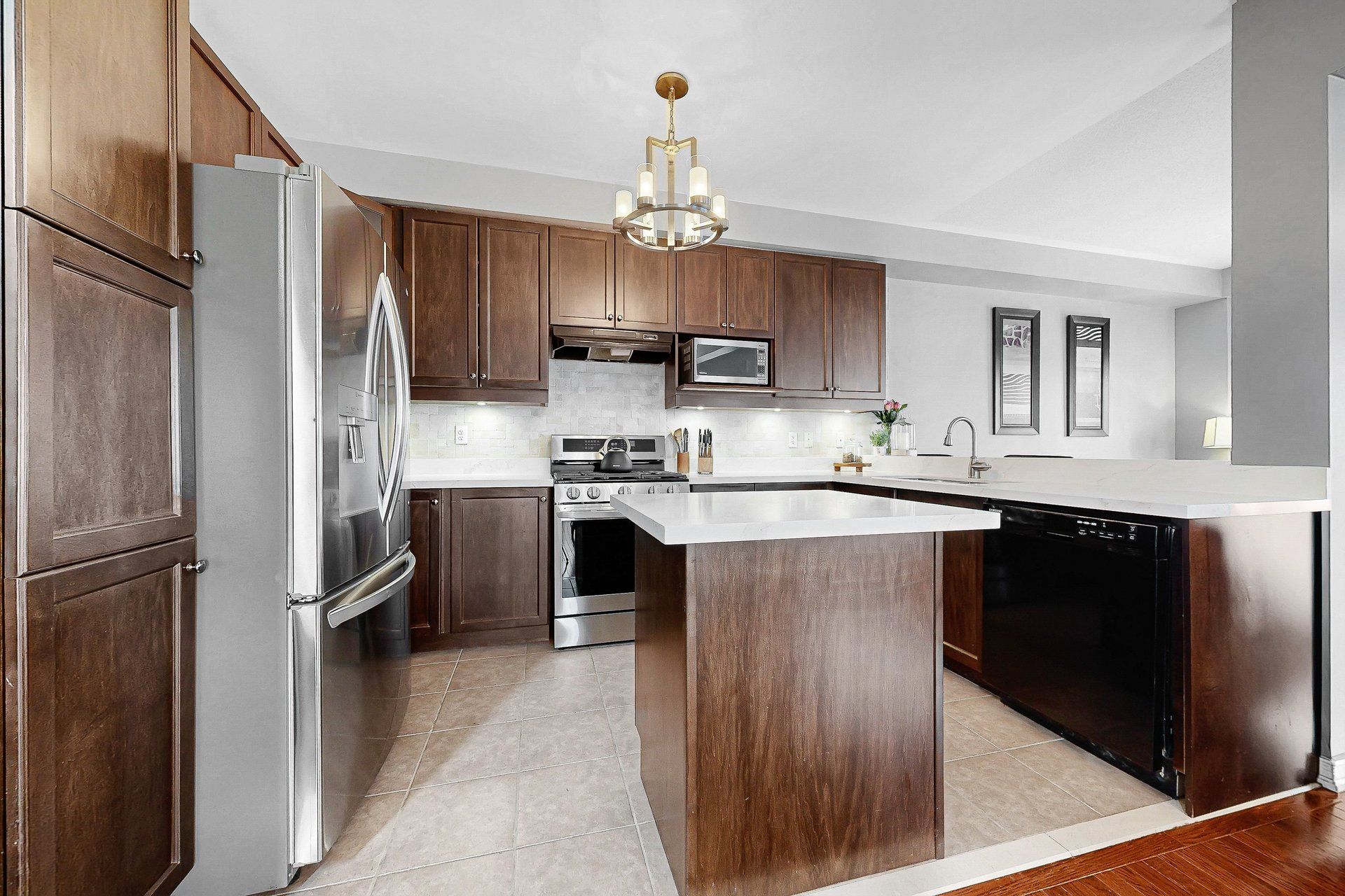 Start packing, because 19 waterlily trail in schomberg is ready for you. This 16-year-young end-unit townhome offers 3 bedrooms, 4 bathrooms, and a versatile upper-level bonus room - perfect for a home office, nursery, or extra living space. Step inside through the new front door (2024) to an open-concept main level. The updated kitchen (2022/2024) boasts quartz countertops, an island, backsplash, and hardwood and tile floors, flowing seamlessly to the dining and living areas. The living room features hardwood floors, a gas fireplace, and a walkout to the backyard. A powder room and direct garage access complete the main floor. Upstairs, the primary suite shines with a walk-in closet and ensuite with quartz counters, a separate tub and shower, and ample vanity space. Two additional bedrooms, a 4-piece bathroom (also with quartz counters), and upper-level laundry complete the floor. The newly finished basement (2024) is bright and open with above-grade windows and waterproof luxury vinyl flooring, ideal for a rec room, gym, or media area. Outside, the wrap-around porch and deck make entertaining effortless. A widened interlock driveway, exterior pot lights, and an insulated garage door adds style and function. Thoughtfully upgraded, move-in ready, and designed for modern living - this home truly has it all.
