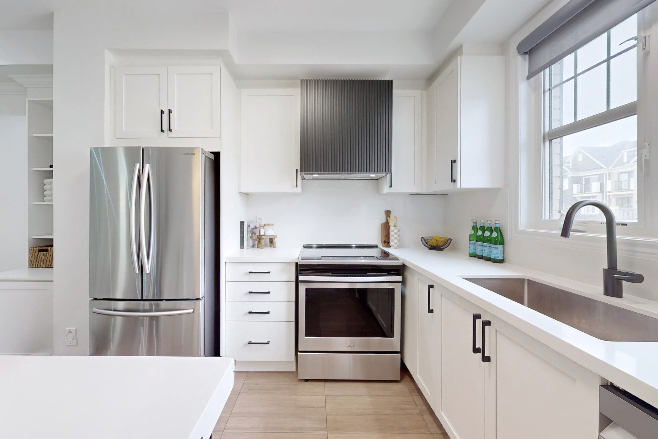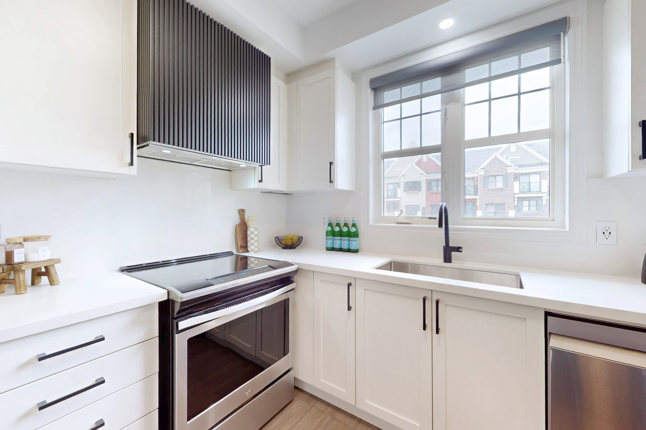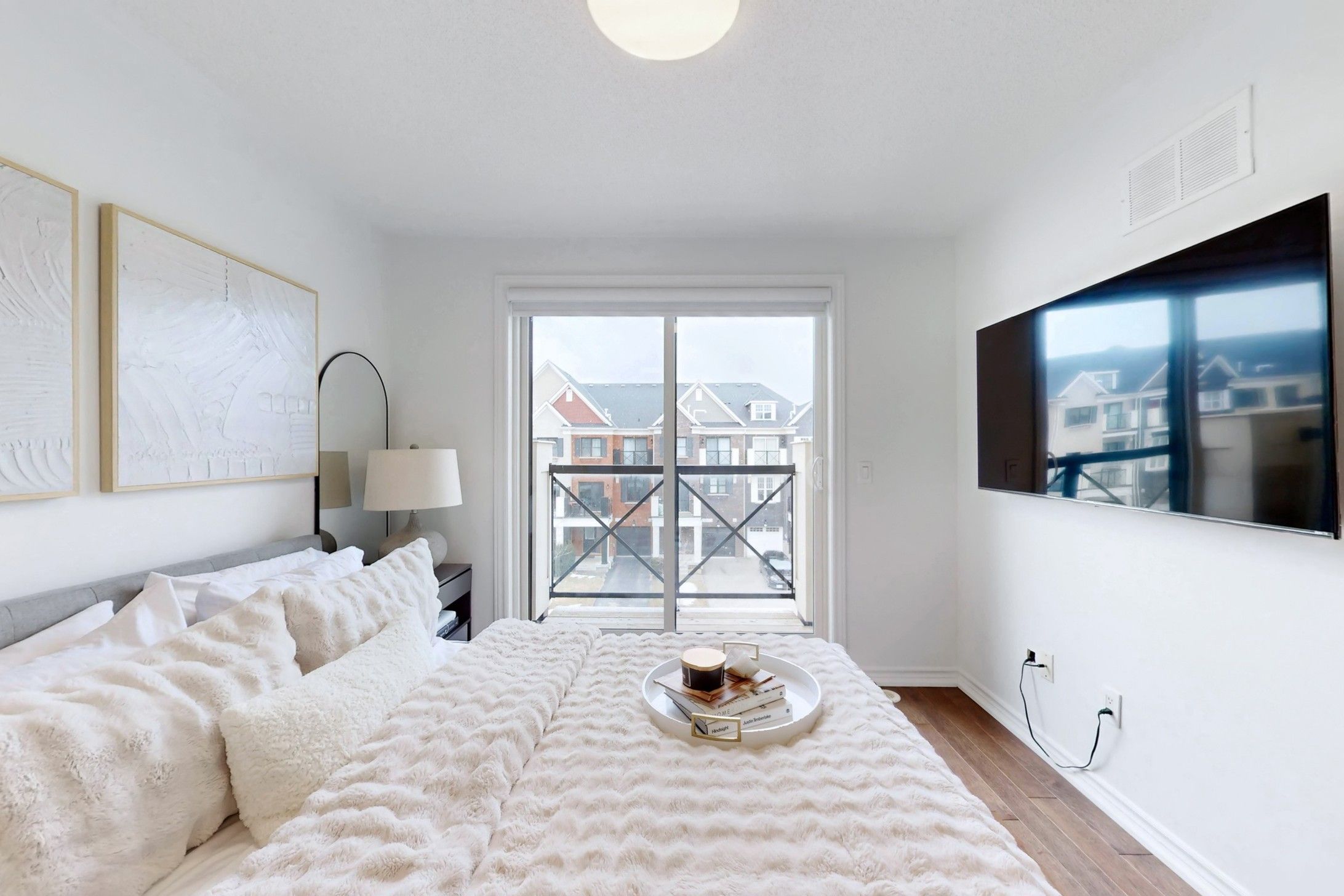 Welcome to 19 wimshaw lane. This beautifully upgraded 2-bedroom, 2-bathroom minto freehold townhouse offers approximately 1,292 sq. Ft. Of thoughtfully designed, move-in-ready livingspace in the heart of stouffville. The home features extensive upgrades throughout, beginning in the stunning kitchen. Enjoy a newly updated fluted range hood & matching island detail,quartz countertops w/ a seamless matching backsplash, upgraded s/s appliances including a sleekslide-in stove, added cabinetry w/ b/i microwave, upgraded tile flooring & stylish pendant lighting. The inviting living room is the perfect place to unwind, showcasing a flushwall-mounted electric fireplace ('25)& __"flush tv insert('25) surrounded by elegant built-inshelving for added storage. The dining area comfortably accommodates a six-person table, alongwith additional seating at the kitchen island-ideal for entertaining family andfriends. Upgraded hardwood flooring flows throughout the second and third floors, as well as thestaircase. Both upper-level bathrooms feature upgraded cabinetry, quartz countertops, modern mirrors, lighting, & upgraded fixtures. The primary bedroom offers dual custom closetsw/built-in shelving & a charming juliette balcony that fills the room w/natural light. The 2nd bedroom features a large window & custom closet organizers. Elegant wainscoting accents thefoyer & second bedroom, adding timeless character. Additional highlights include a newly installed a/c unit ('24) relocated to the side of the home (freeing up valuable balconyspace). Ample storage is available in the crawl space and garage, which also features built-instorage solutions. The exterior boasts beautiful curb appeal w/modern interlock landscaping (2025) & parking for 2 vehicles in the driveway. Located close to the go station,shops, restaurants, parks,& more-this exceptional home truly has it all. Don't miss your opportunity to own this stylish, turnkey property w/all the extra touches you've been looking for.