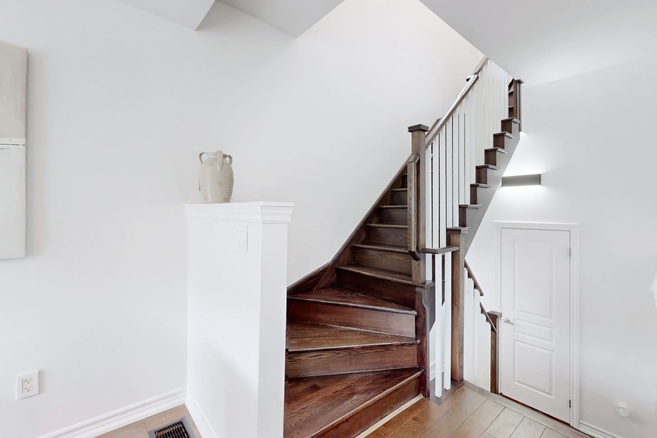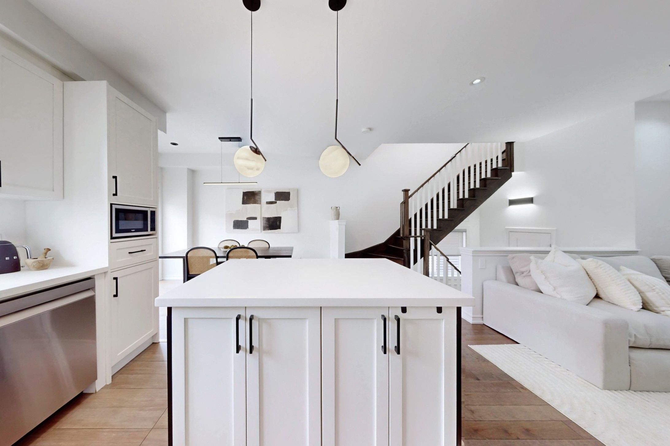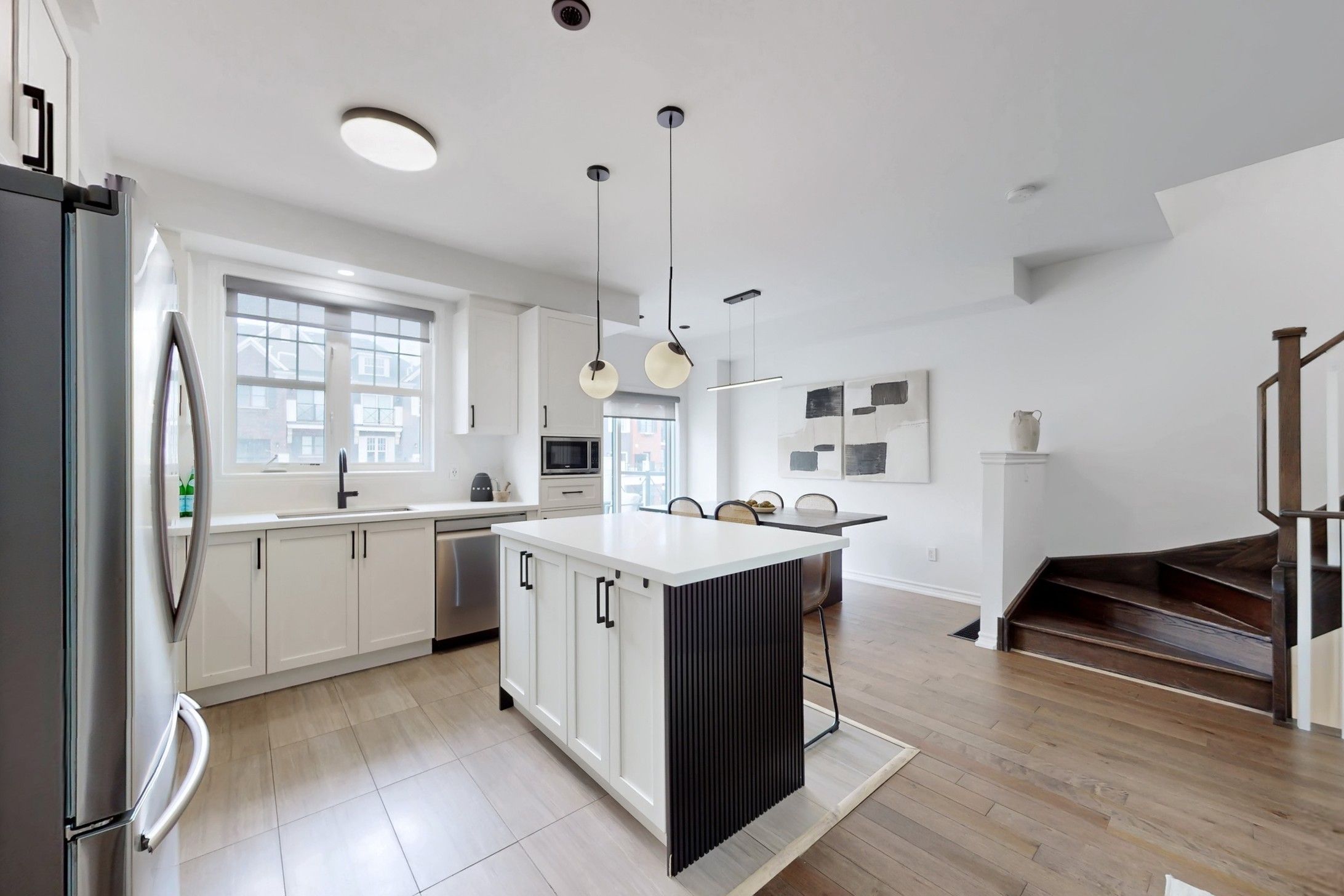 Welcome to 19 wimshaw lane. This beautifully upgraded 2-bedroom, 2-bathroom minto freehold townhouse offers approximately 1,292 sq. Ft. Of thoughtfully designed, move-in-ready livingspace in the heart of stouffville. The home features extensive upgrades throughout, beginning in the stunning kitchen. Enjoy a newly updated fluted range hood & matching island detail,quartz countertops w/ a seamless matching backsplash, upgraded s/s appliances including a sleekslide-in stove, added cabinetry w/ b/i microwave, upgraded tile flooring & stylish pendant lighting. The inviting living room is the perfect place to unwind, showcasing a flushwall-mounted electric fireplace ('25)& __"flush tv insert('25) surrounded by elegant built-inshelving for added storage. The dining area comfortably accommodates a six-person table, alongwith additional seating at the kitchen island-ideal for entertaining family andfriends. Upgraded hardwood flooring flows throughout the second and third floors, as well as thestaircase. Both upper-level bathrooms feature upgraded cabinetry, quartz countertops, modern mirrors, lighting, & upgraded fixtures. The primary bedroom offers dual custom closetsw/built-in shelving & a charming juliette balcony that fills the room w/natural light. The 2nd bedroom features a large window & custom closet organizers. Elegant wainscoting accents thefoyer & second bedroom, adding timeless character. Additional highlights include a newly installed a/c unit ('24) relocated to the side of the home (freeing up valuable balconyspace). Ample storage is available in the crawl space and garage, which also features built-instorage solutions. The exterior boasts beautiful curb appeal w/modern interlock landscaping (2025) & parking for 2 vehicles in the driveway. Located close to the go station,shops, restaurants, parks,& more-this exceptional home truly has it all. Don't miss your opportunity to own this stylish, turnkey property w/all the extra touches you've been looking for.