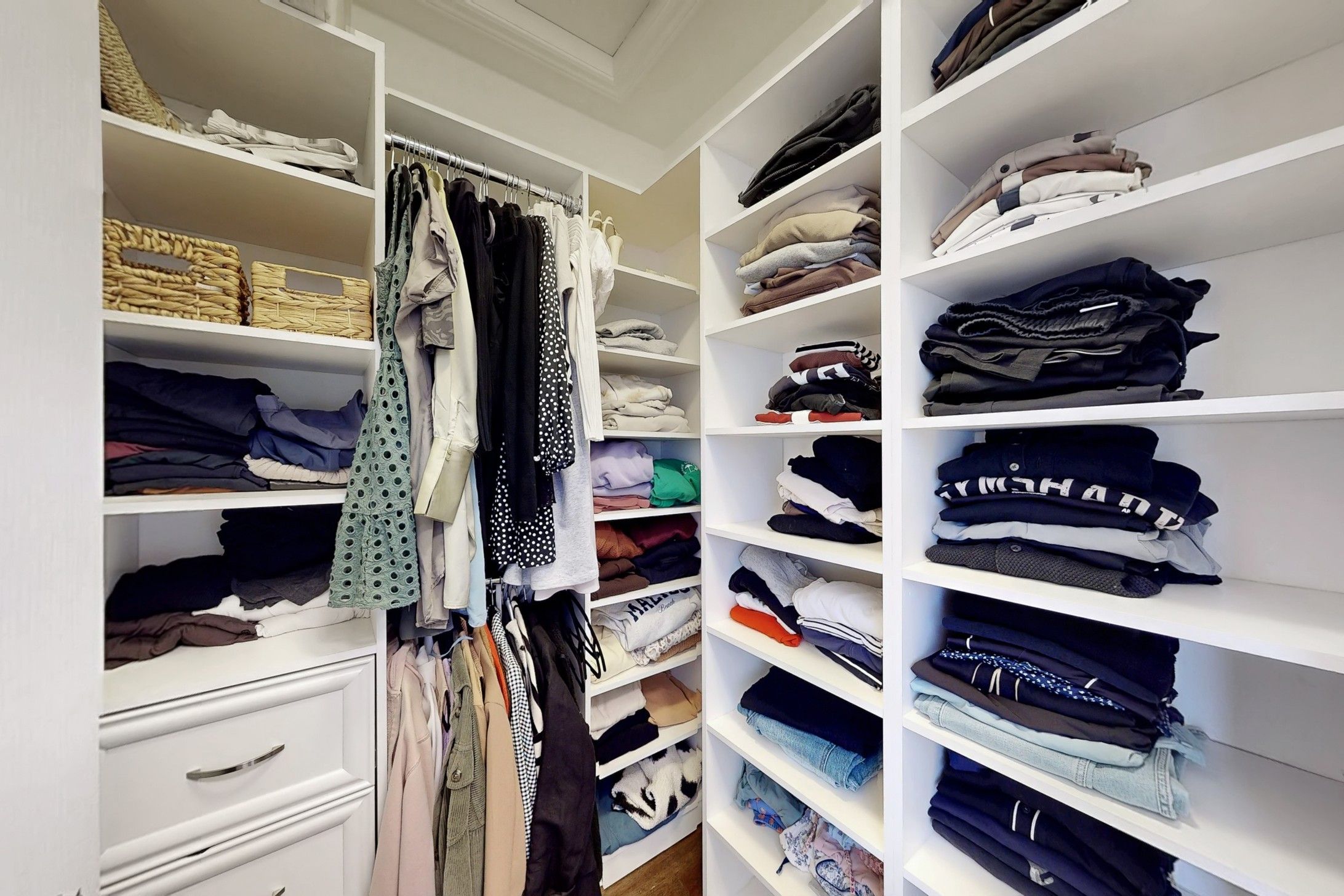 • Primary bedroom features dual closets and a Juliette balcony for natural light.