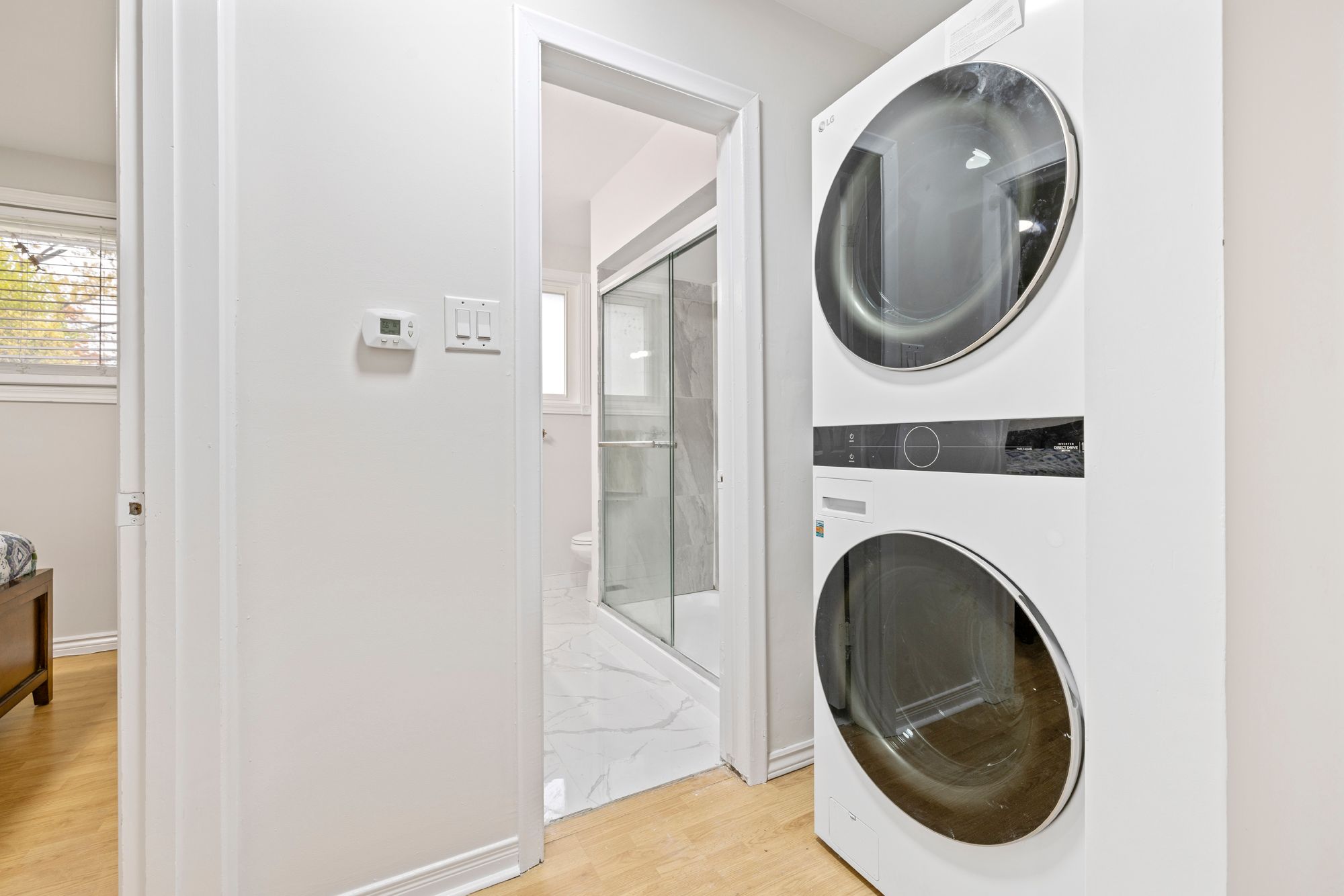 Stunning updated bungalow with legal in-law suite backing onto cherry heights park welcome to 19 winthrop place, a beautifully updated brick bungalow offering nearly 2,200 sq. Ft. Of finished living space, perfectly situated on a premium 54' x 125' lot with no rear neighbours. Nestled on a quiet, highly sought-after court in stoney creek, this home combines comfort, privacy, and versatility, ideal for multi-generational families or investors alike. The main level features a bright, spacious living room with rich hardwood floors, an updated eat-in kitchen with a walkout to the deck, and a fully fenced backyard that seamlessly blends indoor and outdoor living. You'll also find 3 generous bedrooms, a stylish updated bathroom, and the convenience of main-floor laundry. The lower level offers a fully finished, legal in-law suite with a separate side entrance!, perfect for extended family, guests, or rental income. This thoughtfully designed space includes 2 huge bedrooms, a large living room, a walk-through den, 2 updated 3-piece bathrooms, a modern kitchen with new appliances, fresh paint throughout, and in-suite laundry. Step outside to enjoy the private backyard oasis that backs directly onto cherry heights park, perfect for entertaining, relaxing, or letting the kids play. The extended shed (convertible back into a garage) provides plenty of storage or workshop potential. Located close to shopping, schools, transit, and quick highway access.