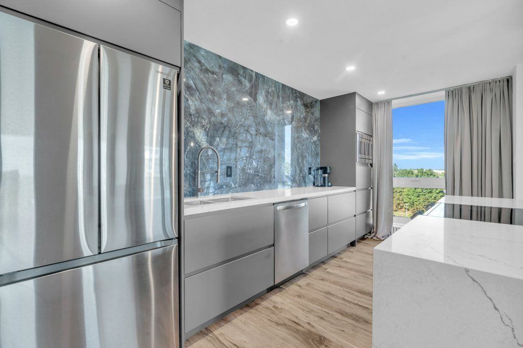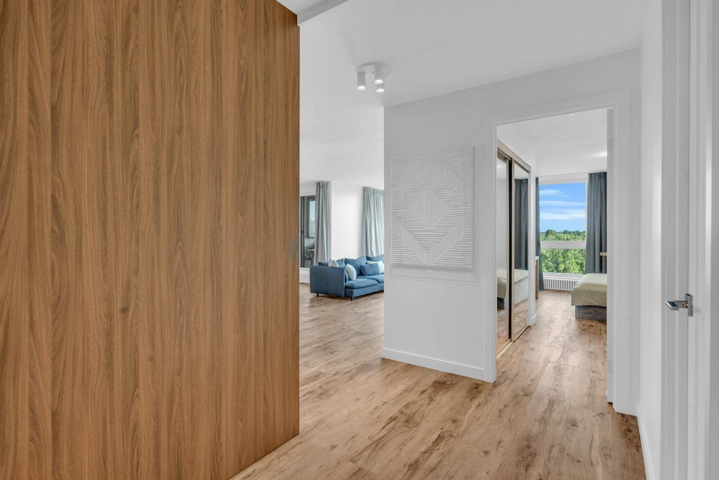 Modern living at 511-19 woodlawn rd e! This beautifully renovated 3-bedroom condo is perfectly situated overlooking riverside park, blending natural tranquility with the convenience of nearby amenities and transit routes. The building offers a fantastic community feel with on-site amenities like a tennis/pickle ball court and a sparkling pool, perfect for relaxation and recreation. Step into unit 511, where modern design meets exceptional quality. Renovated from top to bottom, this condo has been carefully crafted! You'll find sleek, consistent flooring throughout and custom modern radiator covers. The kitchen is a standout, featuring a waterfall island with ample seating and storage, a built-in bosch oven, and a sleek rising vent. The feature wall adds an eye-catching, contemporary touch. The primary bedroom offers stunning park views, a 2-piece ensuite, and a large closet. Two additional bedrooms make the unit ideal for families or those working from home. The laundry room includes a stackable washer/dryer, sink, and built-in storage. The main bathroom is designed with floor-to-ceiling tiles, a glass-enclosed shower/tub, heated towel rack, and storage. Enjoy a comfortable climate year-round with limited exposure to direct sun during the day, yet plenty of natural light in the mornings and evenings. The upgraded balcony with privacy screens and mesh keeps bugs out, offering a peaceful outdoor retreat. With heat, hydro, and water included in condo fees, budgeting is easy. This one-of-a-kind unit stands out, and the photos speak for themselves!