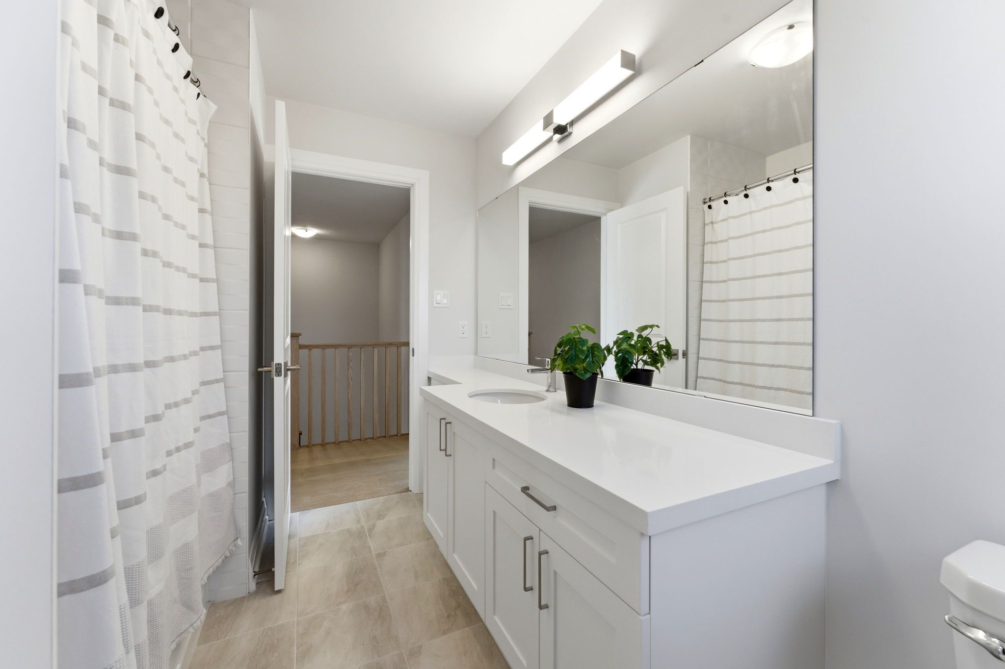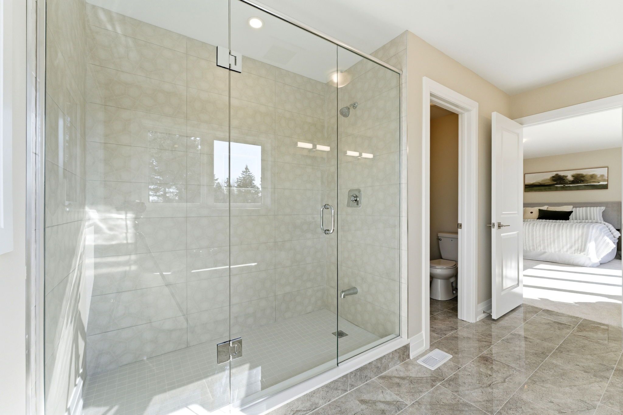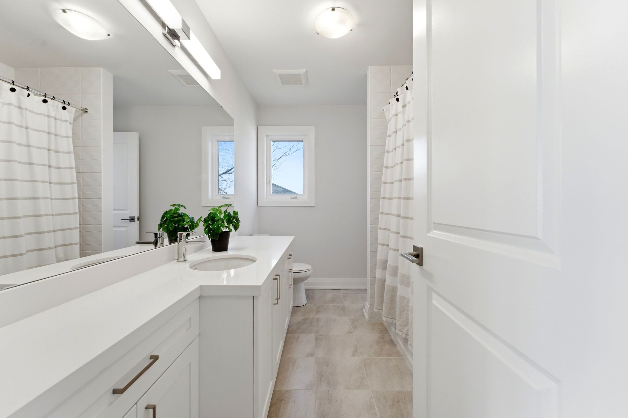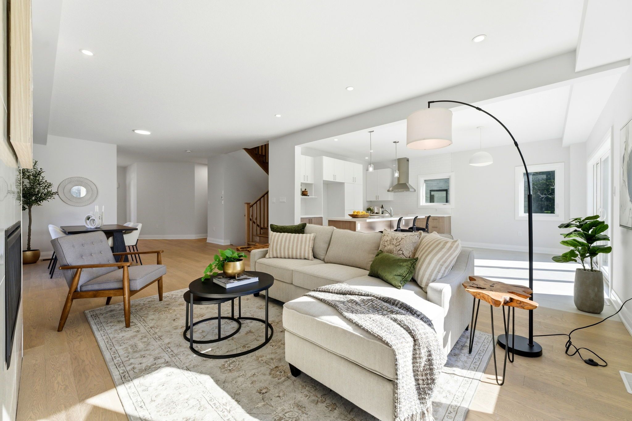 • Stylish kitchen features quartz countertops and a large center island.