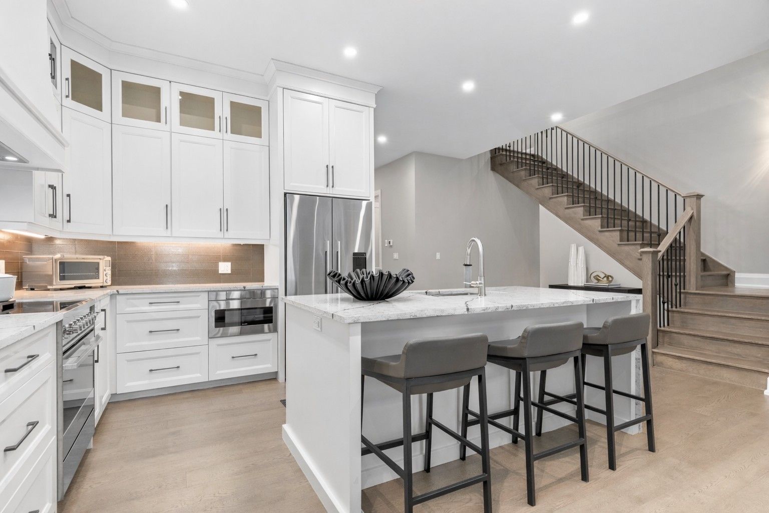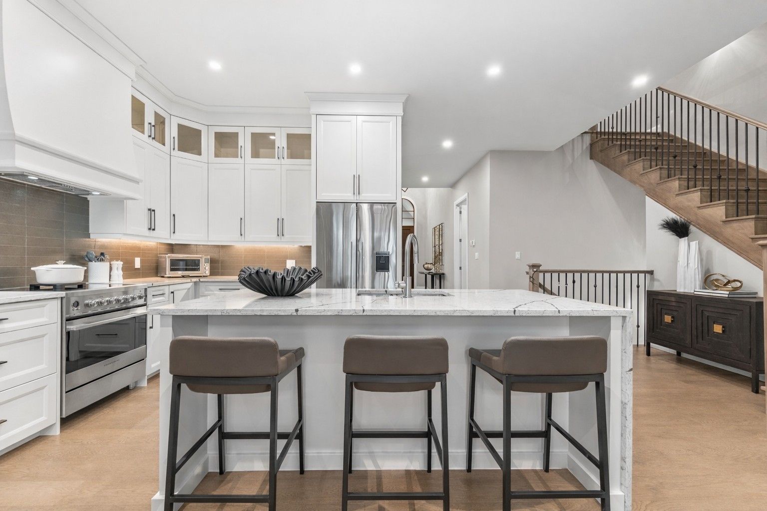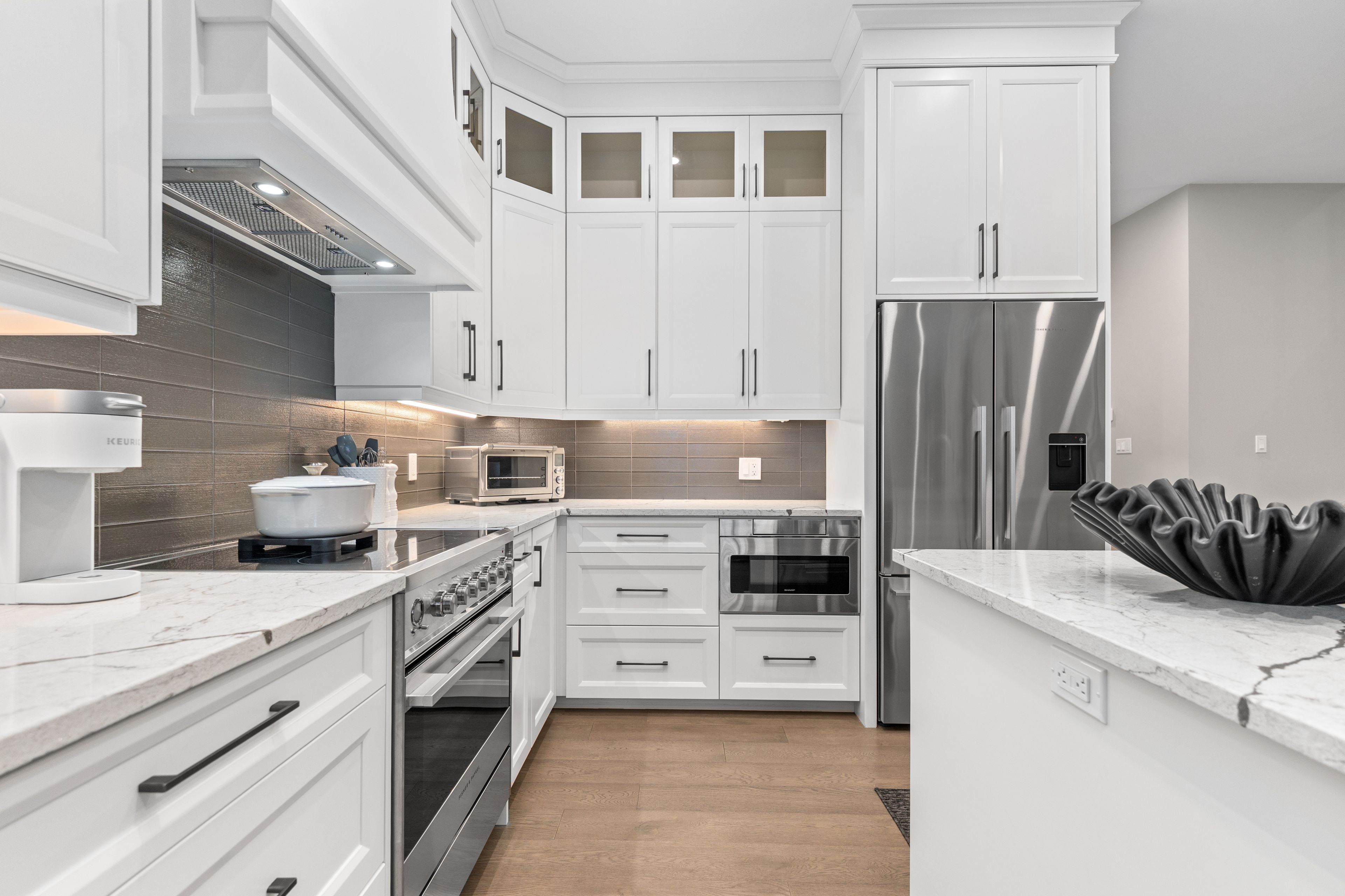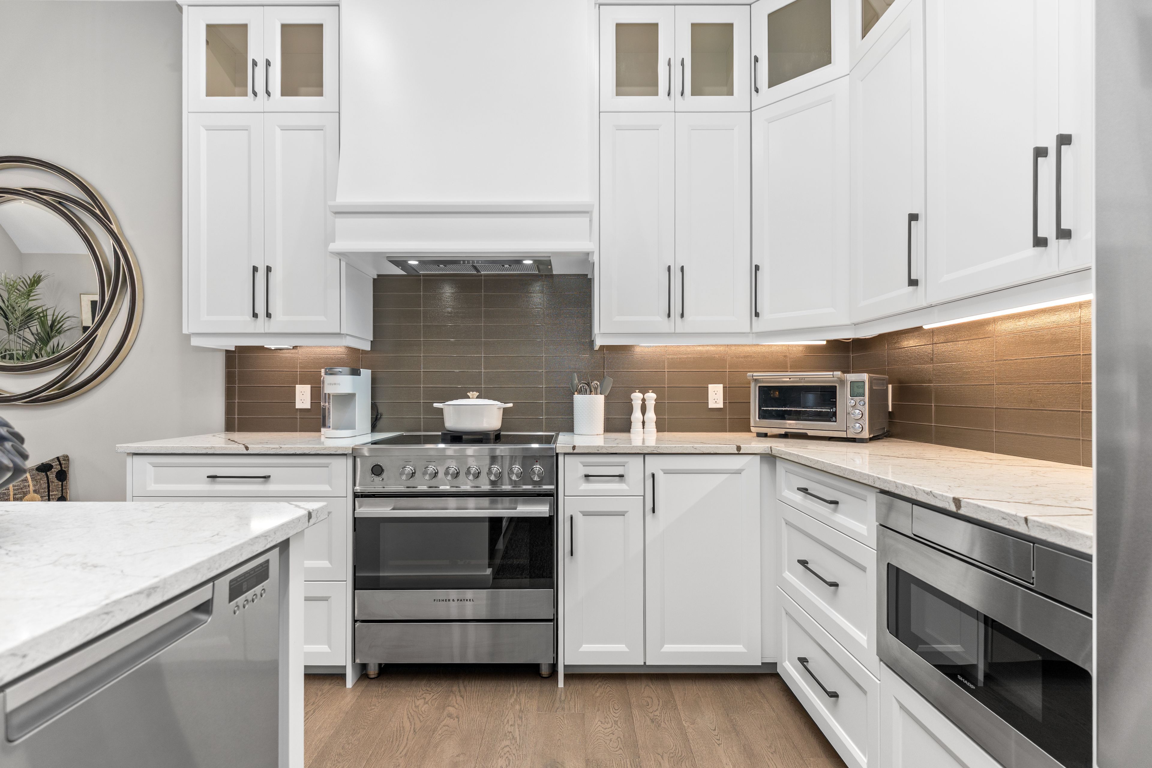 • Chef-inspired kitchen featuring high-end appliances and stunning quartz countertops.