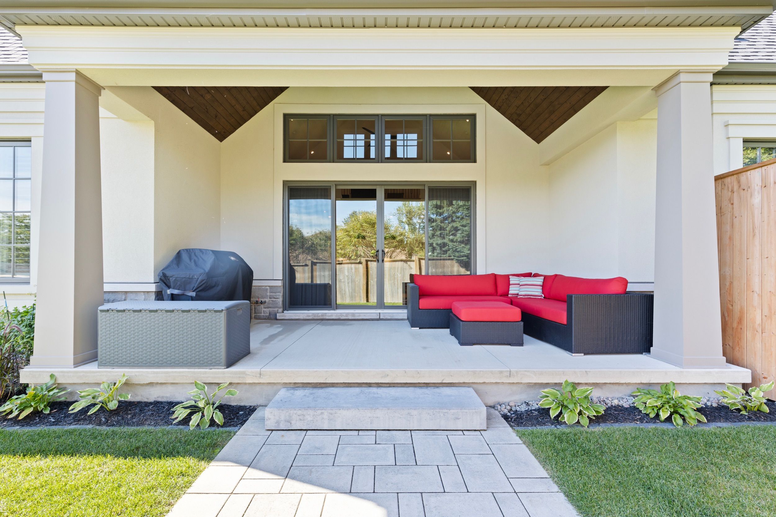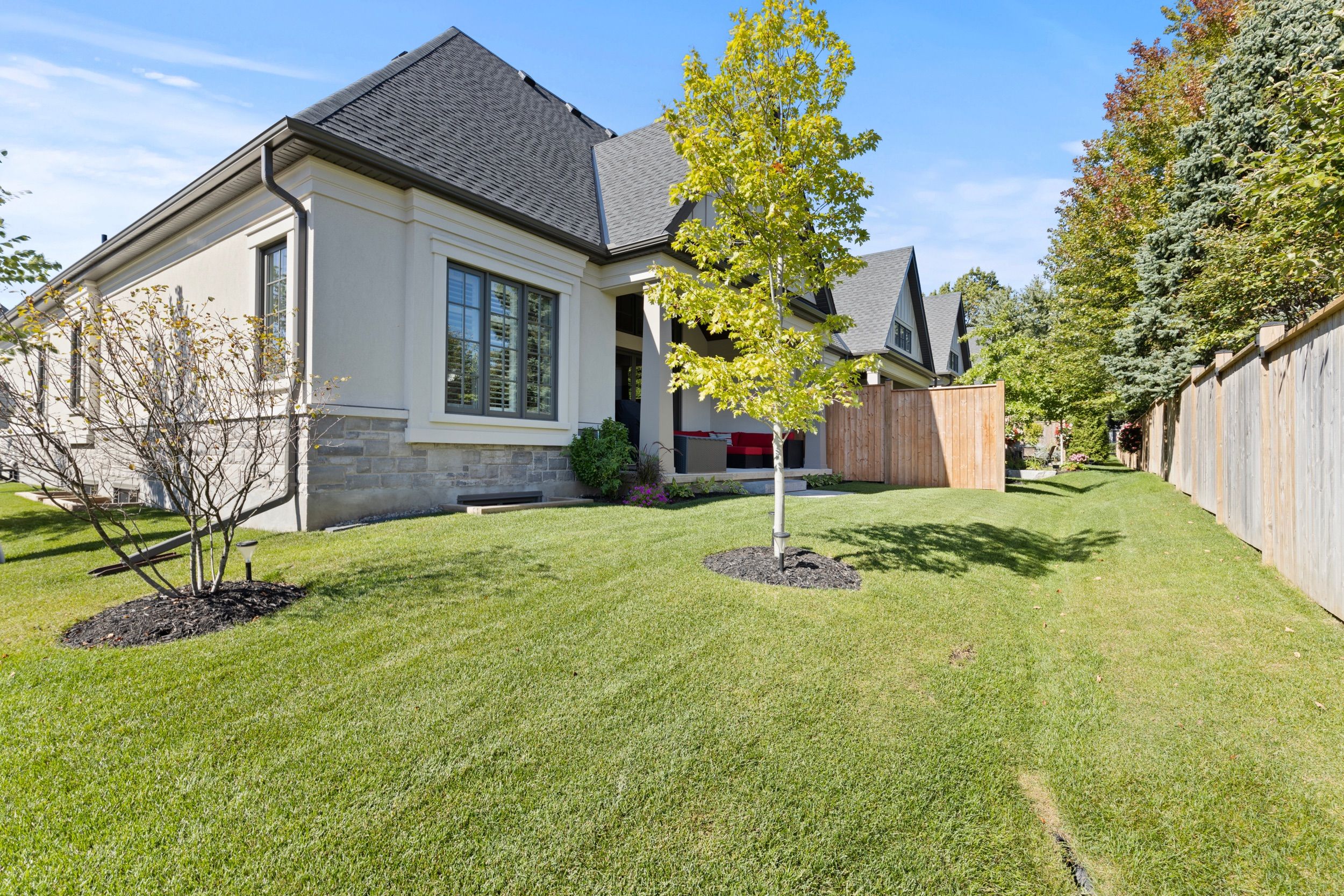 A rare offering in prestigious canboro hills, this end unit bungaloft townhome by dehaan homes delivers over 2,400 sq. Ft. Of refined living space where every detail has been designed with intention. From its striking stone and stucco exterior to the soaring ceilings and expansive windows inside, the home captures a sense of elegance and comfort at once. The great room is an impressive centrepiece, showcasing vaulted ceilings, a sleek gas fireplace, and custom millwork that add to its sophistication. Glass doors open to a covered terrace, blending indoor and outdoor living for effortless entertaining or quiet retreat. The chefs kitchen combines beauty and function with quartz surfaces, bespoke cabinetry, premium appliances, and an oversized island that invites gatherings. The adjoining dining area flows seamlessly, creating a space tailored for both everyday living and special occasions. The main floor primary suite offers the privacy of a boutique hotel with a spa-inspired ensuite featuring a freestanding tub, glass shower, and double vanity, complemented by a custom walk-in closet. A second bedroom, powder room, and designer laundry with direct garage access complete the main level. Upstairs, the open loft is ideal for a lounge or office, while a third bedroom with its own ensuite ensures family and guests experience comfort and luxury. Life in canboro hills is enhanced by maintenance-free living, with lawn care and snow removal included with a monthly fee of $415/mth. Situated in the heart of fonthill, celebrated for its rolling hills, boutique shops, acclaimed restaurants, championship golf, and proximity to niagara's wine country this residence offers an unparalleled lifestyle in one of ontarios most sought-after communities.