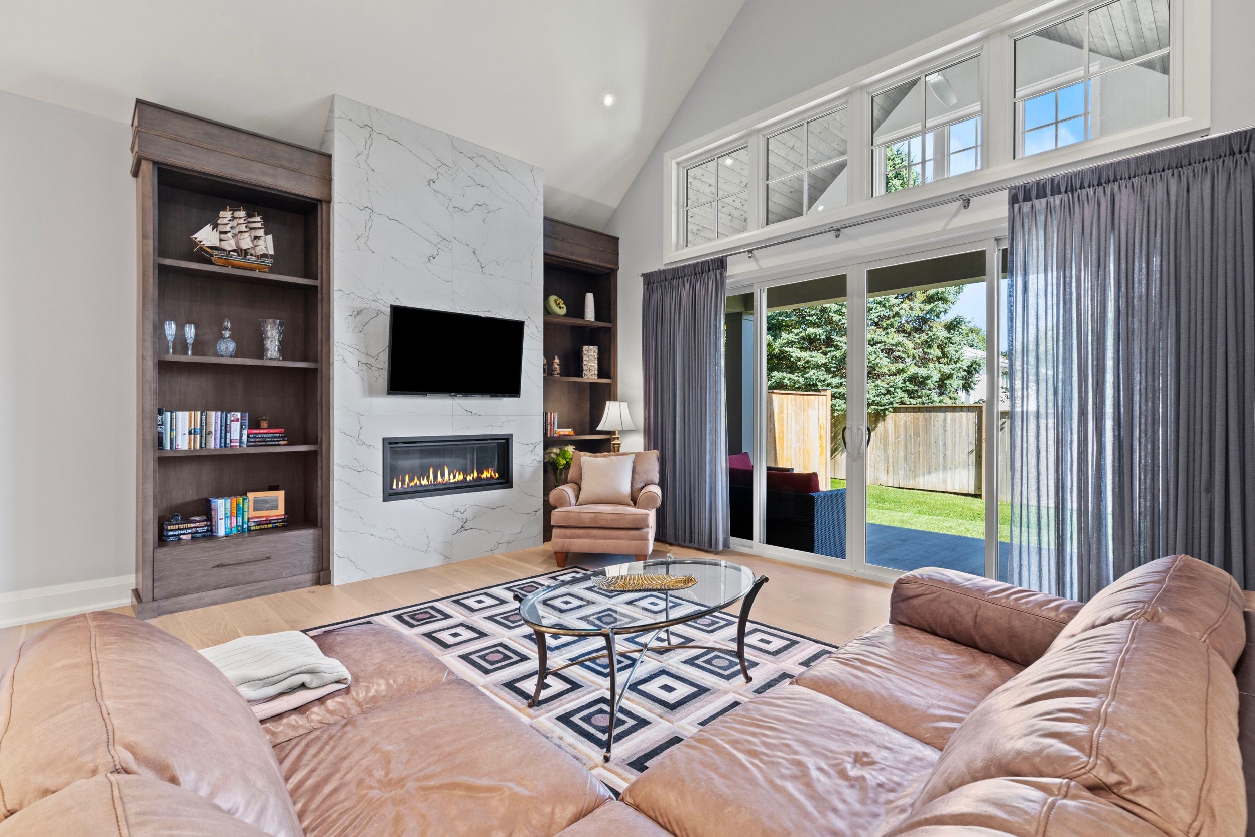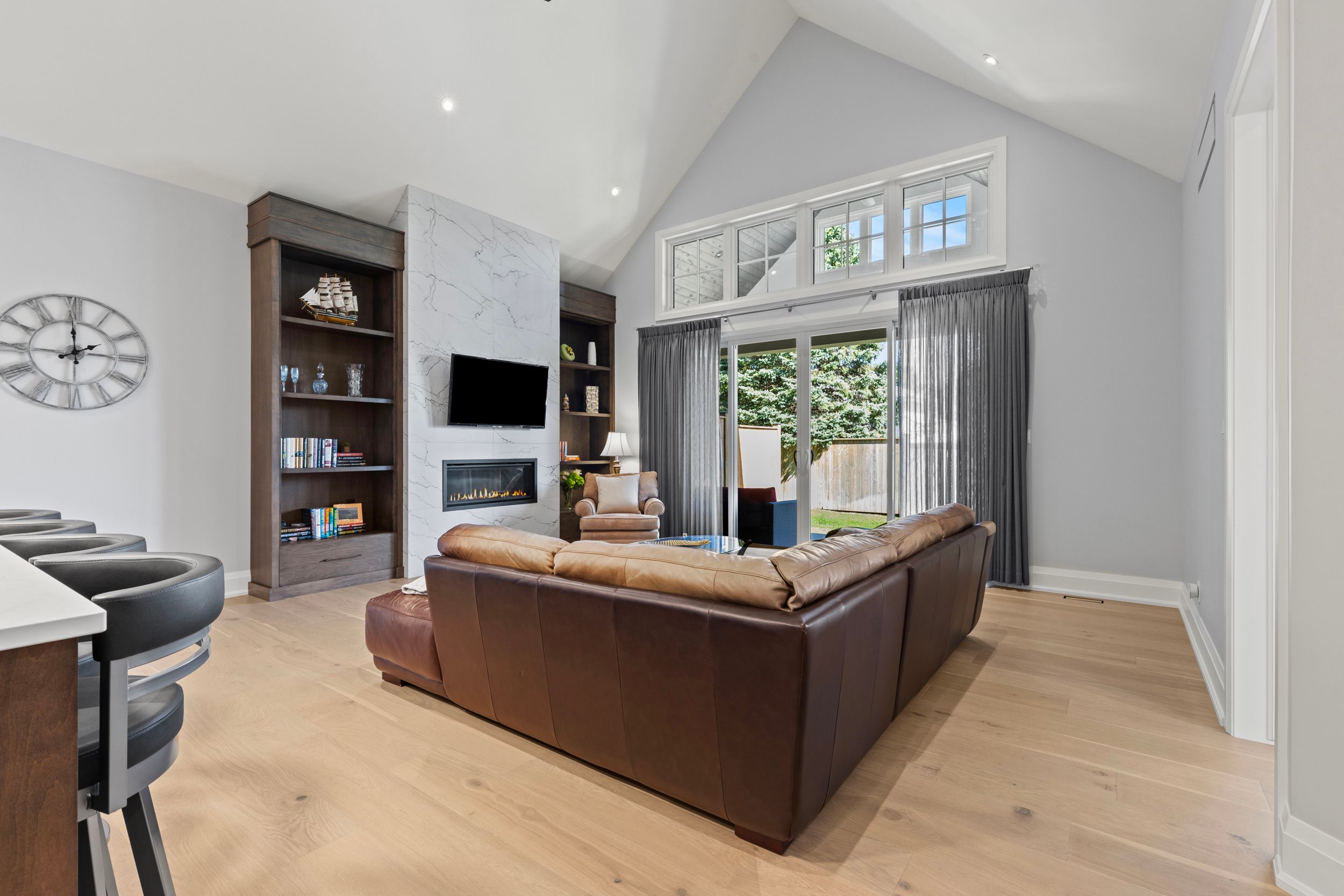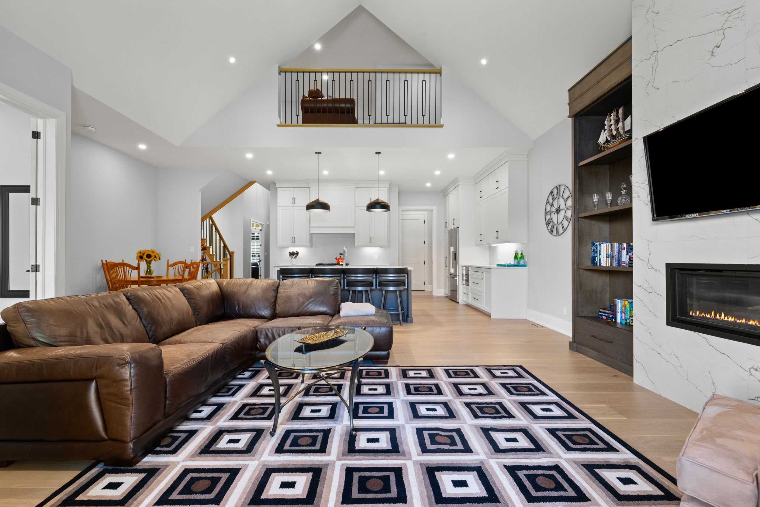 • Great room features vaulted ceilings and a sleek gas fireplace.