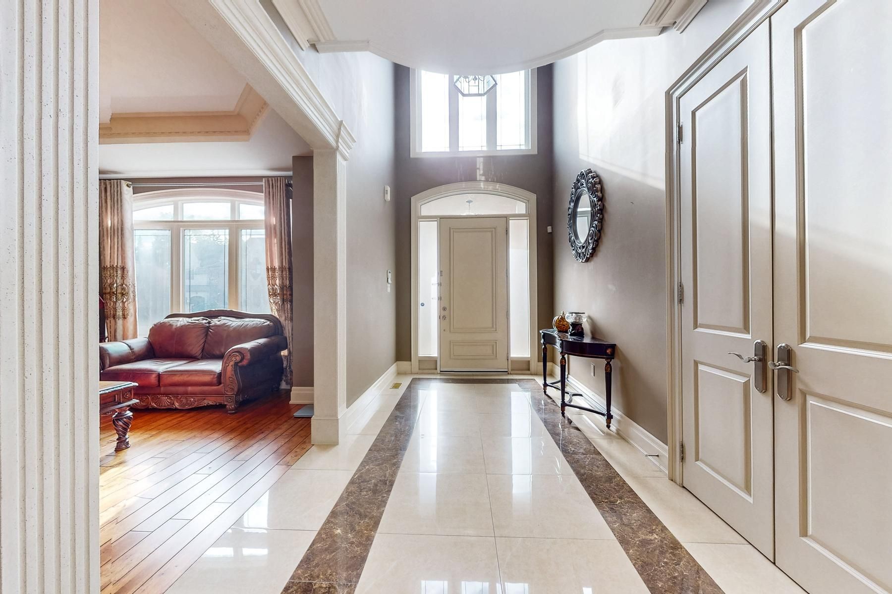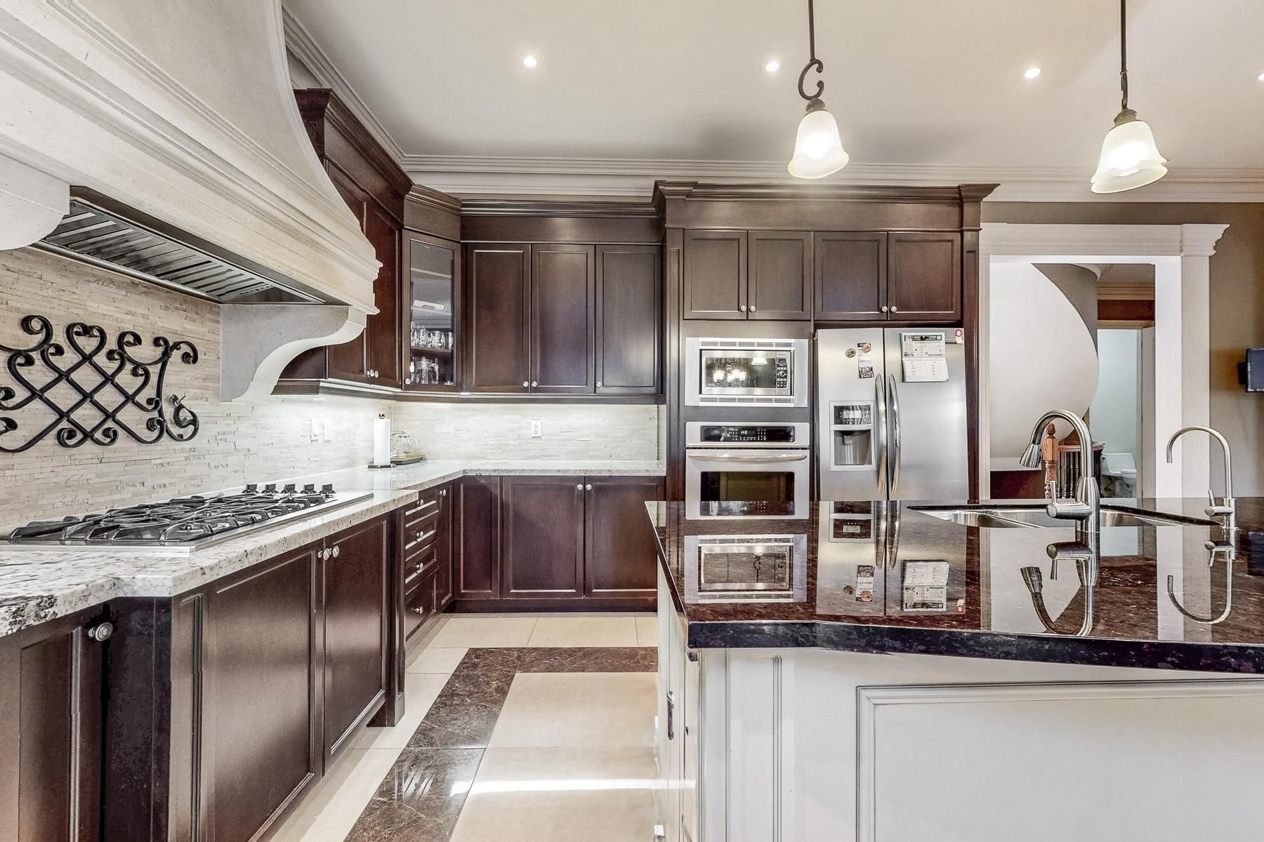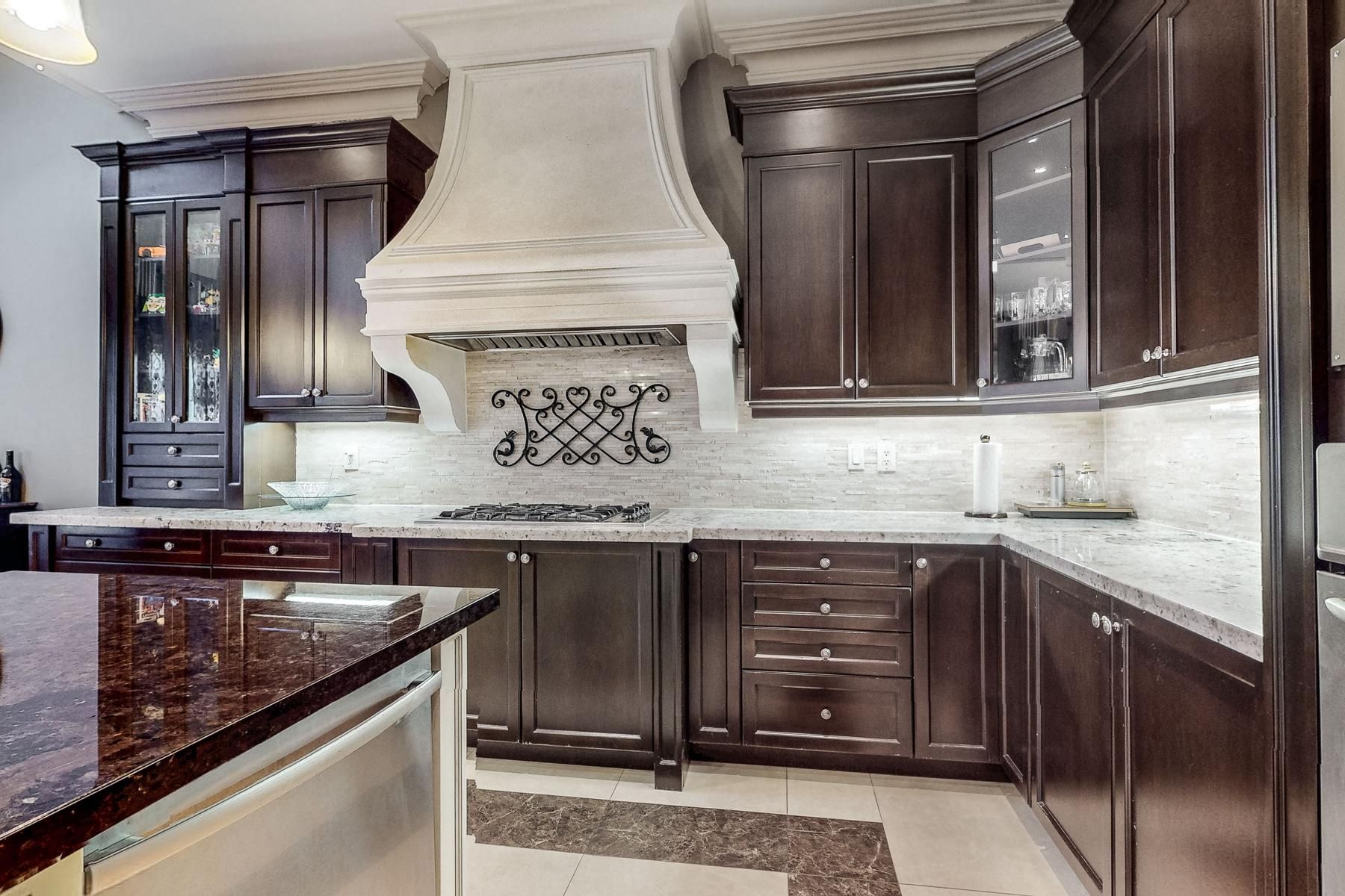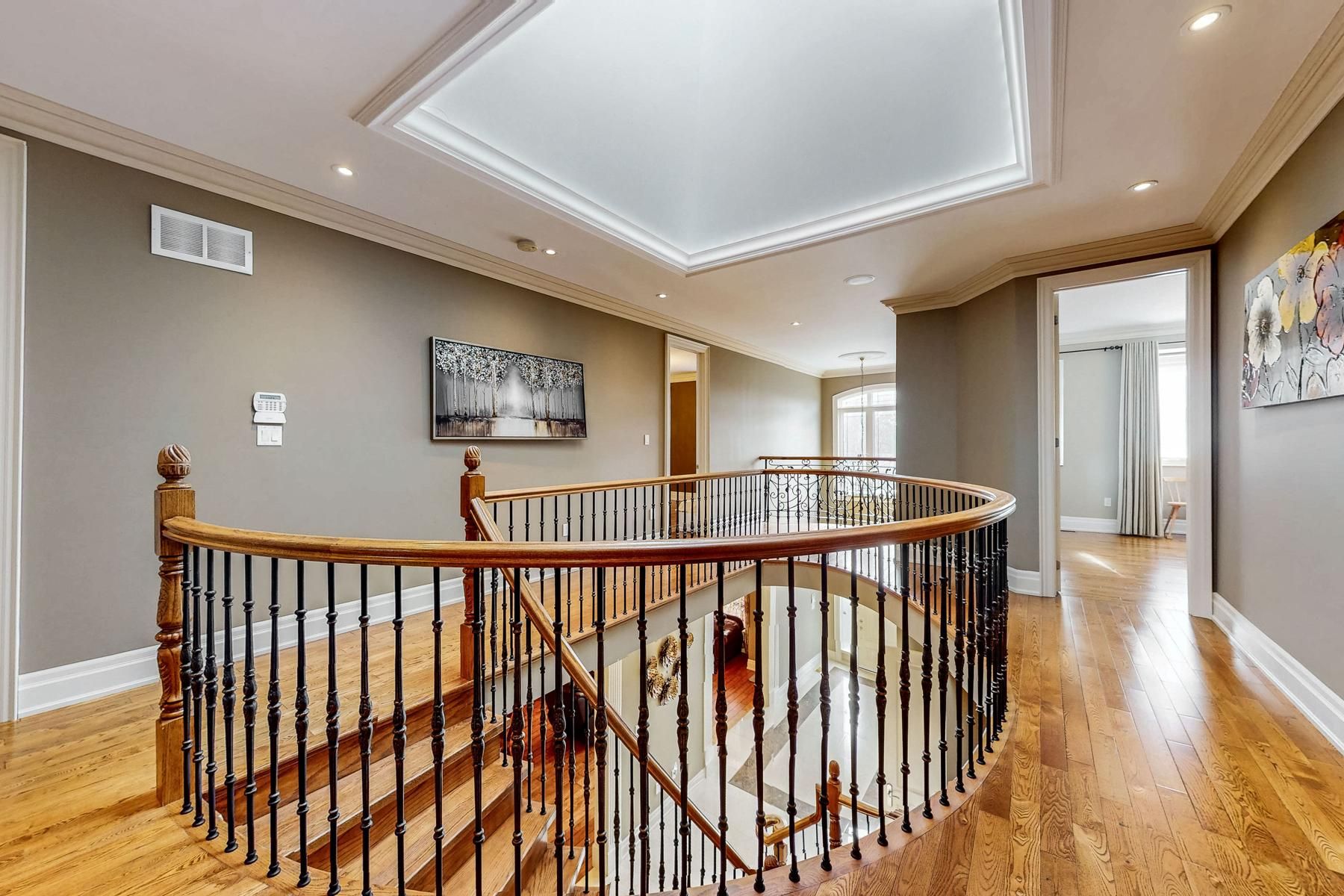 * gorgeous custom built tandem 3 car garage, 5 ensuite home with quality finishes * oversized premium lot 54. 2 feet x 172. 5 feet * 10' ceiling on ground floor & 9' ceiling on second floor * spectacular 2 storey * hallway with porcelain tile * iron picket stairs * huge skylite * hardwood floor throughout * luxury granite kitchen with 2 skylites & numerous pot lites * upgraded plaster crown molding thru-out * hi profile trim work * steel storage shelving in garage * laundry on ground floor * separate entrance 10' high walk-up basement with recreation room, granite bar, 2 bedrooms, 2 pc bath & 4 pc bath & r/i laundry *