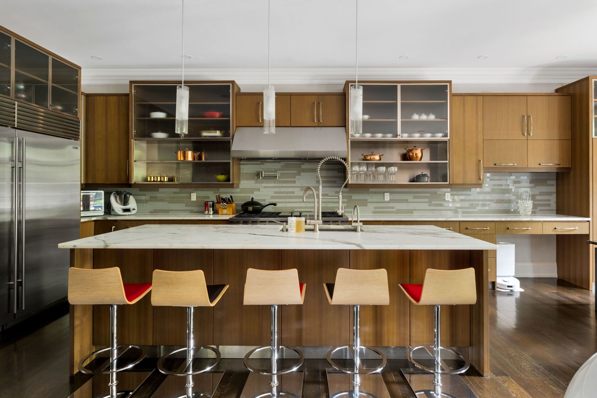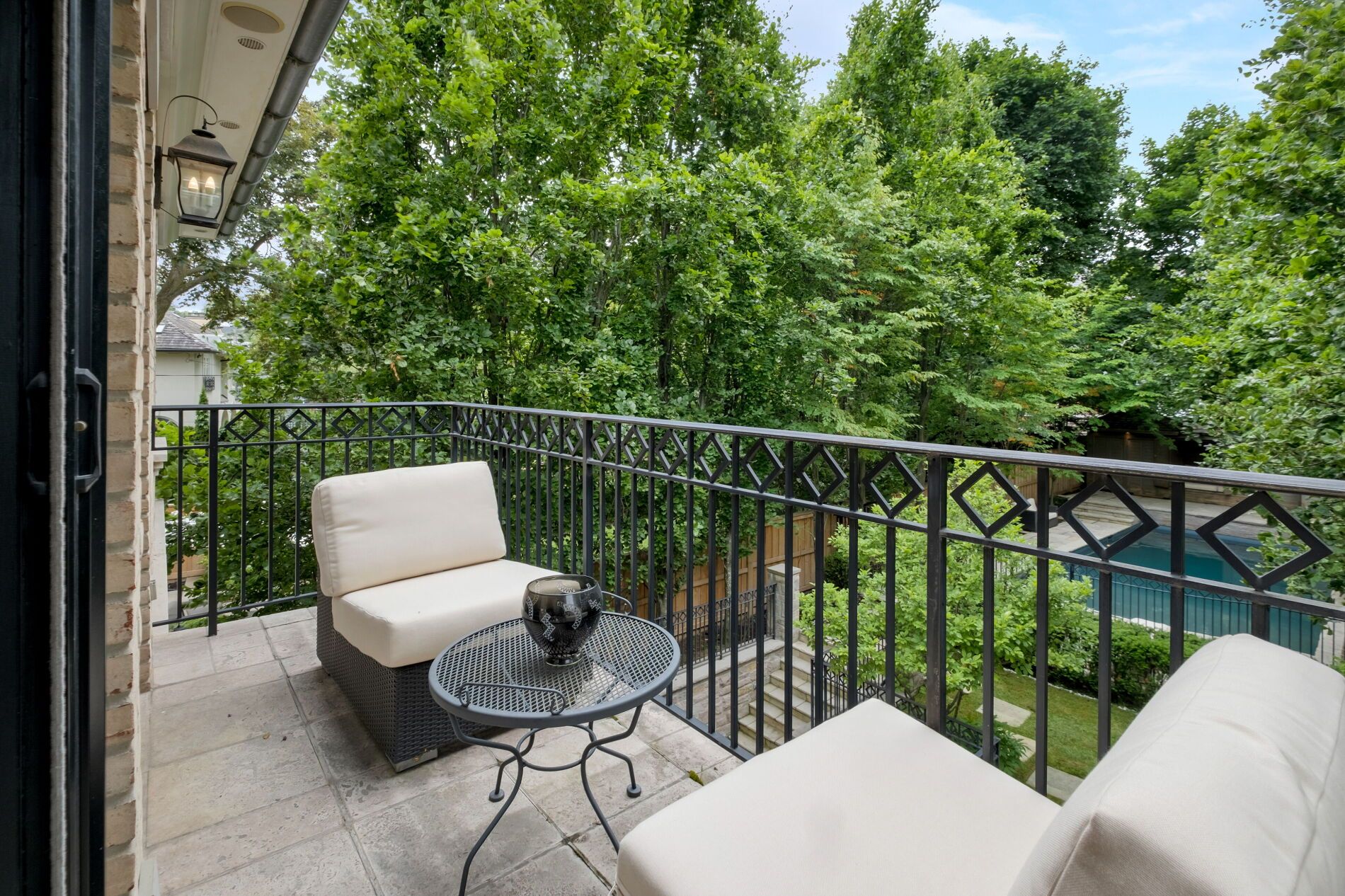 Set on billionaires row the prestigious forest hill road this architectural gem by kirkor architect rests on an ultra-rare 45 x 190 ft south-facing lot. The façade pairs customized indiana stone, american brick, and limestone with an upgraded cedar roof, copper eaves, and tin downspouts. **designed and built to iso 9001 certification canadas first of its kind**this 7,500 sq. Ft. Residence across three levels showcases impeccable craftsmanship, structural integrity, and timeless luxury. Inside, a 39-ft gallery foyer reveals soaring 10-11ft ceilings, wide plank oak floors, and refined crown moldings. Formal living and dining rooms are anchored by a six-foot gas fireplace with marble surround and floor-to-ceiling windows. The custom walnut kitchen is a chefs dream, featuring a 60 wolf range with grill and griddle, sub zero fridge/freezer, two miele dishwashers, and a marble island. The adjoining breakfast area opens through french doors to the stone terrace and garden side al for seamless indoor-outdoor living. Upstairs, the primary suite boasts a private balcony, large dressing room, and a spa-like six-piece ensuite with heated limestone floors, air jet tub, steam shower with dual rain heads, and heated towel rack. Each additional bedroom offers its own ensuite with luxurious finishes. Custom glass and wrought iron railings accent the floating staircase. The lower level includes radiant heated limestone floors, a full theatre, wet bar, nanny suite, and walkout to a lush backyard oasis with a concrete saltwater pool, waterfall, year-round hot tub, and double cabana with kitchen and lounge. Heated drive, paths, and taps ensure year-round comfort. A true legacy home in the heart of forest hill.