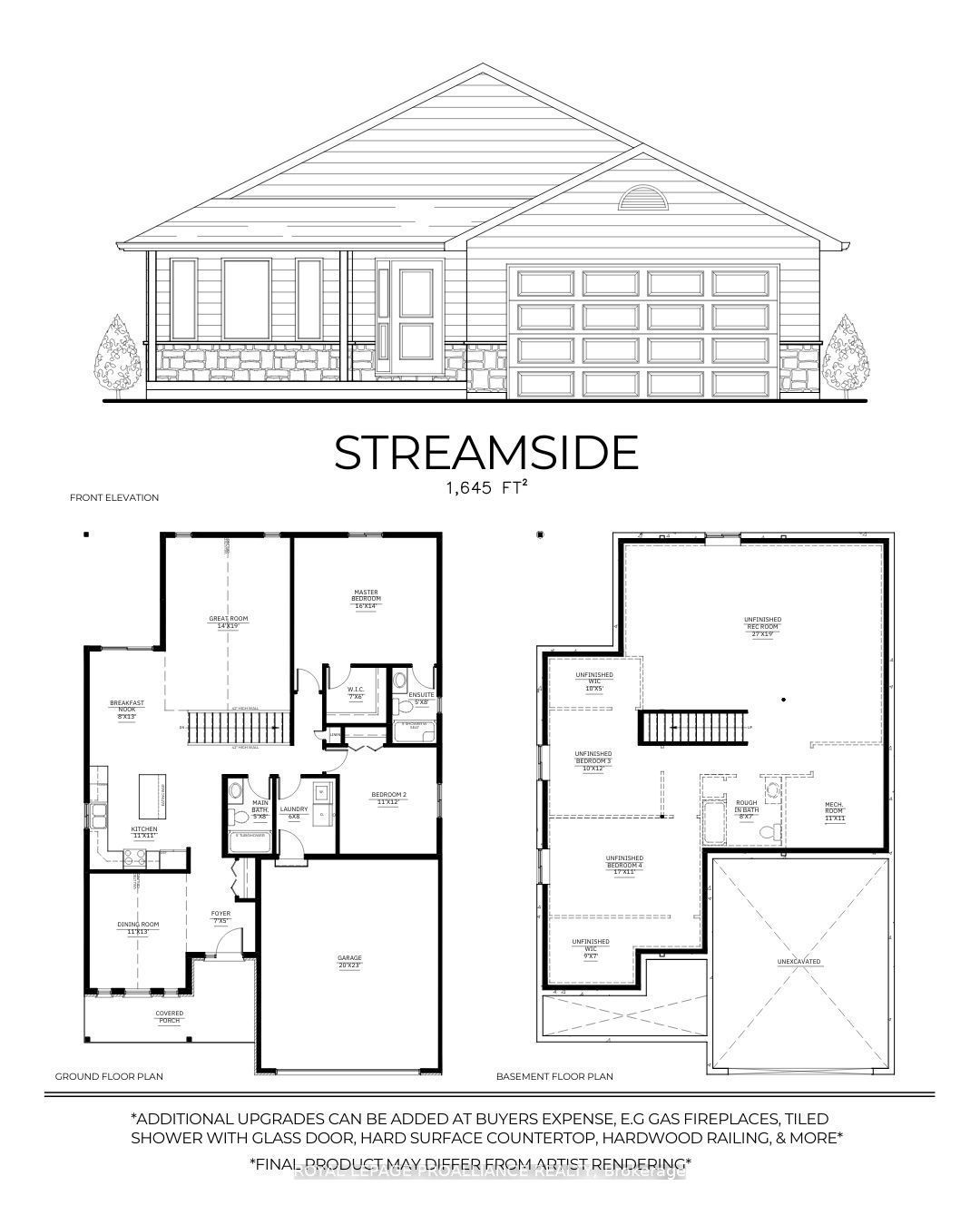 Welcome to homewood estates, mcdonald homes newest enclave of beautiful, customized homes with views of the trent severn waterway and backing onto the transcanada trail! Ready for a 2025 quick closing, this 2 bedroom, 2 bath bungalow with option to finish basement is built by mcdonald homes a boasts superior features & finishes throughout. The "streamside" plan offers open-concept living with1645 sq ft on the main floor, perfect for retirees or families alike. The covered porch entrance welcomes you into a large front foyer. In the heart of the home, the chef's dream kitchen boasts beautiful ceiling height cabinetry, quartz countertops and a sit-up island, perfect for entertaining. Great room and dining room features soaring vaulted ceilings. Enjoy your morning coffee under your partially covered deck. Large primary bedroom with walk in closet & ensuite offers a luxurious glass & tile shower with shampoo niche. Second bedroom can be used as an office... Work from home with available high speed internet! Option to fully finish your lower level with 1 or 2additional bedrooms, full bathroom &huge family room. Double car garage with direct interior access through the main floor laundry room. Quality laminate/vinyl tile flooring throughout main floor, municipal water/sewer & natural gas, central air, on demand hot water, hst & 7 year tarion new home warranty areall included! Located near all amenities, marina, boat launch, restaurants and a short walk to the hastings-trent hills field house with pickleball, tennis, indoor soccer and so much more! ***photos are of another build & some are virtually staged ** single family,semi-detached and 2 storey towns also available***