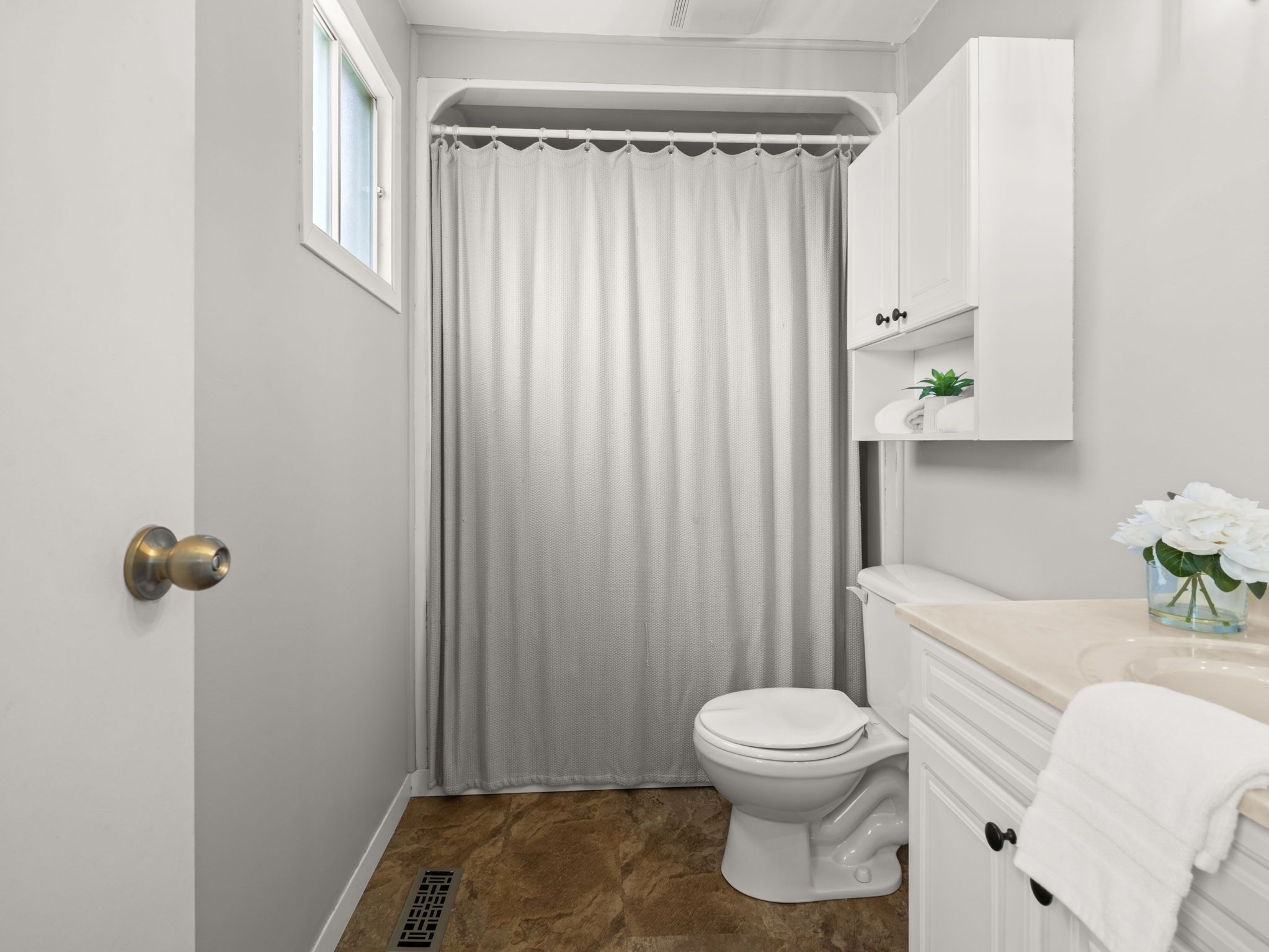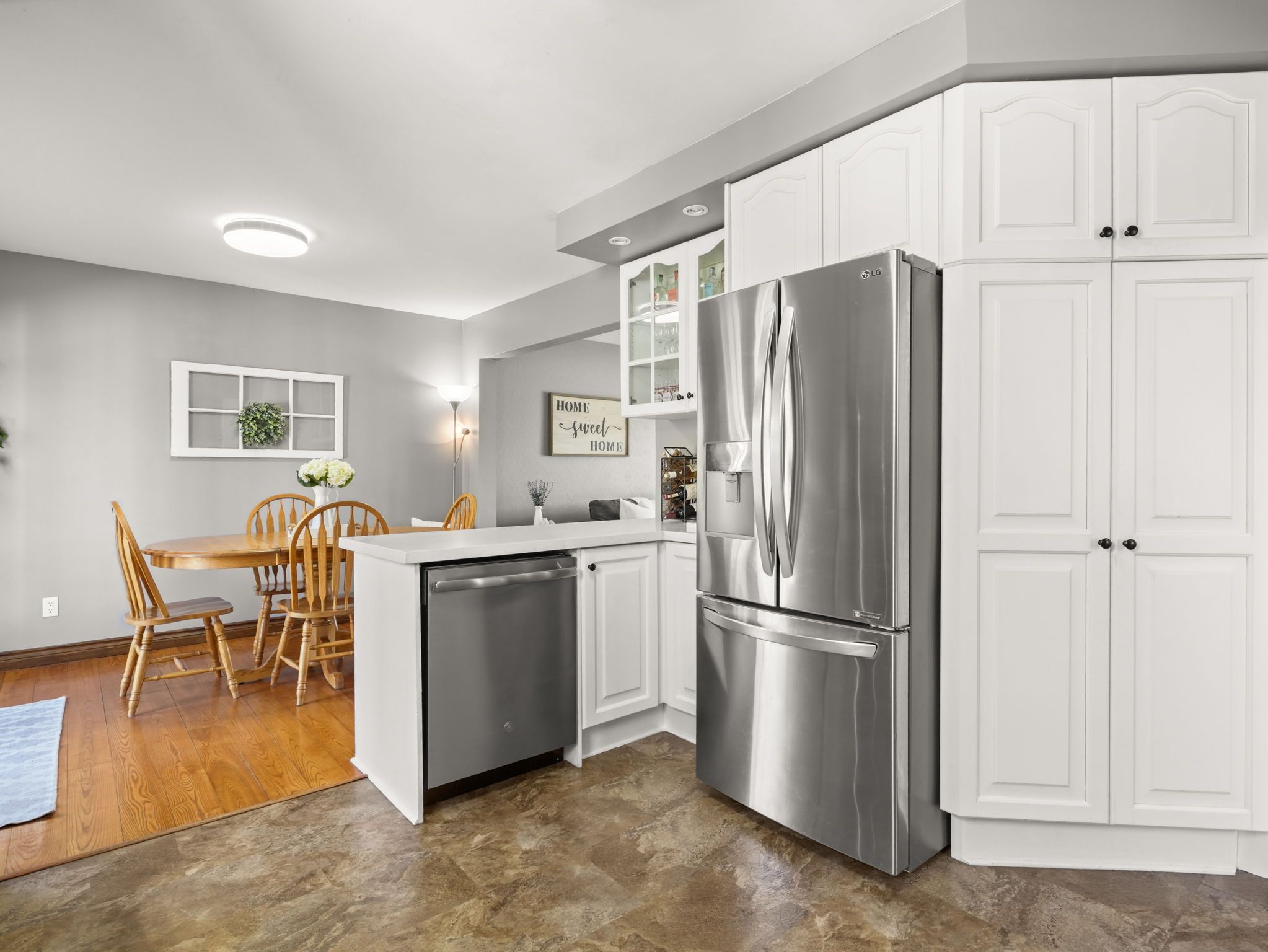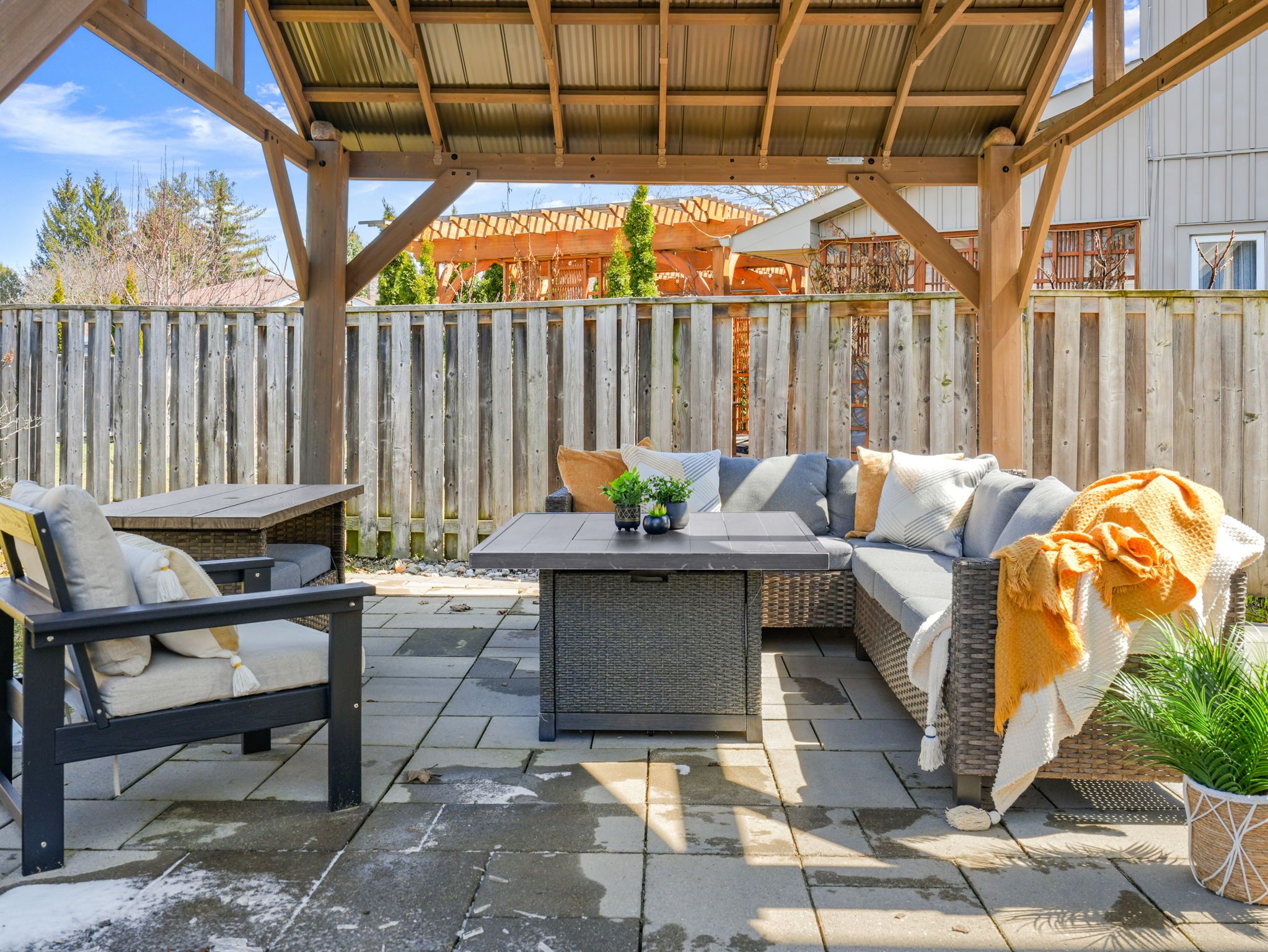 • Renovated kitchen with quartz countertops, stylish backsplash, and easy patio access.