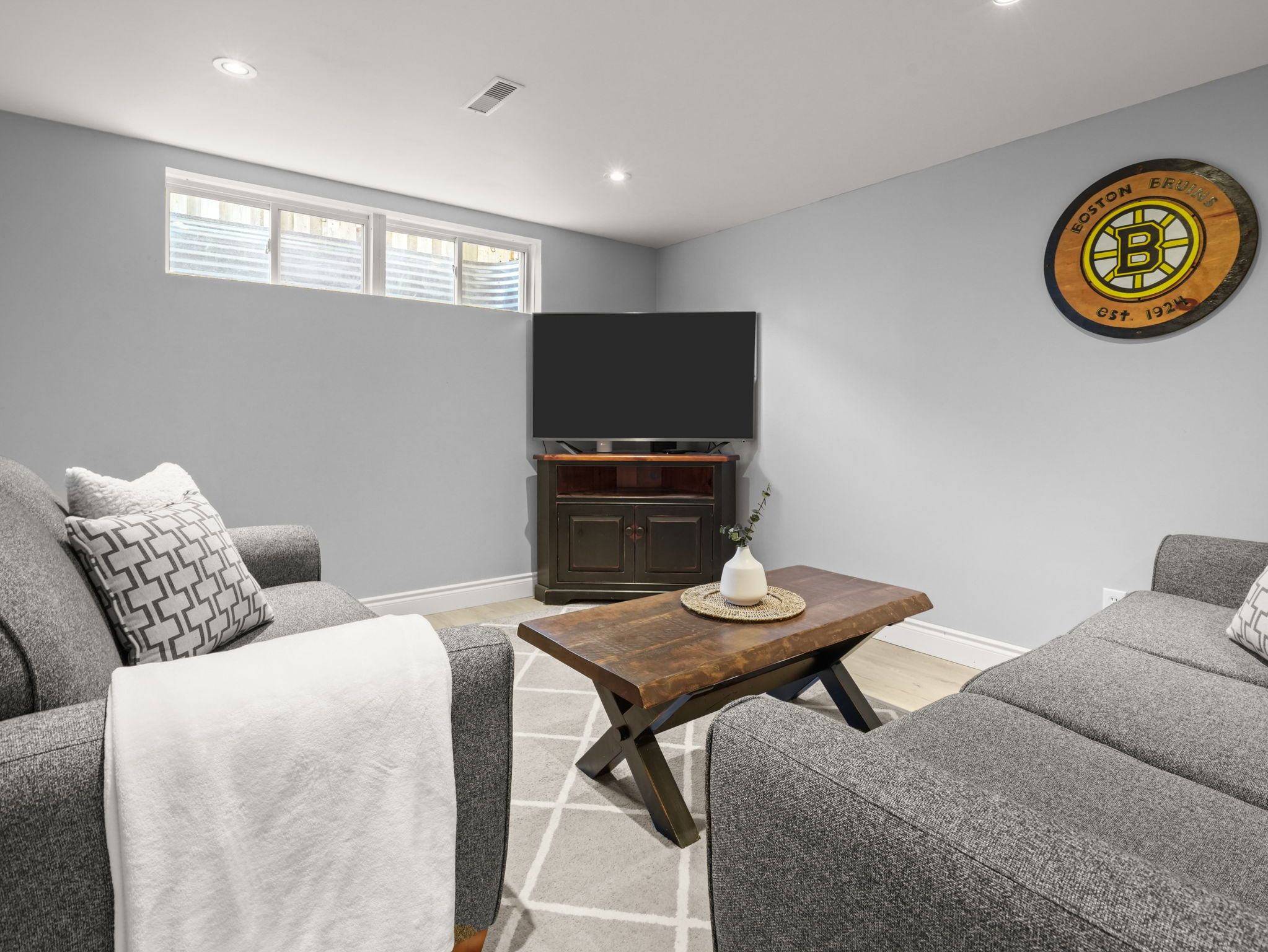 • Finished basement with a rec room and ample storage for relaxation or activities.
